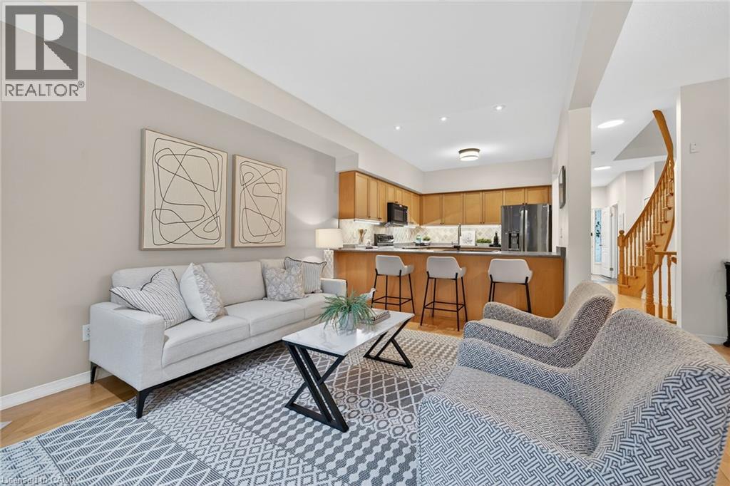 Beautifully appointed townhome in one of Ancaster's finest areas offering 1800 s.q ft. of total living space. Enjoy an open concept floor plan with a gourmet kitchen open to the living room, featuring a fireplace plus a separate dining room leading to a private & serene patio. Enjoy 3 spacious bedrooms, including a primary suite with a walk-in closet and ensuite privilege. This home also features a 2 pc. bathroom, hardwood floors, attached garage with inside entry, charming front porch, updated lighting, shingles (2016), furnace, central air (2022), R60 attic insulation, gas hookup for BBQ, large linen closet and so much more. The professionally finished basement includes a large recreation room, 3 pc. bathroom, storage area and laundry. This home is located in a charming enclave of townhomes with low condo fees. Located close to top-rated schools, parks, conservation trails, and quick highway access. Just move in and enjoy all that Ancaster has to offer! (70044824)
