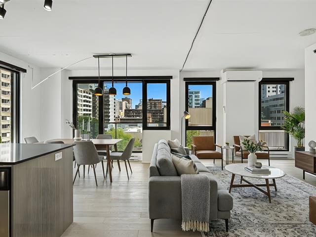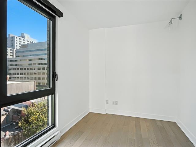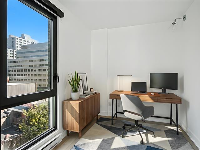 Stunning and spacious corner unit in the heart of downtown Montreal! This bright one-bedroom condo with a versatile den/office offers an open-concept living and dining area, a modern bathroom, and floor-to-ceiling windows that flood the space with natural light. Residents enjoy access to exceptional amenities, including a rooftop terrace with pool and panoramic city views, an indoor-outdoor pool connected to a spa, and a fully equipped fitness centre. An ideal opportunity to experience urban living at its finest -- book your visit today! (44136345)