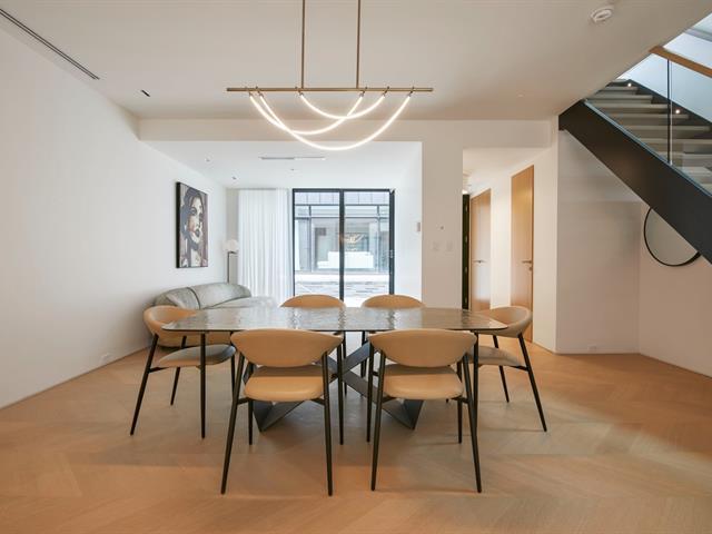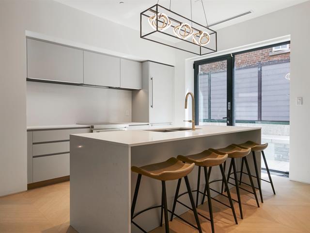 Du Musée Project - High-end finishes and contemporary architecture define this four-level townhouse, where elegance meets distinguished living. A spacious private rooftop terrace offers panoramic views of the city and Mount Royal, with a gas/water connection allowing for year-round enjoyment. The vertical design enhances privacy while maximizing natural light. Access to a private gym, security, heated walkways with a snow-melting system, and two indoor garage parking spaces complete this exceptional property. GST/QST must be added to the asking price (50410412)