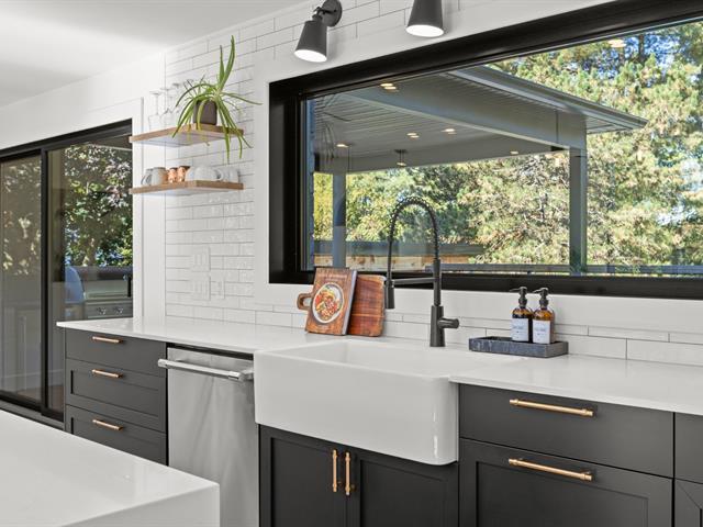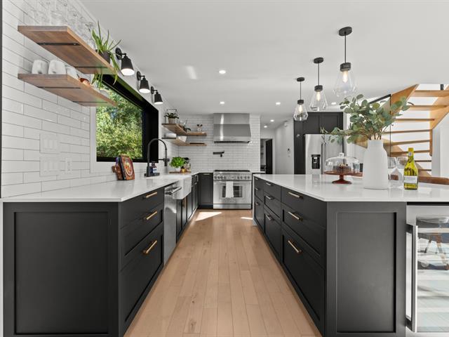 Exceptional property largely renovated in 2021, offering a perfect blend of luxury, comfort and modern design. Hardwood floors, an impressive 15+ ft front window and a high-end kitchen with central island, gas range and walk-in pantry. Spacious primary suite with ensuite bathroom and versatile boudoir. Two basement bedrooms, each with a walk-in closet and private bathroom. Resort-style backyard featuring a covered terrace, outdoor kitchen, heated saltwater pool, spa, pool house and fire pit. Beautifully landscaped 26,000 sq. ft. lot with paved driveway and garage. A rare opportunity not to be missed! (54854058)