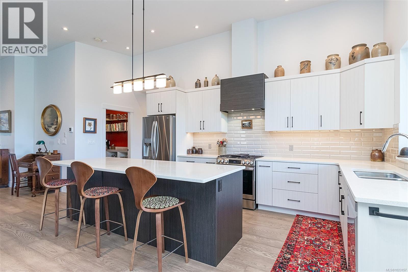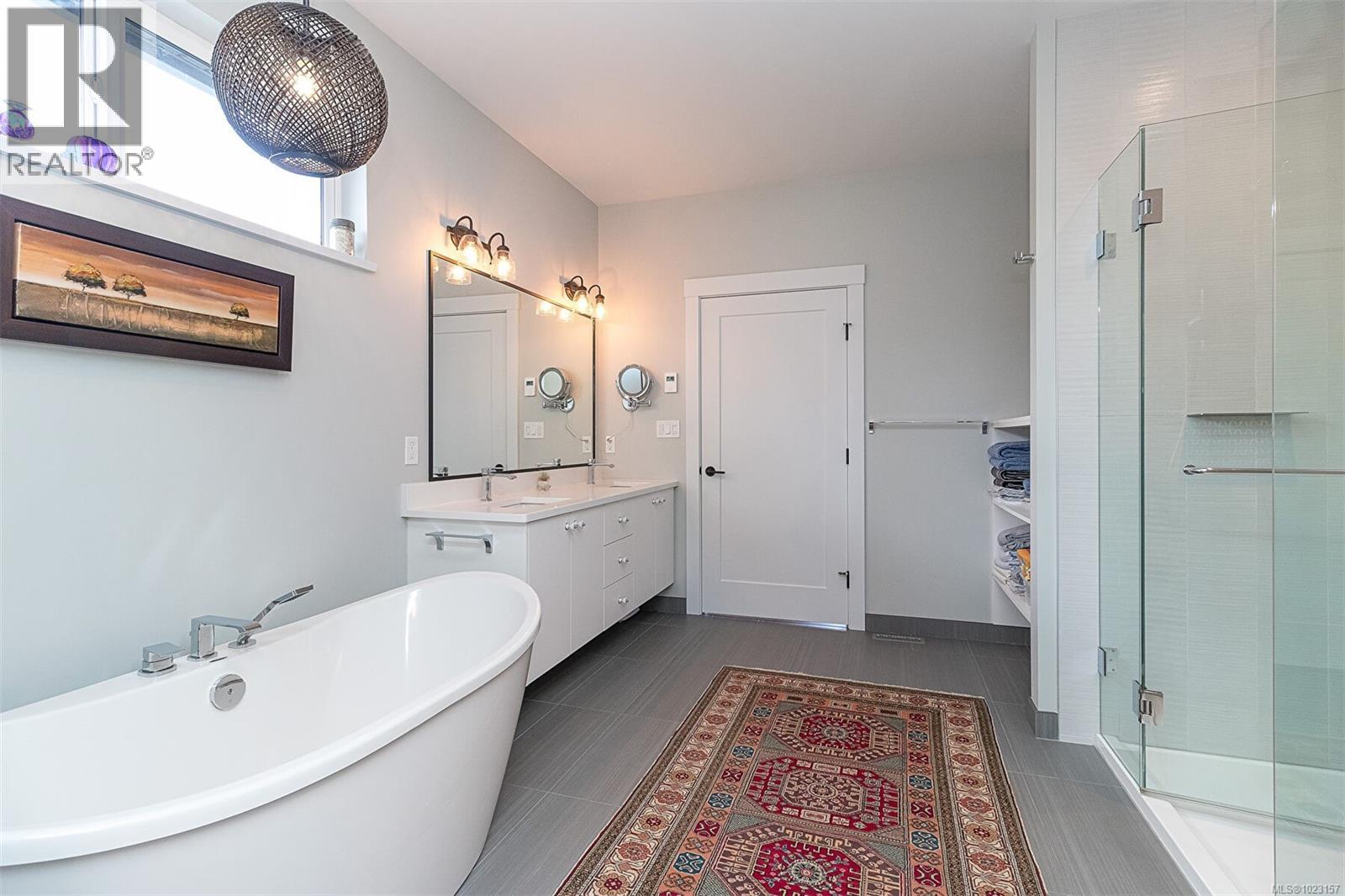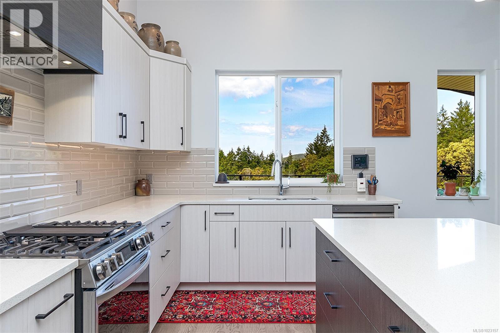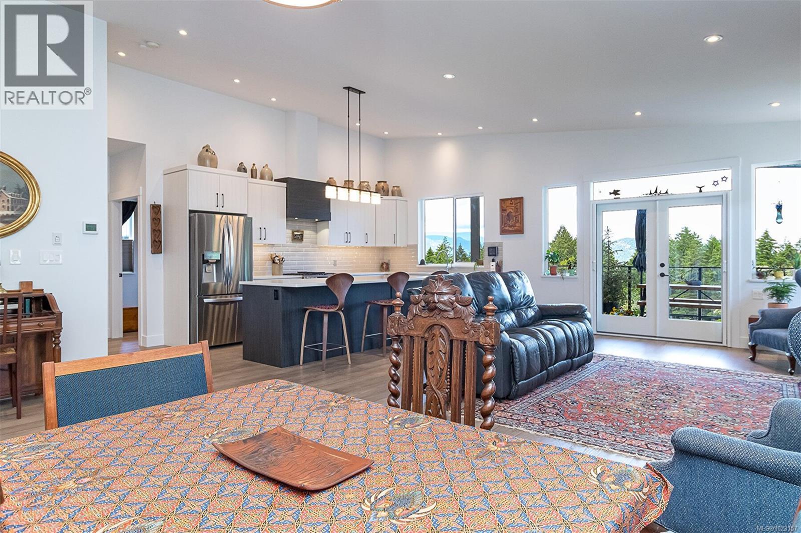 Welcome to Maple Bay in the Cowichan Valley. 6257 Highwood Drive is a 2022 custom built home by Elmworth Construction. This contemporary home is built with energy efficiency and minimal resource usage. The solar panels generate enough electricity to cover all but the service delivery costs of the home ( $111.00 for 2025 ). The gardens are native, drought tolerant plants with drip irrigation, which means low water bills and easy care maintenance and included backyard fencing. The backyard leads out to Garry Oak meadows and accessible green space. This home is bright & thoughtfully designed with amazing privacy and views. Featuring a newly installed solar roof, wood shed, fencing and professional landscaping with native plants and irrigation system. Main level living includes a bright, spacious kitchen with custom cabinetry & quartz countertops, adjacent open area with gas fireplace & double patio doors leading to an all-seasons covered deck. The large primary bedroom is complemented with double sinks, custom tile shower, luxurious soaker tub & walk-in closet. The second bedroom on the main floor could be used as an office. The lower level offers a large media room, 4 piece bath, 2 more bedrooms and family room. The bonus is an additional 1 bedroom suite with private entrance and it has been created with a modern, open concept design. The oversized double garage has room for 2 vehicles, EV Charging & storage. (30270031)