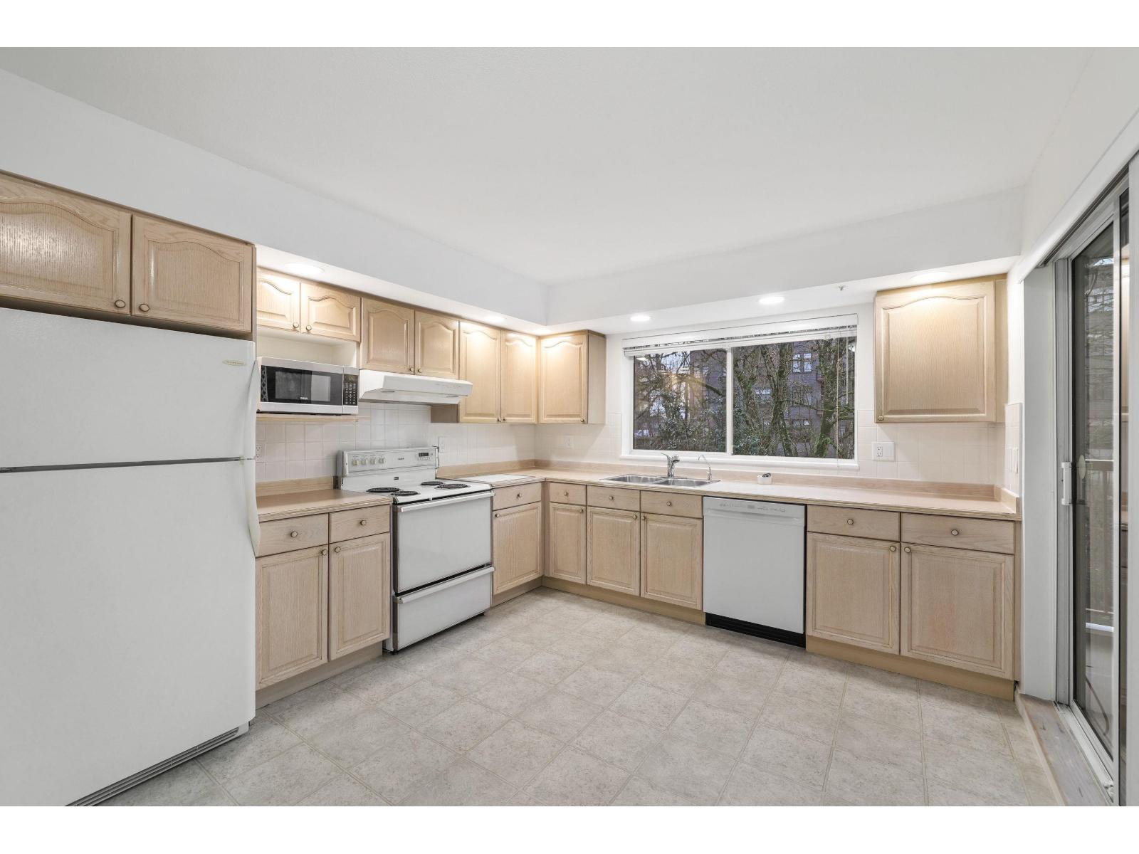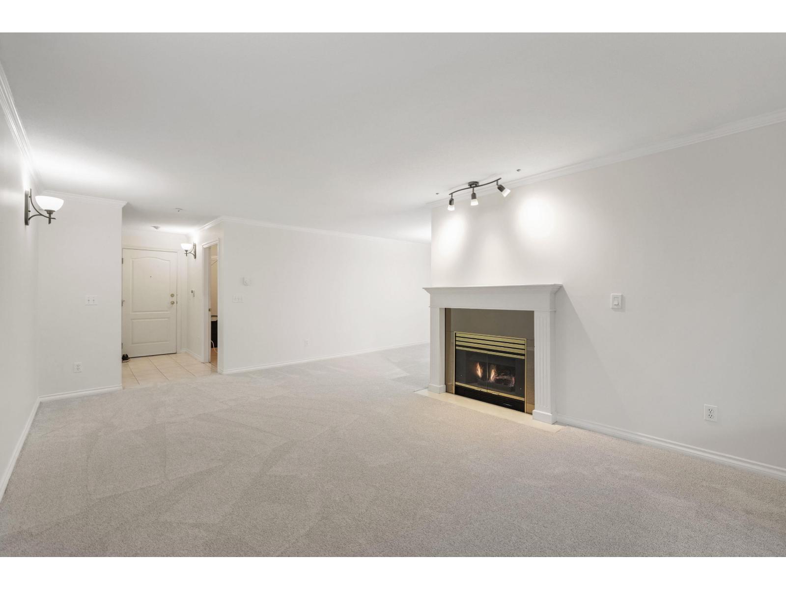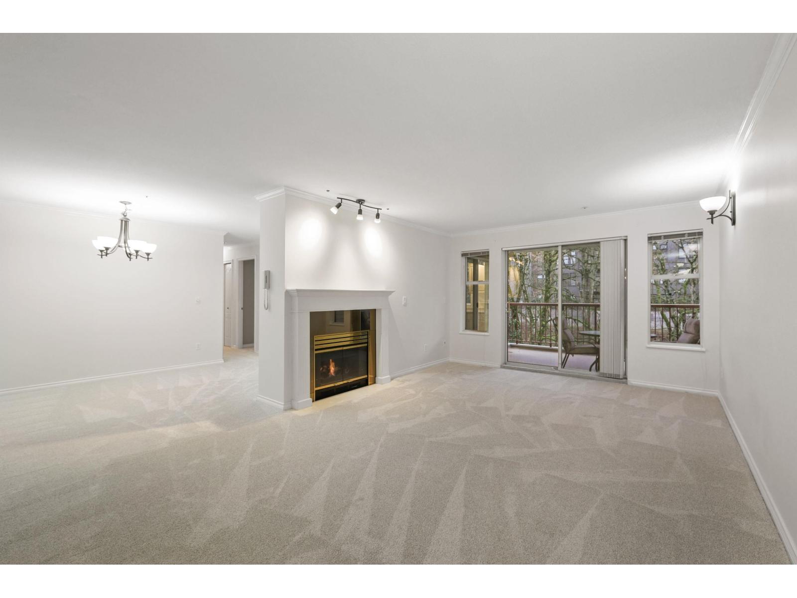 Spacious Corner Unit at The Glenwood! Move-in ready with brand new carpets and fresh paint! This 1,300+ sq. ft. condo offers excellent value and is located on the quiet side of the building overlooking the greenbelt. Features a large living room with gas fireplace, a formal dining area, and a bright kitchen with ample storage. Balcony overlooks greenbelt and has access from both the living room and kitchen. The spacious primary bedroom has a full-wall closet and an ensuite, while the second bedroom is also generously sized. Side-by-side laundry in the second bathroom. Well-maintained building, just minutes to shopping, restaurants, and the future SkyTrain - a perfect blend of privacy and convenience! (32325675)
