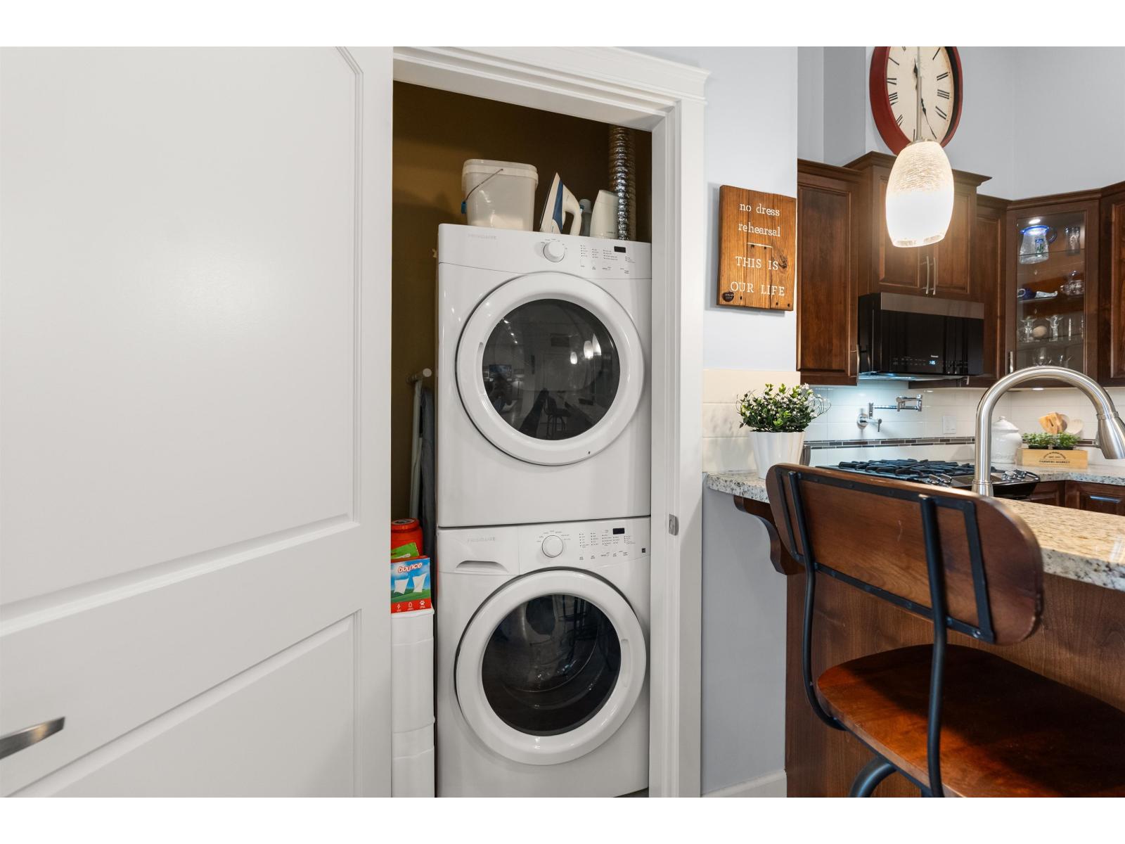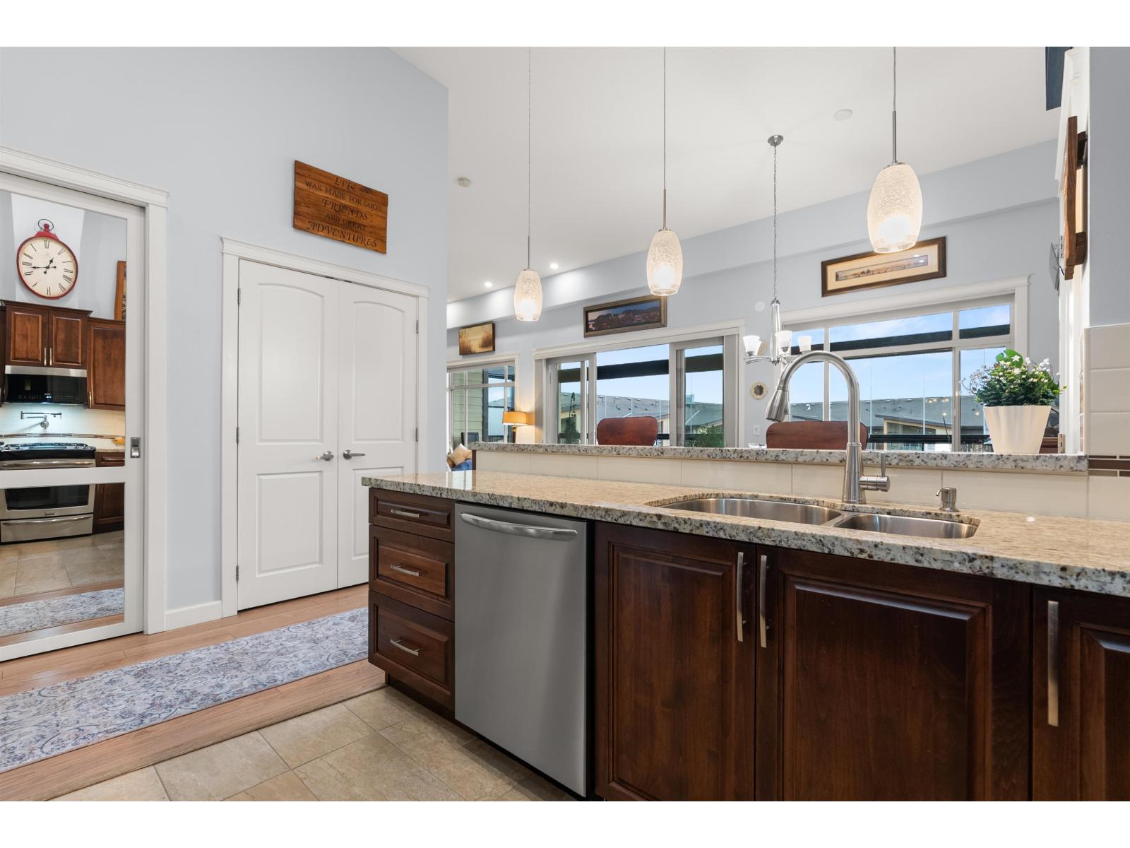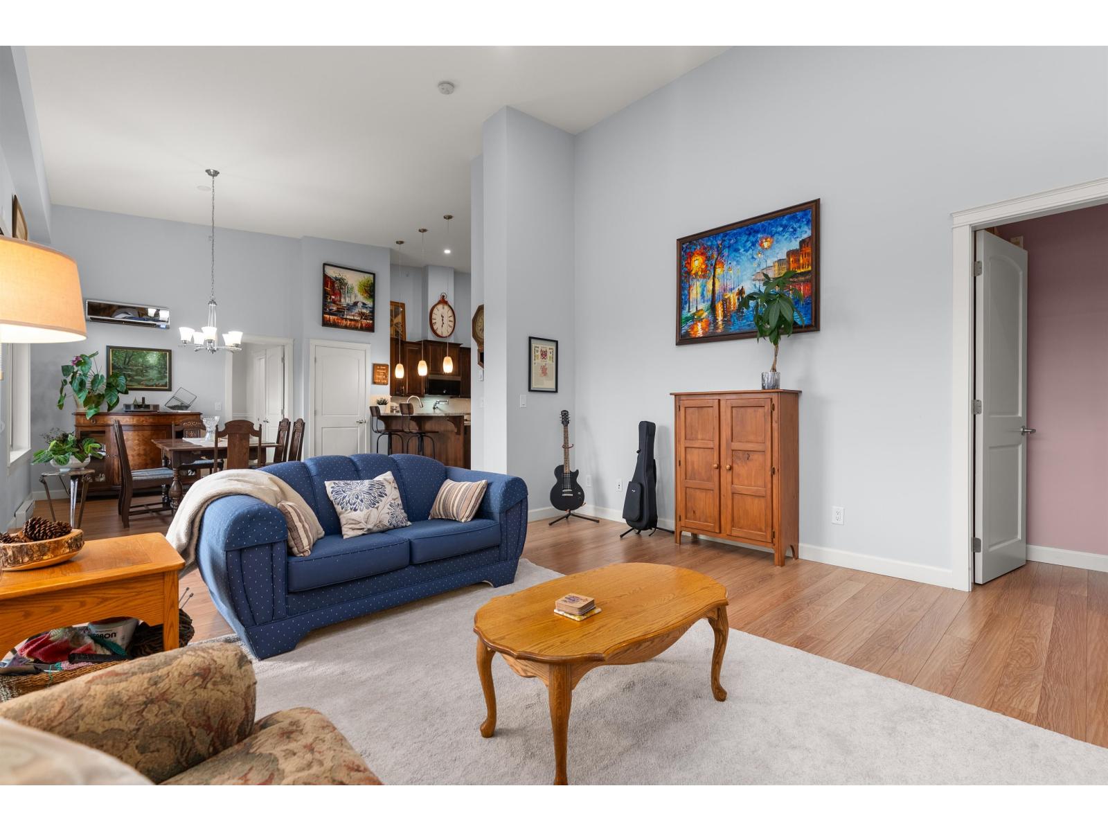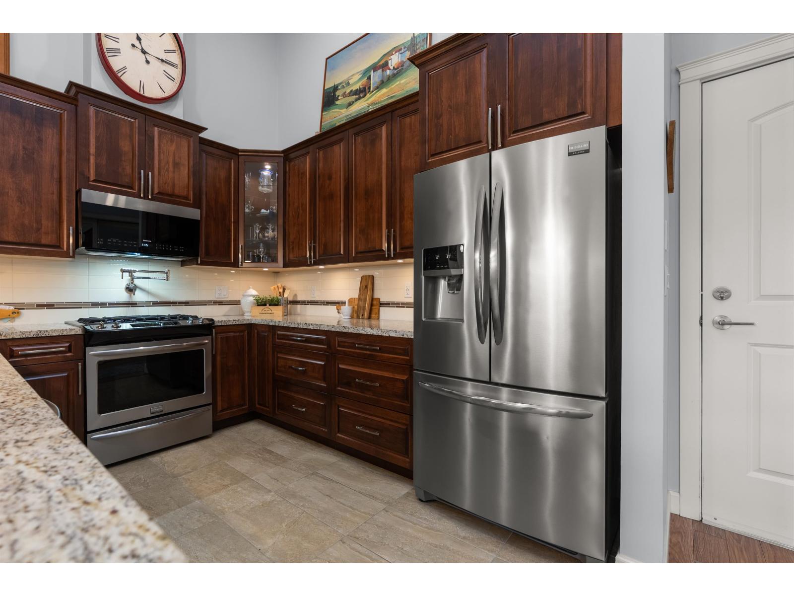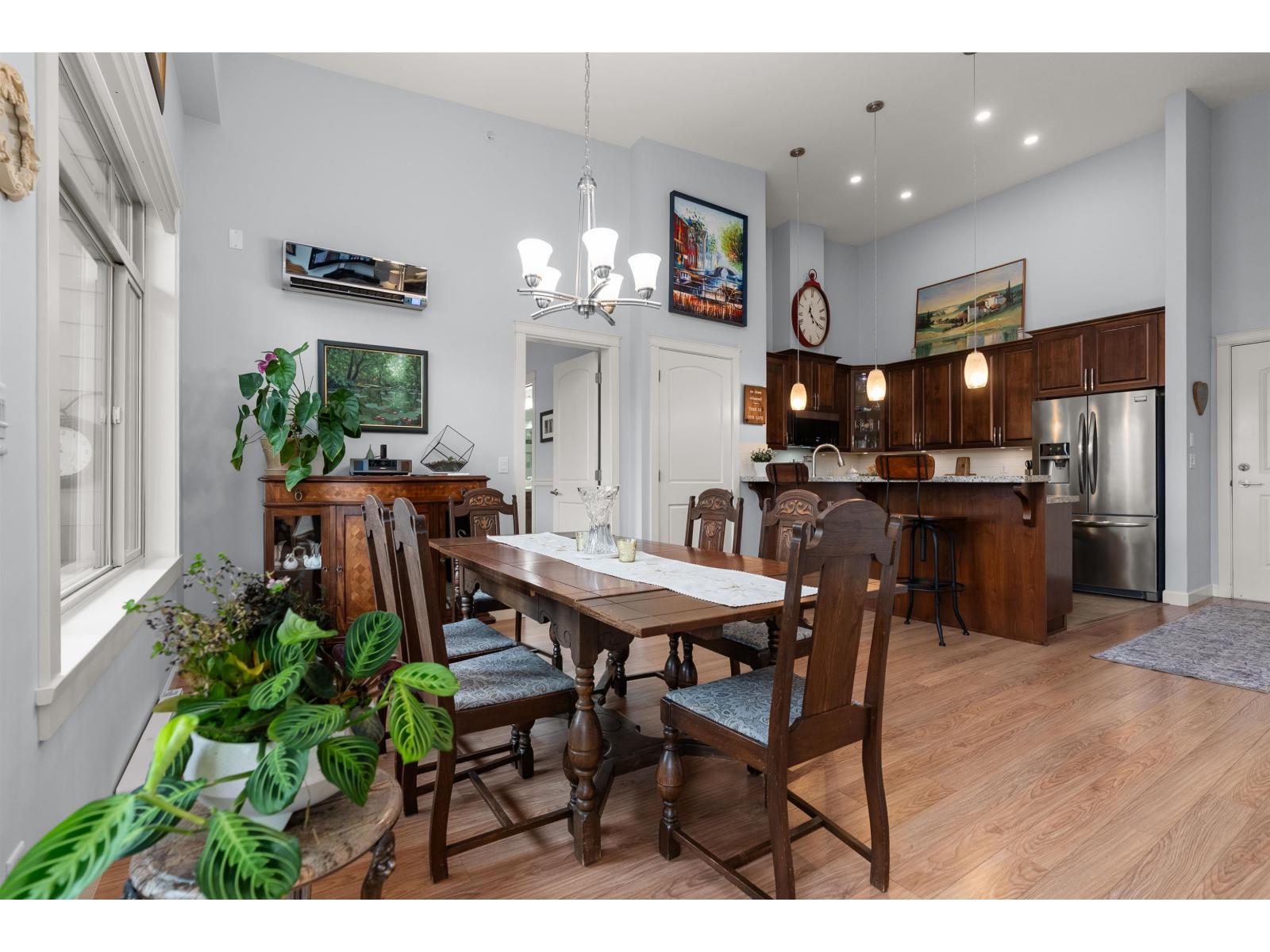 La Galleria Penthouse - Welcome to this exceptional residence in one of Abbotsford's most sought-after, quality-built buildings. Ideally located in the heart of the city, with most amenities just steps away. This bright, open-concept home features hardwood floors, a gas fireplace, and an abundance of natural light. Enjoy the expansive patio with retractable glass and gas BBQ hookups, perfect for year-round use. Offering two bedrooms plus a den that easily functions as a third bedroom, this home is tastefully decorated and impeccably maintained. Includes four parking stalls and two large private storage lockers. Courtyard-facing with lovely views. The perfect opportunity to downsize without compromise. (32326247)