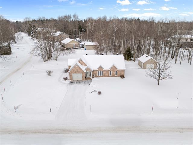 Située sur une rue sans issus dans un environnement paisible, cette propriété offre la tranquillité de la campagne avec tous services de la municipalité. Implantée sur deux terrains distincts, elle propose un vaste espace extérieur plat. Maison de plain-pied construite sur une dalle de béton avec planchers chauffants, incluant le garage. Construction supérieure en Isobloc. Garage double attaché, garage détaché avec électricité et remise complètent l'ensemble. Idéale pour petites familles, couples recherchant la quiétude ou personnes à mobilité réduite. Venez la visiter! (55805860)