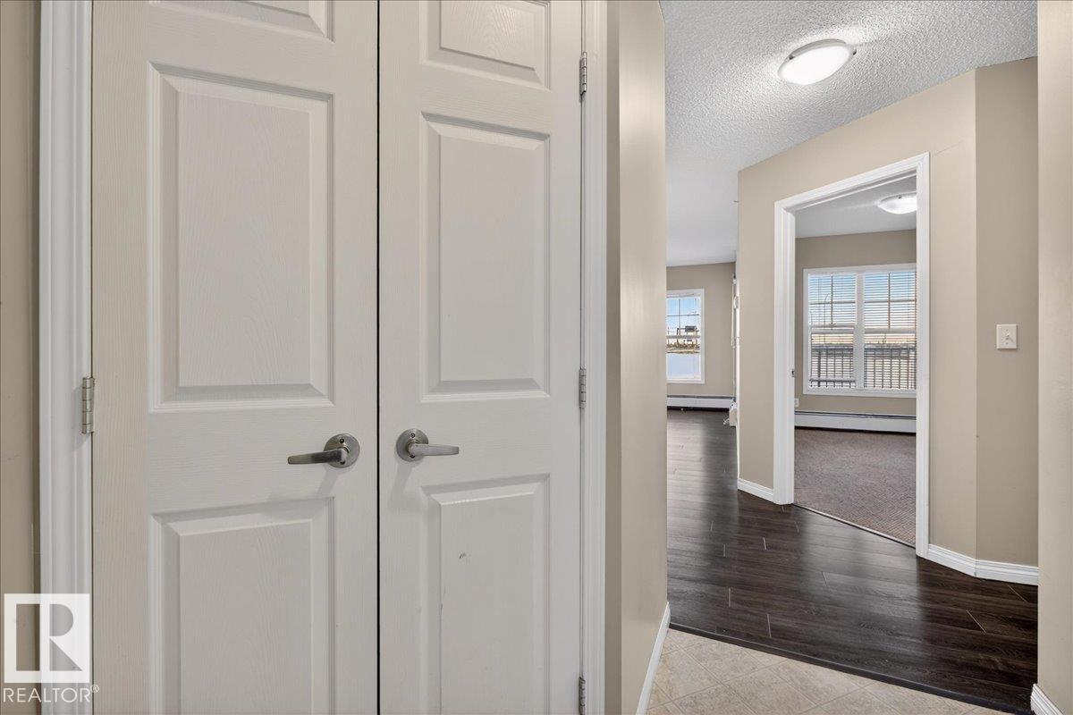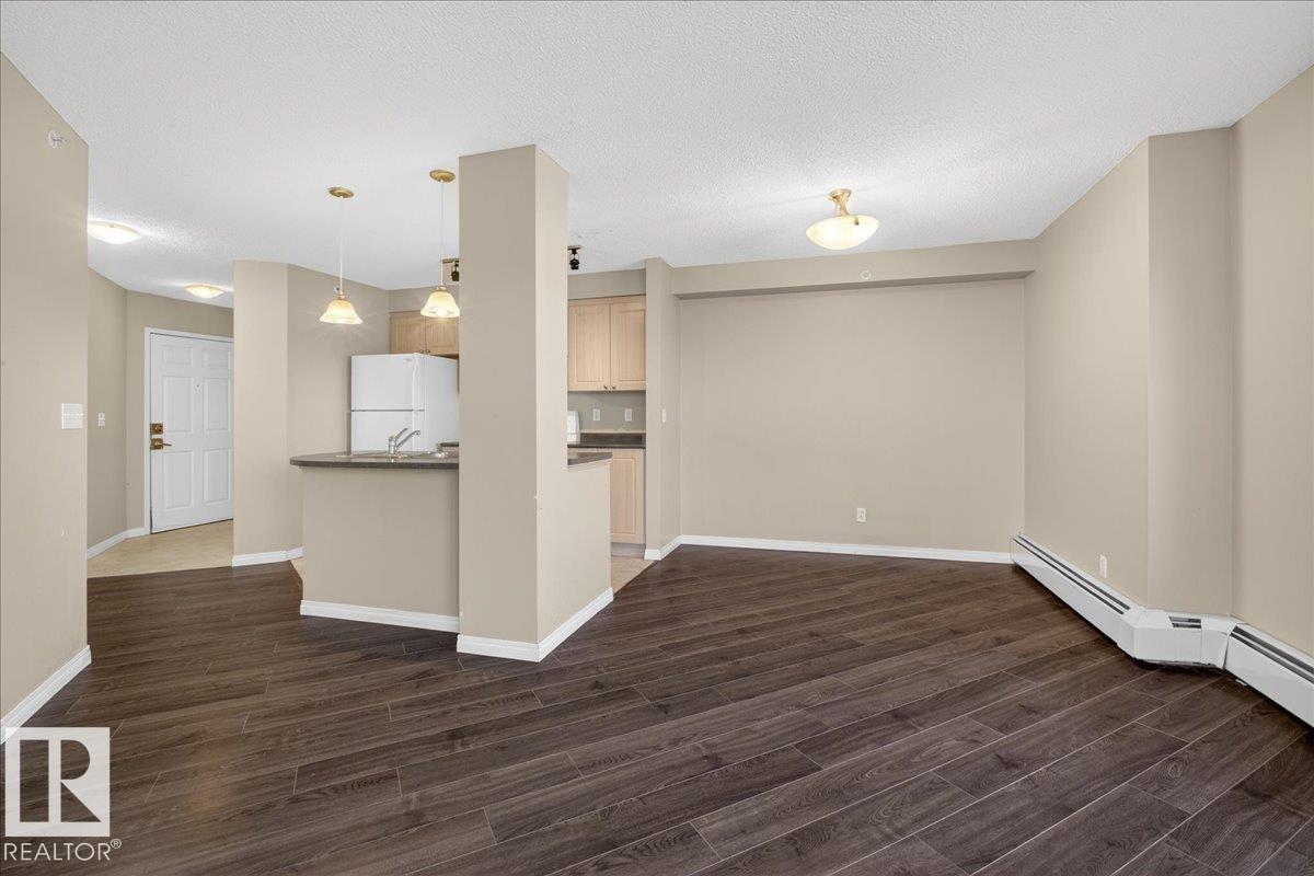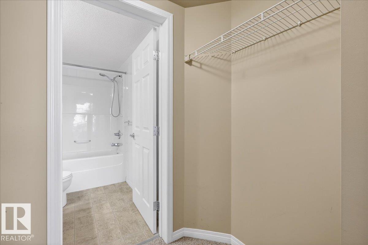 Affordable top-floor 2-bedroom 2-bath condo in MacEwan Village with immediate possession—ideal for investors or first-time buyers. This open-concept unit is conveniently located just steps from the elevator, adding everyday practicality for tenants and owners alike. The kitchen features bright maple cabinetry, ample storage, and an eat-at island overlooking the living and dining areas. The primary bedroom includes a walk-through closet, 4-piece ensuite, and direct access to the private balcony with gas BBQ hookup. Additional features include in-suite laundry and secure heated underground parking. All utilities (heat, water, power) are included in the condo fees, helping keep monthly costs predictable and attractive for rental purposes. This pet-friendly, well-managed building offers visitor parking, public transit access, surveillance, and on-site property management. Quick access to Anthony Henday and minutes to Ellerslie shopping and amenities. (33717154)