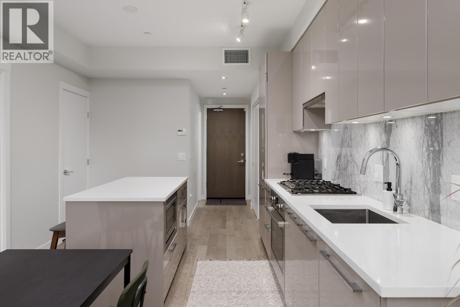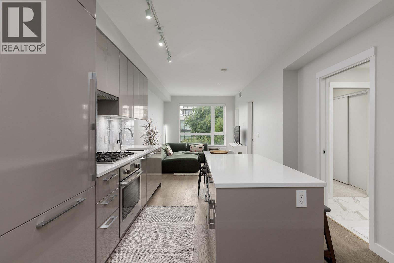 Welcome home to Bennington House, situated in the tranquil South Cambie neighbourhood. This open-concept condo features Kentwood-engineered wide plank flooring throughout, 9ft ceilings, and expansive south-facing windows allowing natural light and fresh air to flow throughout the home. The gourmet kitchen offers custom soft-close cabinetry, an integrated Bosch appliance package-including a gas cooktop, and built-in oven-complemented by a polished marble backsplash and quartz countertops. Residents of Bennington House have exclusive access to an amenity lounge with a spacious courtyard patio. Nestled on a peaceful, tree-lined street just a stroll away from Queen Elizabeth Park, this condo is steps away from beautiful parks, lush gardens, and local cafes and restaurants. (32326539)