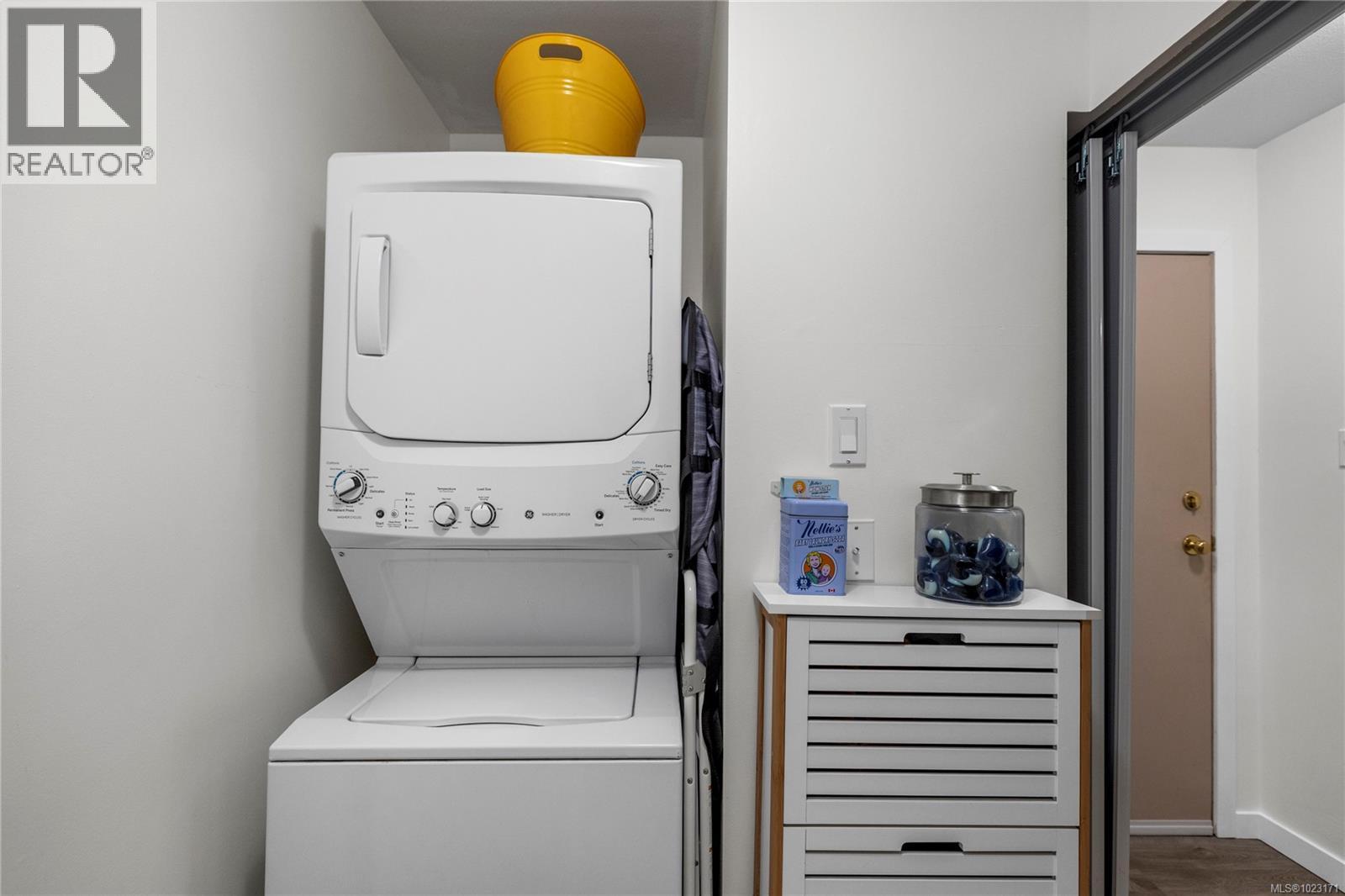Welcome to this two-bedroom condo in the sought-after Rutherford Pointe complex. Enjoy a prime North Nanaimo location with a walking path to Nanaimo North Town Centre and nearby shops and services. Inside, the stylish kitchen, newer flooring, and spacious living and dining areas create a comfortable setting. A covered deck provides space to relax outdoors. The home features two bedrooms, including a primary with walk-in closet and four-piece ensuite, plus a second four-piece bathroom. An in-unit laundry room with storage adds extra convenience. One dog or cat up to 30 lbs and 16” tall is allowed. The strata fee includes hot water. For more information on this property see the 3D tour, video, and floor plan. All data and measurements are approximate and must be verified if fundamental. (30270580)