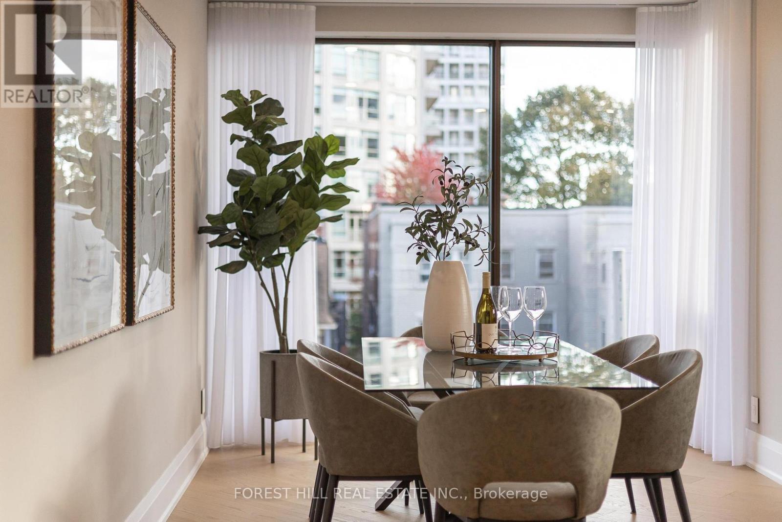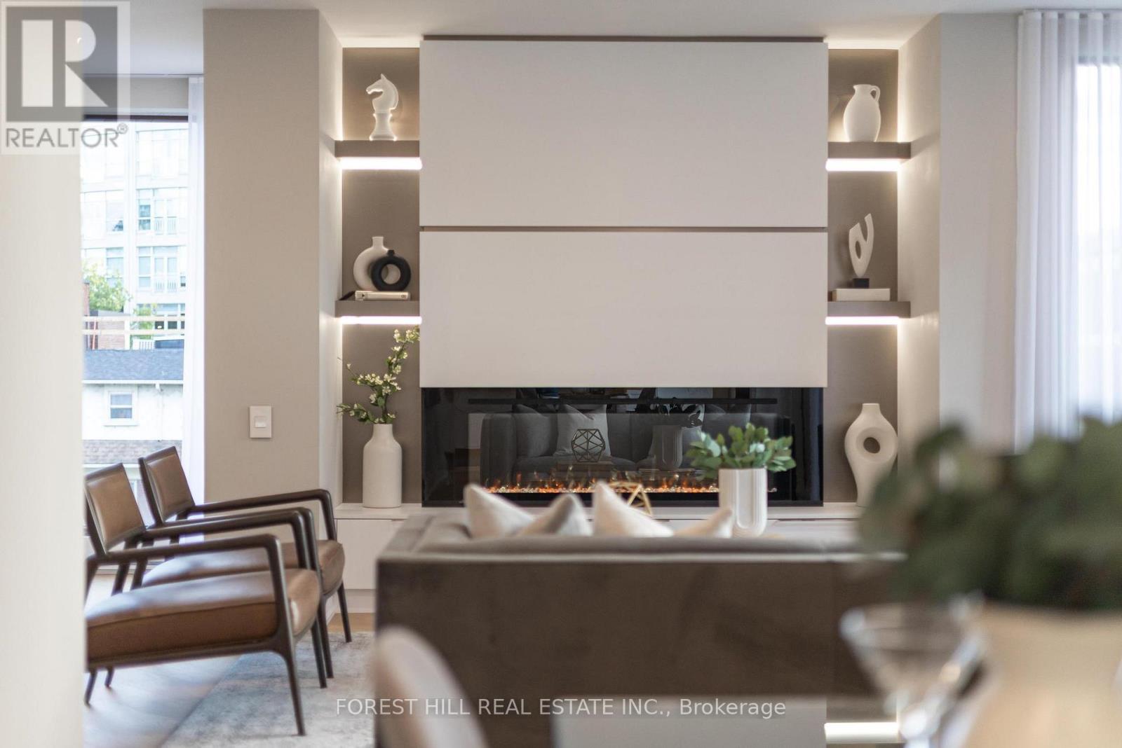 Nestled in a boutique residence of only 20 suites in prestigious Forest Hill Village in this meticulously renovated 1,750 SF corner suite. This turnkey residence showcases 2 spacious bedrooms & 2 bathrooms, boasting bespoke finishes that elevate everyday living. Bathed in natural light, the suite features floor-to-ceiling glass creating a bright and airy atmosphere. The sumptuous light wood floors add a sophisticated touch to every room. A striking fireplace with custom built-ins & integrated lighting, serves as the anchor of the main living space. The thoughtfully designed split floor plan offers a seamless flow ideal for entertaining. The chef's kitchen is equipped with high-end Miele appliances, a stunning quartz center island with overhead hood fan & ample cabinetry. Breathtaking views of the surrounding tree canopy. Retreat to the gracious primary suite, featuring custom built-in cabinetry & a spa-like ensuite, complete with double sinks, a spacious walk-in shower with bench, heated floors & heated towel rack & exquisite finishes that exude opulence. The generous second bedroom is the epitome of comfort & style, while the additional bathroom boasts a luxurious soaker tub, heated floors & towel rack. This impressive suite also includes a full laundry room with sink and extra storage. Completing the package are 2 parking spaces & large locker. Situated just steps away from The Village, Loblaws, boutique shops & fine dining options, as well as Winston Churchill Park & scenic ravines. Public transit is conveniently around the corner. This exceptional residence harmonizes exquisite design with an unbeatable location, setting the stage for an enviable lifestyle in one of Toronto's most sought-after neighbourhoods. (41940821)