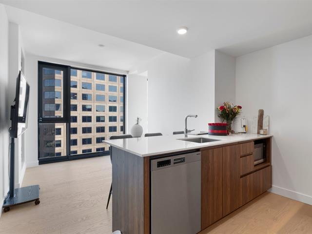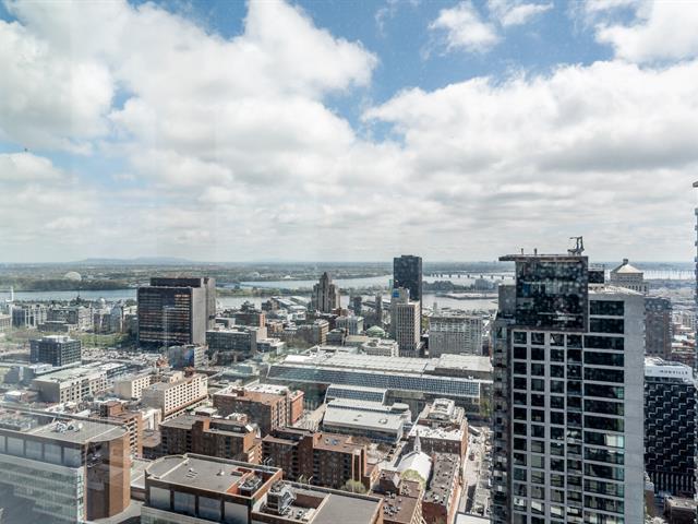 Exceptional corner condo on the 36th floor featuring floor to ceiling windows that capture stunning views of the water and downtown skyline. This refined 2 bedroom, 1 bath residence offers elegant high end finishes, a generous loggia, indoor parking and locker. Enjoy a prestigious lifestyle at Maestria with over 40,000 square feet of amenities including a Scandinavian spa, semi Olympic pools, a state of the art gym and the striking sky bridge. Ideally positioned in the Quartier des Spectacles steps from Place des Arts, renowned restaurants, boutiques and Montreal's vibrant cultural life. (51161502)