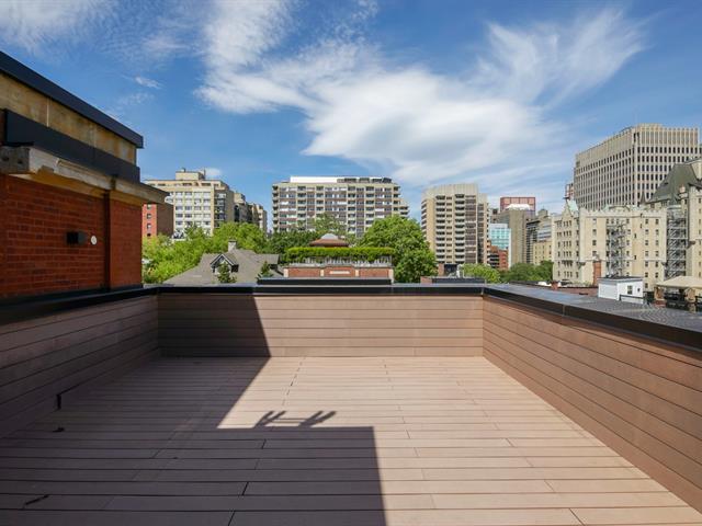 Du Musée Project - High-end finishes and heritage architecture define this refined condominium, where elegance meets distinguished urban living. Located on the third floor, the unit features a private terrace, offering a desirable outdoor space. The architectural character enhances privacy and abundant natural light. Access to a private gym, security features, heated walkways with a snow-melting system, and indoor garage parking complete this exceptional property. GST/QST must be added to the asking price (55593259)
