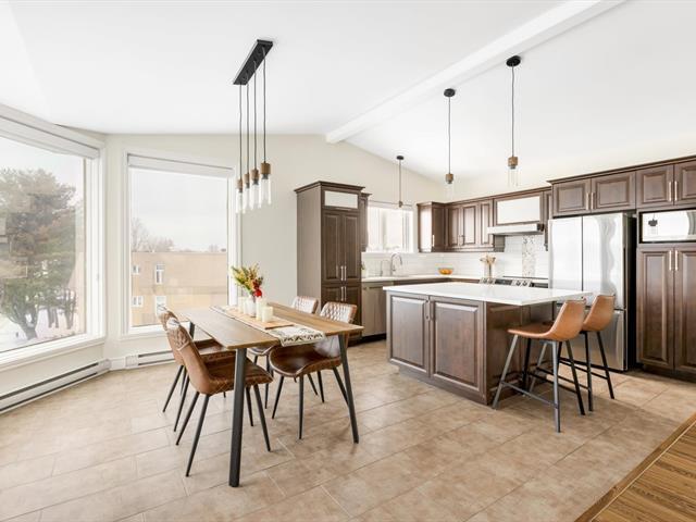 Spacious condo 412 completely renovated with garage in Trois-Rivières! This property is distinguished by its vast common living area with cathedral ceiling, its abundant fenestration, as well as the quality of its materials, notably the quartz countertops. The large master bedroom is ensuite to a full bathroom with ceramic shower and freestanding bath. There is also an independent laundry room, a double-depth garage integrated into the building as well as a large balcony. A prime location within walking distance of all services: shopping center, schools, pharmacies and leisure. Treat yourself to a visit! (57021315)