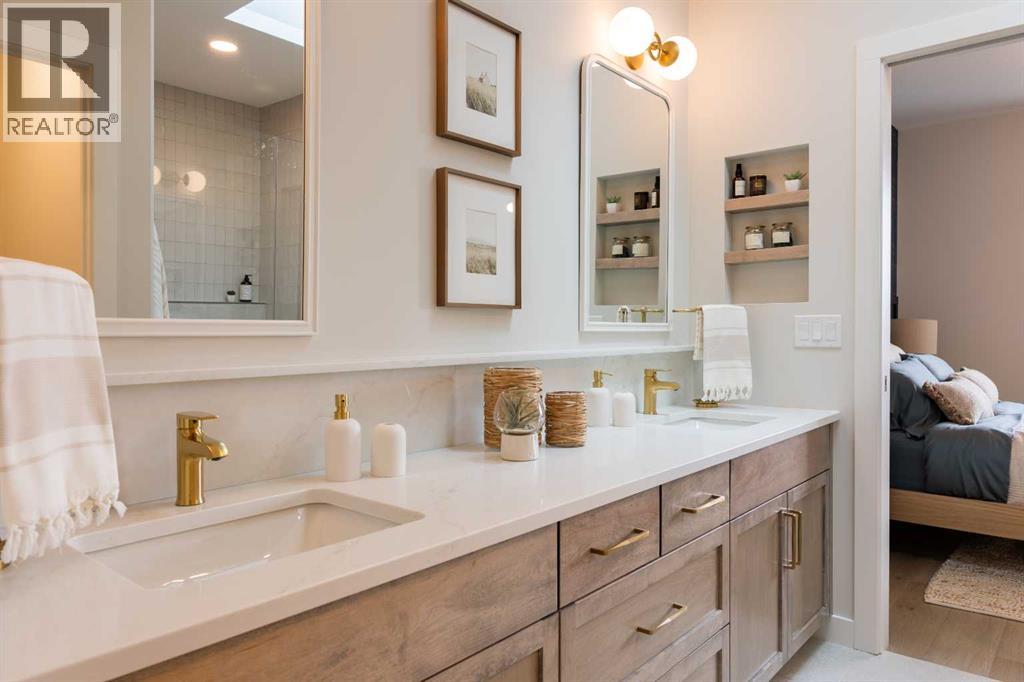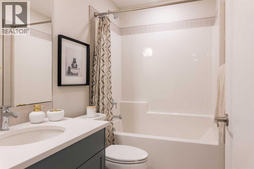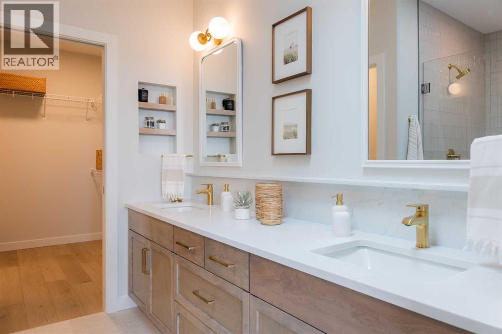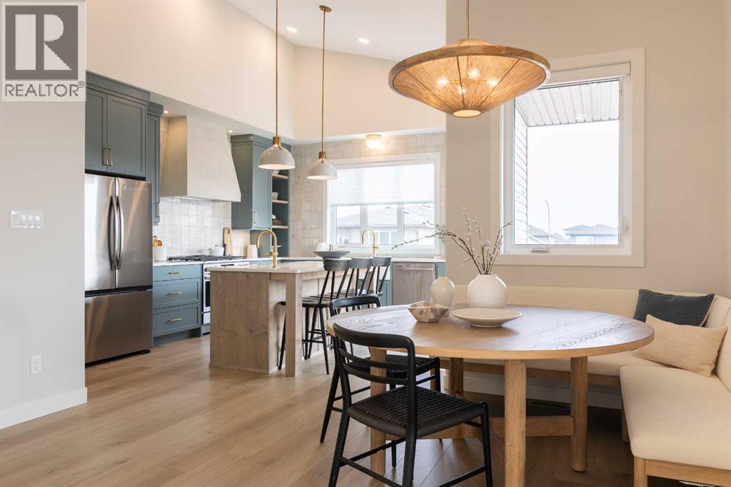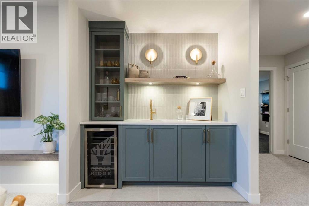 A showhome with everything you need on the main floor?! How often does that happen? Well, here it is. The Ficus by Cedar Ridge Homes is an incredible bi level floorplan, that pairs functionality with elevated showhome finishes to create a true masterpiece you need to see. Up a few stairs from your spacious foyer with built ins, you are greeted by a lovely main floor complete with a cozy living room with gas fireplace, and two floor to ceiling windows that flood this whole space with the best natural light. The kitchen is truly one of a kind with two tone cabinets, a plaster hood fan, upgraded cabinets with glass insert, open shelving, and full height ceramic tile backsplash. Not to mention the positively massive window over your kitchen sink. Doing the dishes just got so much better with this in front of you! There's an extra prep sink in the beautiful island to make this space extra functional. Your primary bedroom is conveniently located on the main floor, with a four piece ensuite connected to a spacious walk in closet, which is then connected to your main floor laundry! Zero excuses if your clothes don't get put away now! The unique floorplan continues up a few stairs to the second floor, where you will find a great size loft area with open to below feature, another four piece bathroom, as well as two bedrooms. If you have little kids, they won't be too far away from you at all! The basement is also fully developed, with a family room with wet bar with custom cabinets, one more four piece bathroom, and 3 more bedrooms. You read that right...3! 6 bedrooms total! Outside you will love that a large deck has already been built on and is just ready for you to enjoy the morning sunrise. This home is located in the highly sought after neighbourhood of Riverstone, where people rave about the schools, parks, walking paths, and close access to restaurants, groceries, a fully stocked fishing pond, and so much more. Come see all this gorgeous showhome has to offer. (31526699)