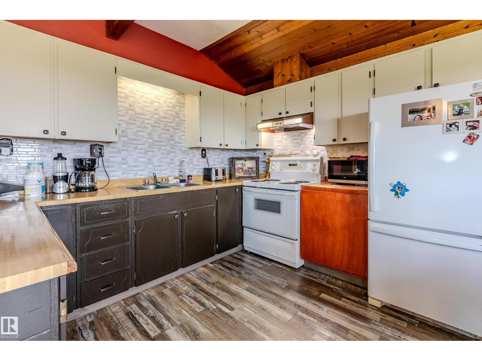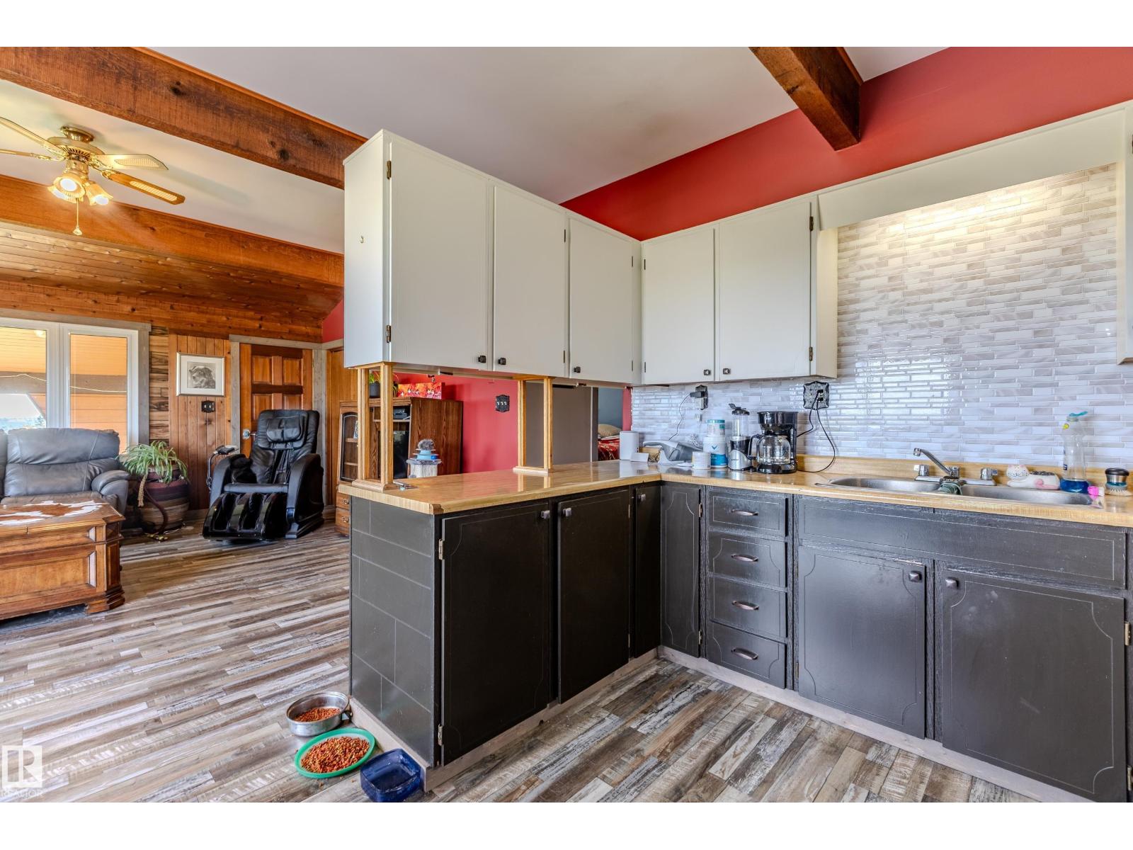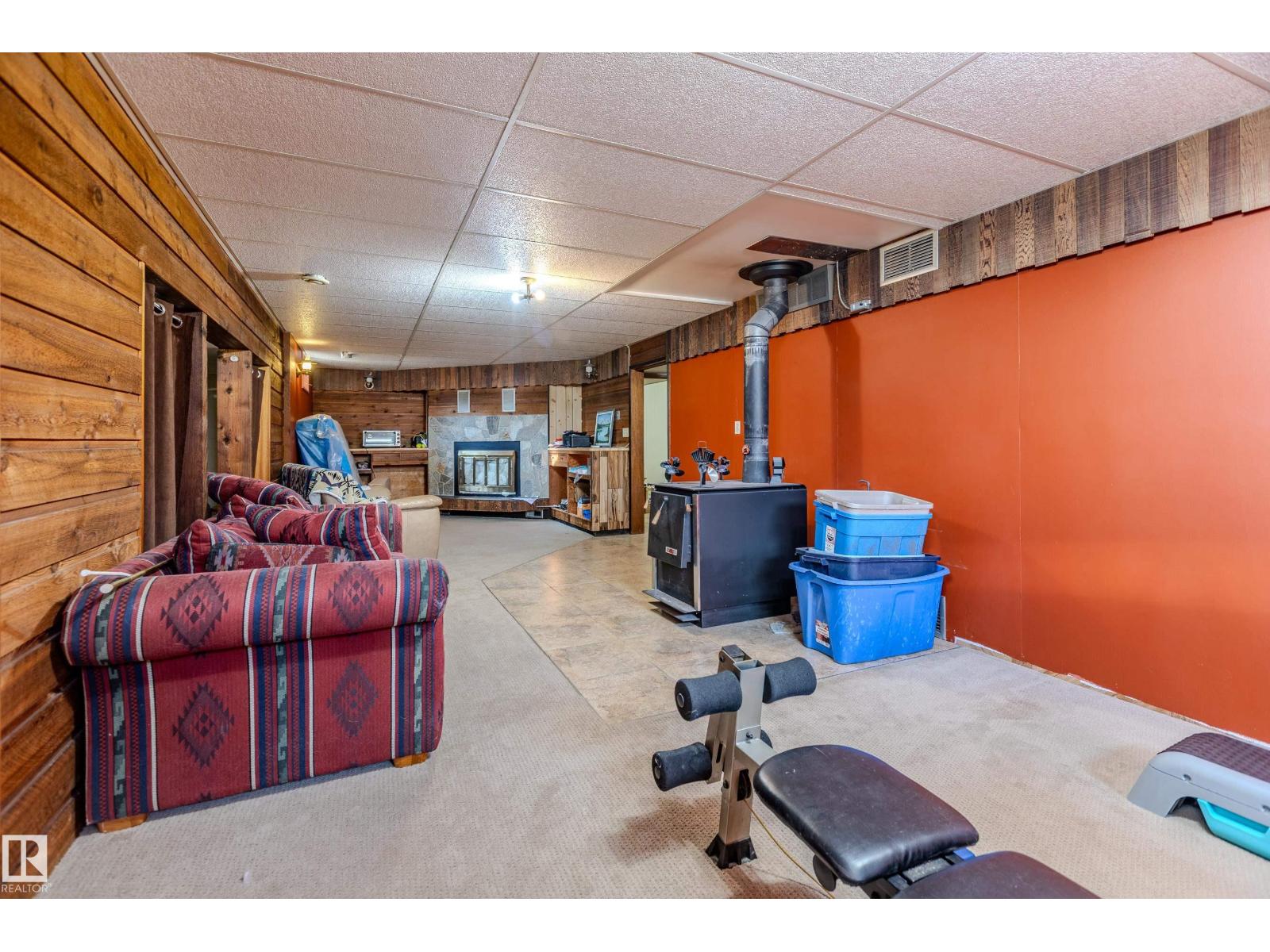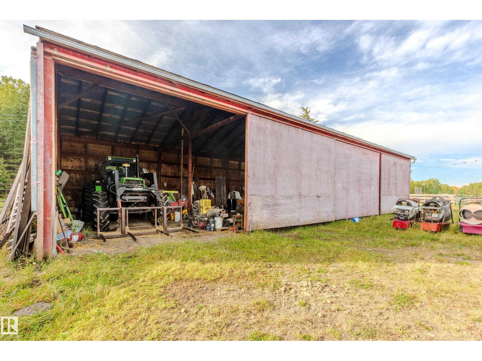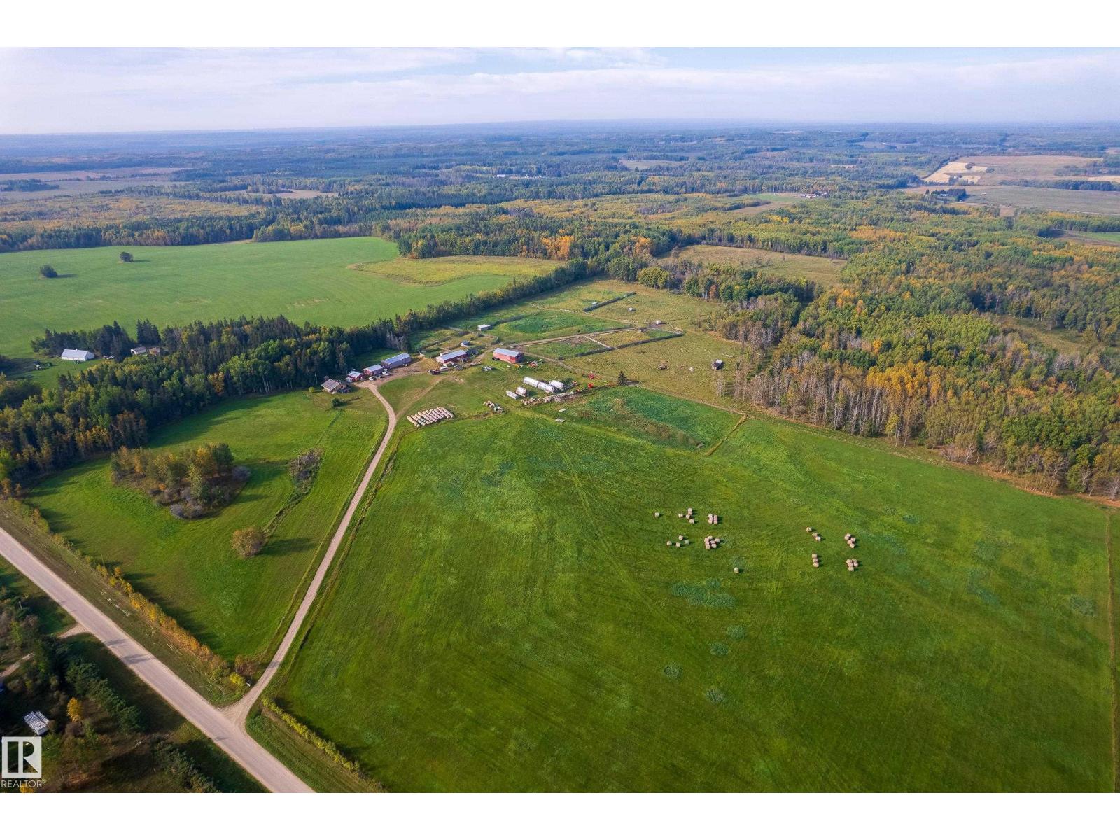 1/4 Section with a split level country style family home. Main level features open concept kitchen and living area with wood vaulted ceilings. Patio doors lead to the deck with sweeping views overlooking Chip lake. Main level has 3 beds and 4 piece bath. Lower level features 4th bed, large family room, wood burning stove, utility and cold storage rooms. Outside, there is a sheltered fire pit area and plenty of room to establish a garden. Outbuildings include 2 shops, hayshed and barn, partially insulated. There is a smaller heated shop, currently in use as on farm store. Sorting corrals at the barn, as well as larger feedlot pens with multiple livestock waterers. Property has multiple water wells. Full perimeter fencing and cross fencing with a mix of grazing pasture/hay and woodland. Ideal for the horse enthusiast or just the outdoor lover with ample game and serene peace and quiet. Currently set up as cow/calf operation. On a no through road with easy access to highway 16. 10 minutes to Wildwood. (33717947)
