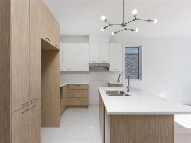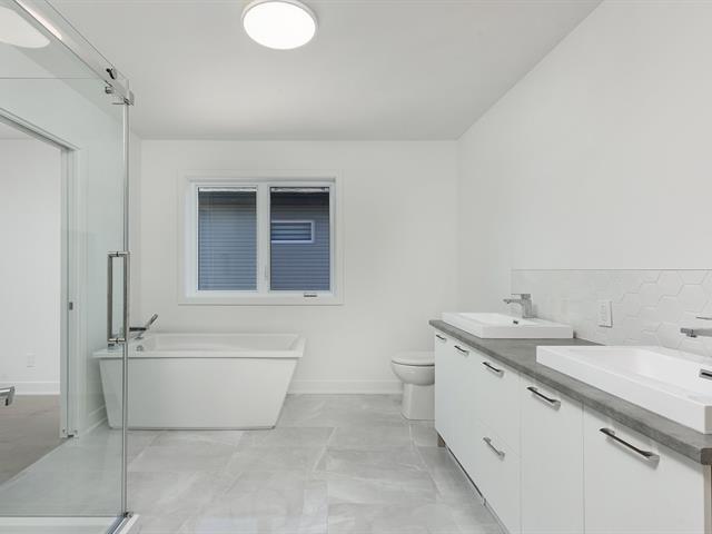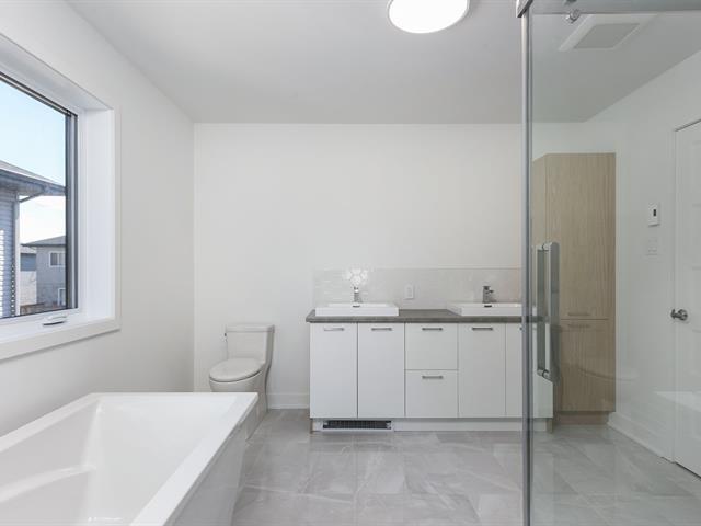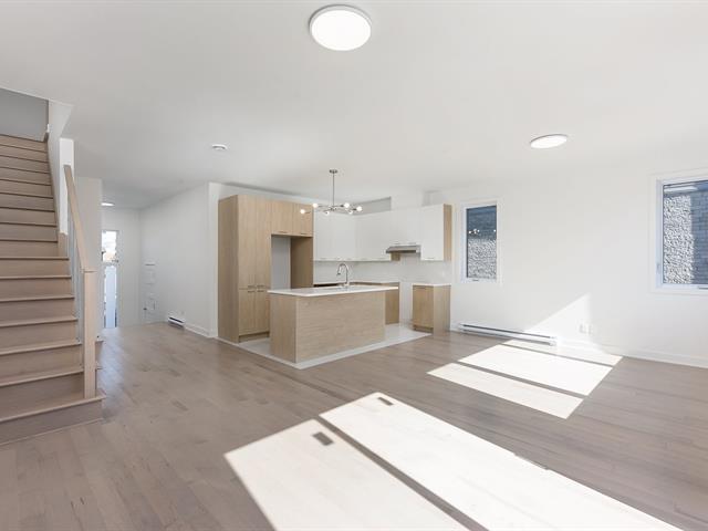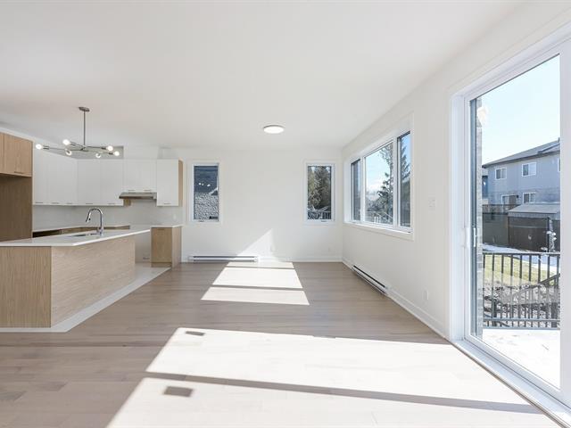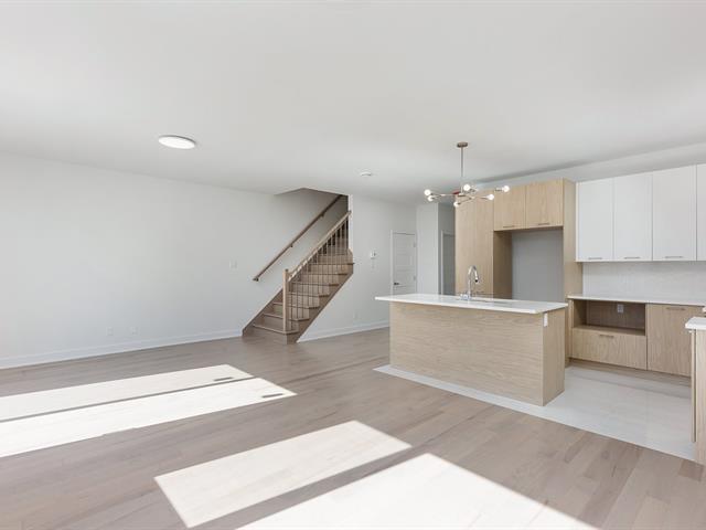 Spacious 1,728 sq. ft. two-story unit with garage, abundant natural light, and high-end finishes. Located in Westley, 5 min from REM & Dix30, near a primary school, transit to downtown, highways 10, 30 & 116, and all services. Open-concept main floor with 9' ceilings, functional kitchen, central island, quartz counters, double sink. Concrete balcony and large backyard. Upstairs: 3 generous bedrooms, luxurious primary with ensuite and walk-in closet. (56785349)