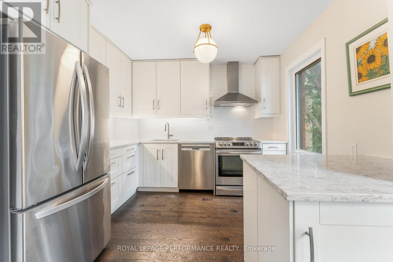 Updated End Unit Freehold Townhome in the Heart of Sandy Hill! Enjoy a bright, well-designed 3-storey end-unit townhome offering urban convenience, modern finishes, and inviting outdoor living. Ideally located in vibrant Sandy Hill, you're just steps to scenic Rideau River and Canal pathways, downtown, the University of Ottawa, and Ottawa's best cafés, restaurants, and nightlife. The efficient floor plan maximizes comfort and versatility. The main level features inside garage access, powder room, and a bedroom/home office with patio access, plus a kitchenette and stylish 3-piece bath (2022)--perfect for guests. The open-concept second level blends living and dining spaces with hardwood floors, a cozy wood-burning fireplace, and two elevated decks for expanded living in warmer months. The renovated kitchen (2016) boasts quartz counters, subway tile backsplash, soft-close cabinetry, and stainless appliances. Three upper-level bedrooms share an updated 4-piece bath (2018). Additional features include garage plus driveway parking, and updates throughout: roof (2018), furnace (2014), A/C & windows (2016), hot water tank (2024, rental), kitchen (2016), and main-level bath/kitchenette (2022). Move-in ready in one of Ottawa's most walkable and picturesque neighbourhoods. **Some photos virtually staged. (41941722)