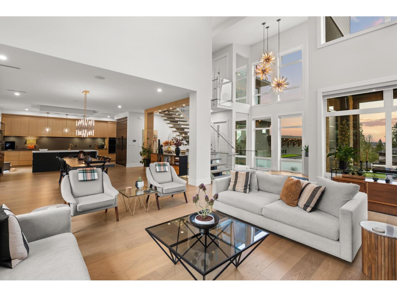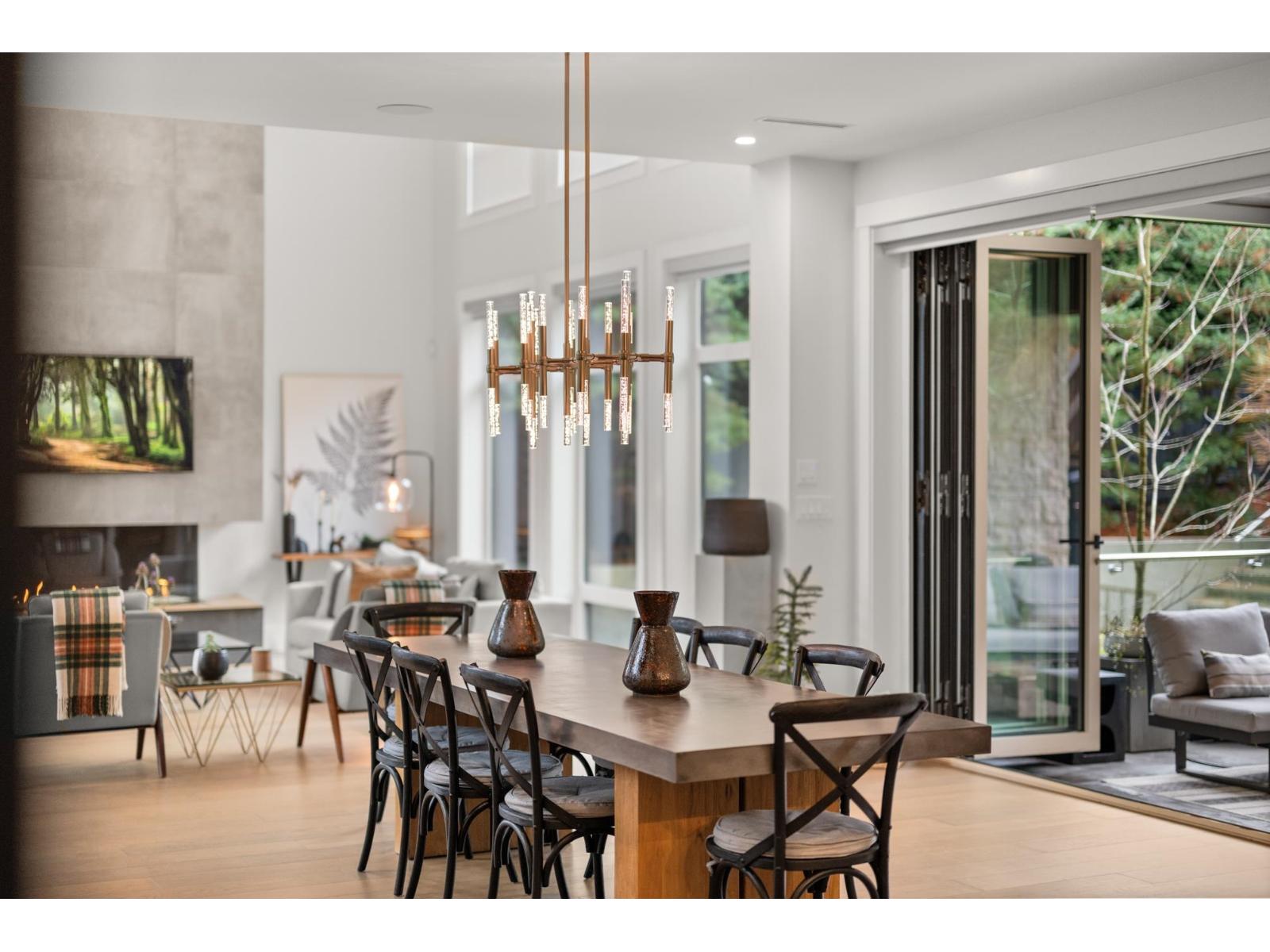 MODERN ARCHITECTURAL MASTERPIECE by Su Casa Homes. Thoughtfully designed and impeccably executed in April Creek. No expense spared with engineered steel beams to achieve the architectural design, radiant in-floor heating, bespoke millwork, curated designer lighting, and premium engineered hardwood throughout. Dramatic 20' ceilings anchor the main living space, highlighted by a stunning double corner fireplace and steel stringer staircases. Massive accordion sliders seamlessly connect the interior to the outdoor living area, complete with a fully equipped outdoor kitchen-perfect for entertaining.The home offers 4 spacious bedrooms, all with ensuites, plus a private office, 6 bathrooms including 2 steam showers, and a designer kitchen with high-end appliances and a butler's pantry. A glass elevator services all levels. The lower level is an entertainer's retreat featuring a wet bar, theatre room, additional living space, and gym. Bold architecture - Thoughtful design - Uncompromised luxury. (32325060)