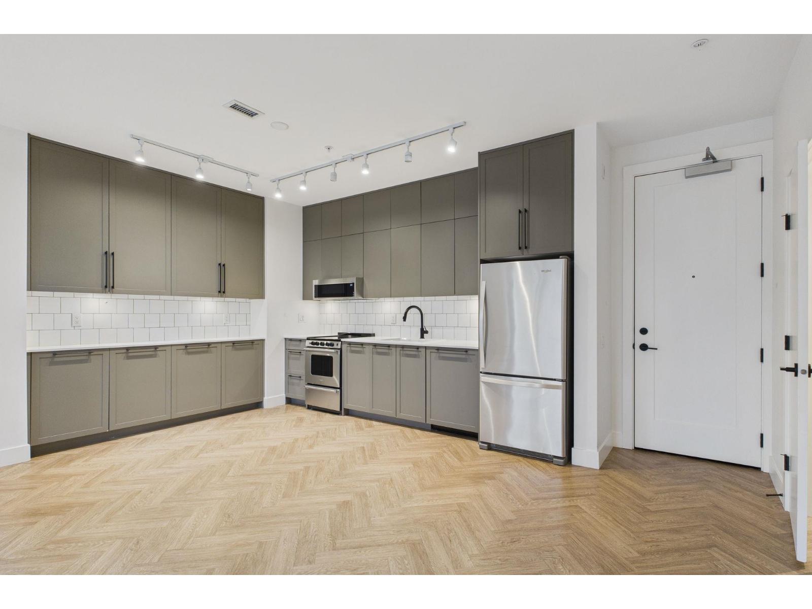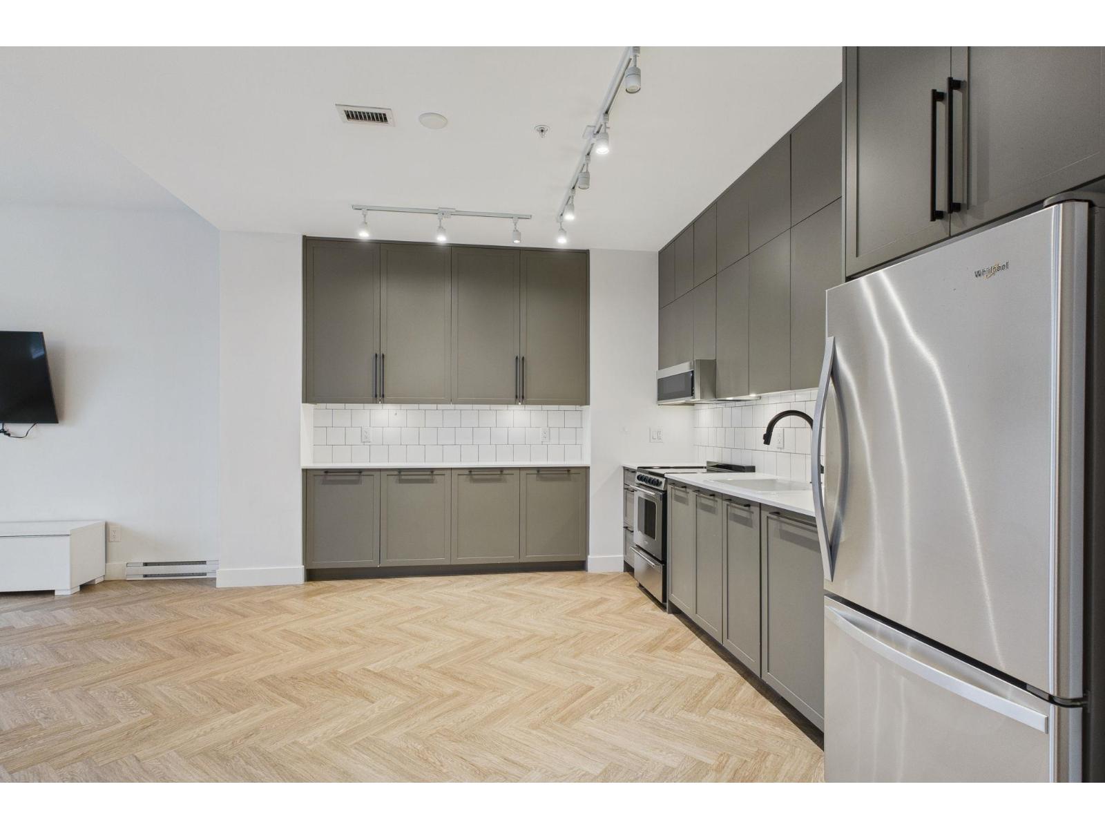 PARKER by Mosaic! Well-built & highly regarded builder. TOWNHOME 2 beds + 2.5 baths close to 1200 SF of modern, functional living space in almost-like-new-condition. Main level features an open kitchen & large living area with patio door overlooking the front yard & powder room for added convenience. Upstairs has a primary bedroom w/ensuite & 2nd full bath serving the 2nd bedroom, providing excellent privacy & a practical layout for everyday living. Enjoy a rare access to front door via large private front yard, comes w/1 parking, wheelchair-accessible building, provide comfort & accessibility. Close to Guildford Town & Surrey Centre, Schools, Parks, Transit. This home offers an exceptional balance of lifestyle & convenience in a well-connected & desirable neighborhood. Pride of Ownership. (32327509)