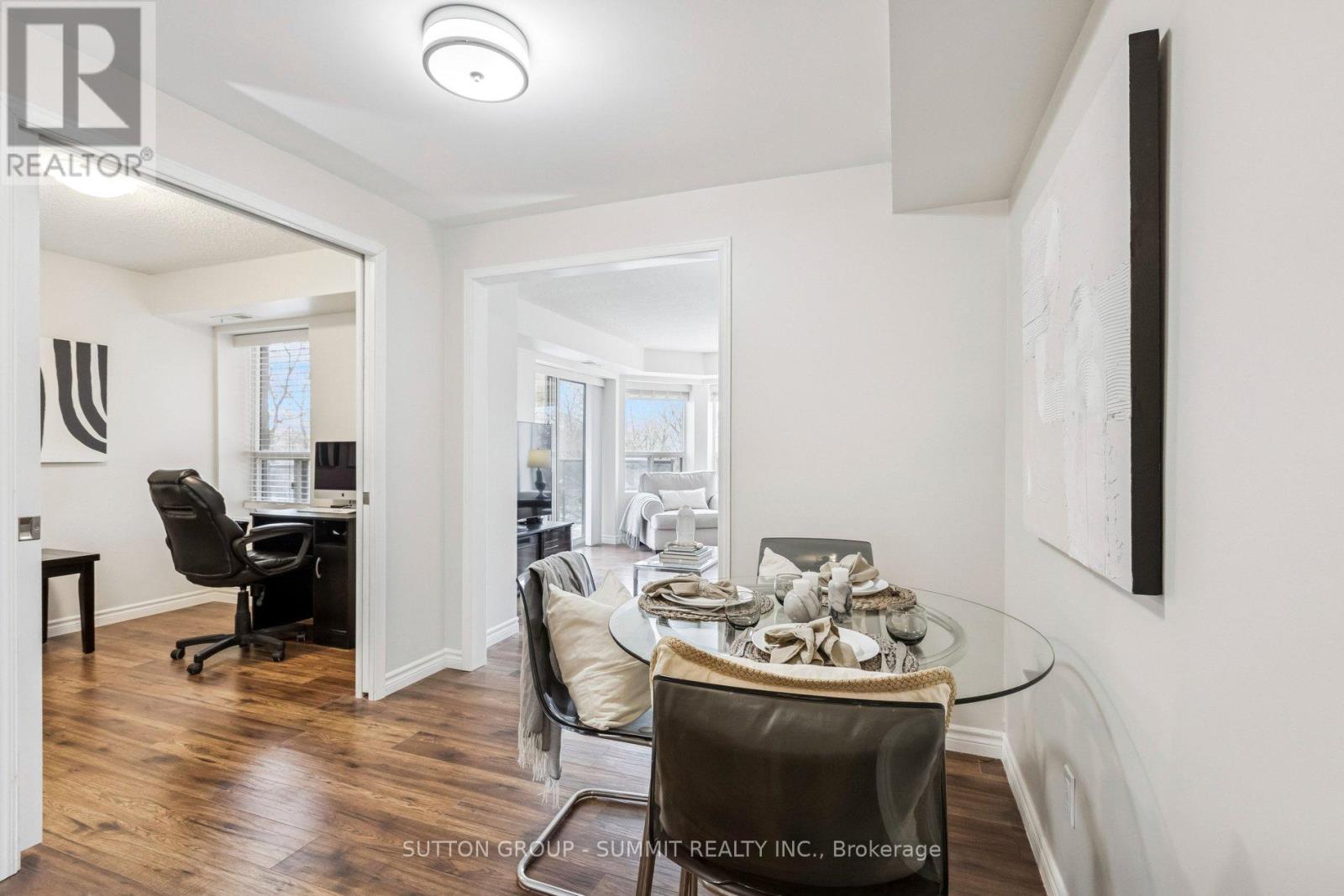 Welcome to this gorgeous renovated corner unit, 2+1 bedroom, 2 bathroom suite at the highly sought-after Parkview Terrace. Offering Over 1,200 sq. ft. of bright boutique-style living, this spacious home is set within one of Guelph's most charming low-rise condominiums. With only four suites per floor, residents enjoy exceptional privacy and a strong sense of community. A welcoming foyer with a large double closet sets the tone for this professionally renovated home. Painted throughout in a soft neutral enhances the home's bright, open, airy flow. The sunlit primary bedroom features 2 large windows, 2 generous closets, a private 4 piece ensuite with a tub/shower, and a large vanity. The second bedroom offers ample space and natural light, with easy access to a newly upgraded second bath, showcasing a modern tiled shower, new vanity plus a pocket door to a storage room. The stunning new kitchen is designed for both form and function, complete with modern cabinetry, stainless steel appliances, breakfast bar, gorgeous quartz counters and seamless quartz backsplash, plus an eat-in dining area. In-suite laundry is conveniently tucked away. The living and dining area offers a perfect space for families or those who love to entertain. The private office/den with pocket doors creates an ideal quiet space or 3rd bedroom, a rare 2+1 find. The abundance of windows flood the home with natural light all day. This corner unit offers 2 beautiful exposures with morning and evening sun and a private balcony with a peaceful, tree surrounding. Additional highlights include a sauna, gym and party room. Ideally located close to Hwy's and minutes from downtown Guelph's vibrant cafes, shops, farmers' market, restaurants, trails, and dog parks, with easy access to the Hanlon Expressway, this home offers an exceptional blend of comfort and space. Guelph has been named the very best spot to live in Canada for 2025 It's no surprise with its historic streets, lively downtown & green spaces! (41941761)