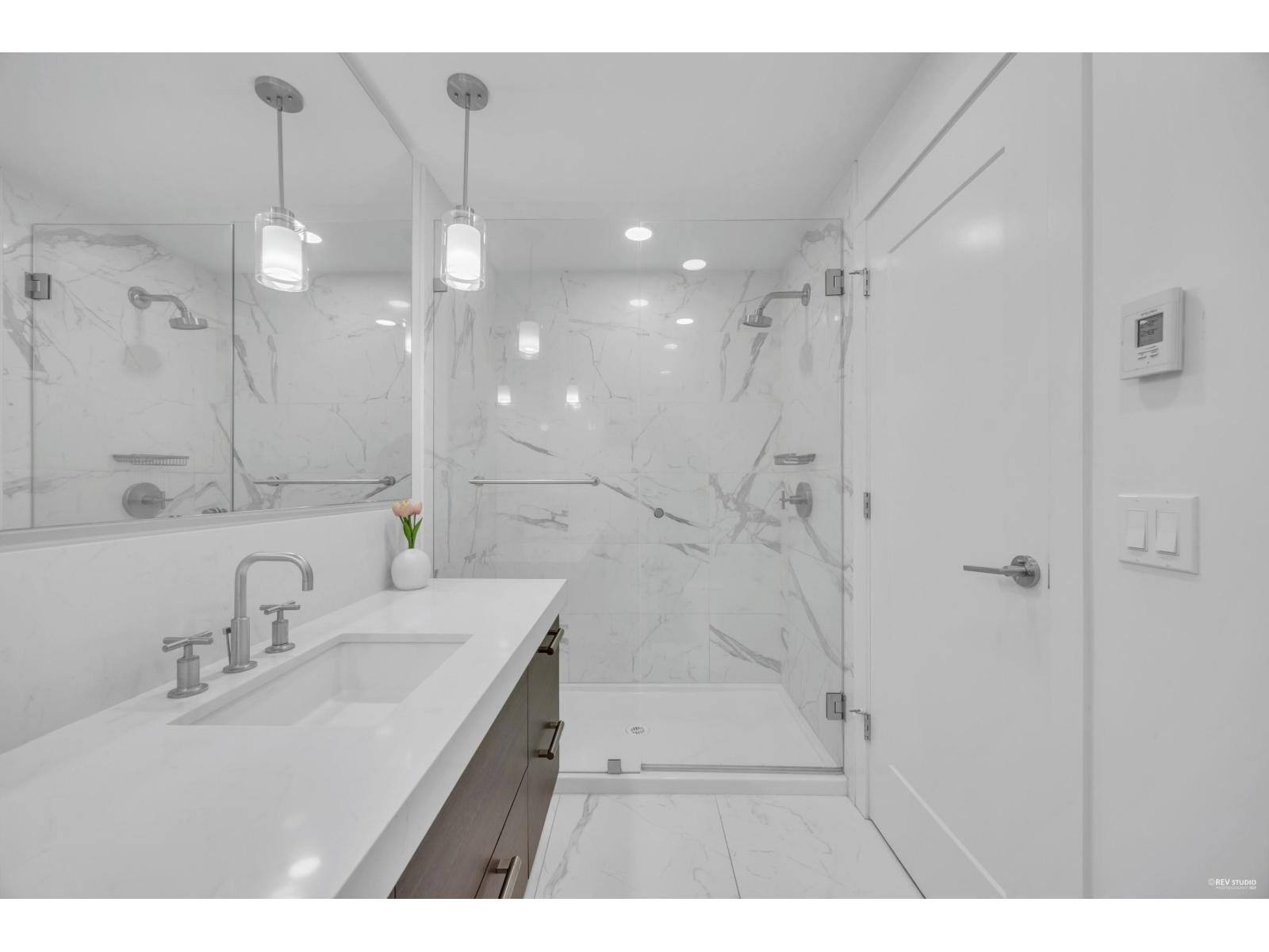 Corner unit in Abbotsford's luxury building, The Residences at Gateway. This spacious 2-bedroom, 2-bath suite offers premium finishes with a 9-foot ceiling, full laundry room, radiant bathroom floors, and heat pump/AC. Enjoy marble backsplash, wide plank flooring, and a balcony with a gas BBQ hookup. High-end appliances include a Bertazzoni gas range, Fisher & Paykel fridge, Bosch dishwasher, and built-in wine storage. Comes with 2 secure underground parking spaces and a large 8' x 8' storage locker next to your parking. Covered by New Home Warranty. Close to downtown Abbotsford, Highway 1, shopping, and dining. (32327645)