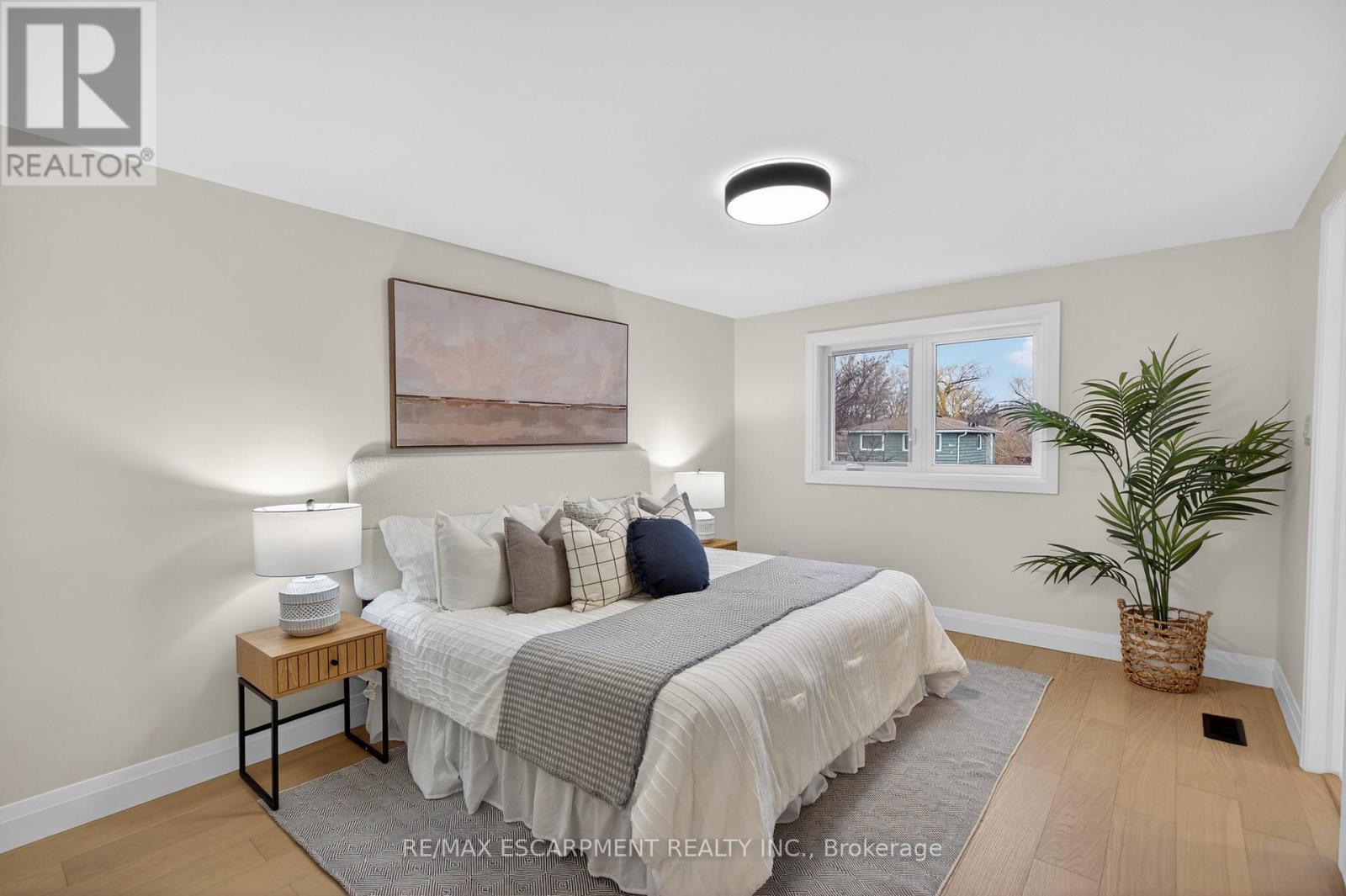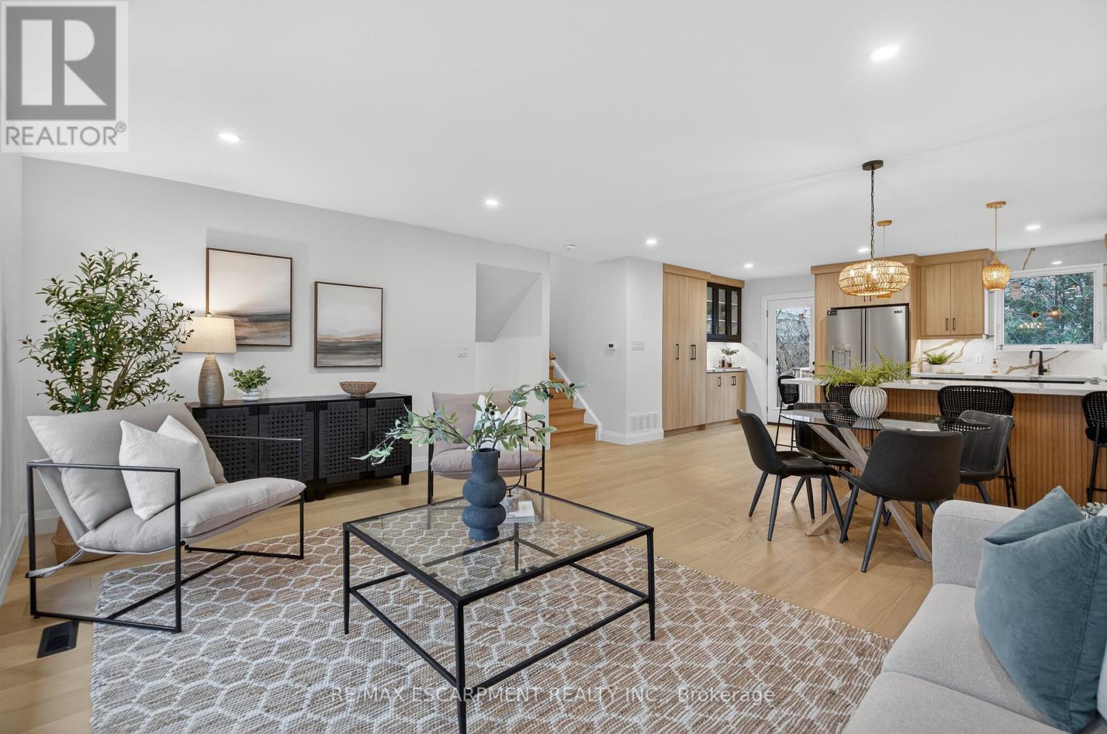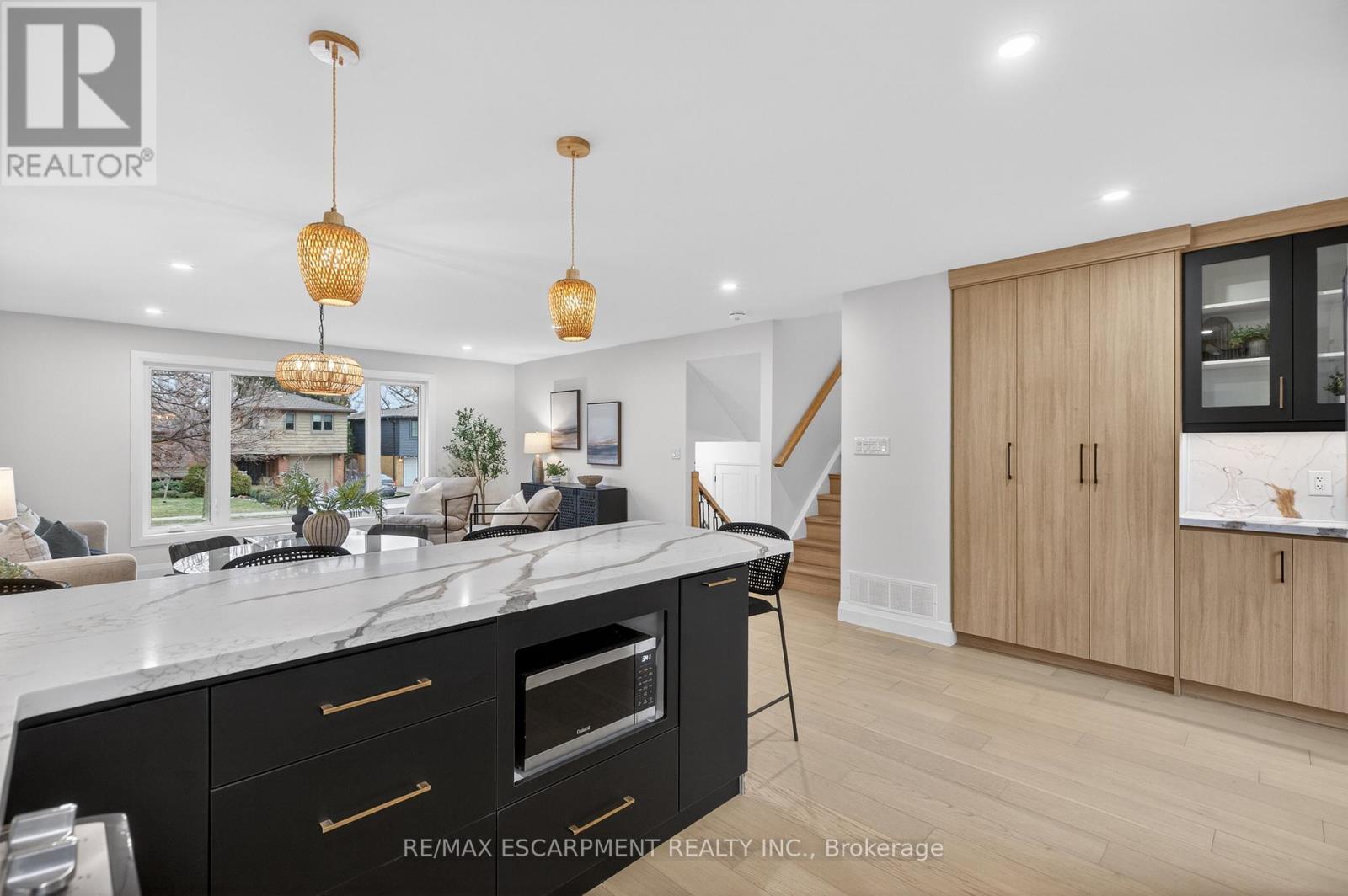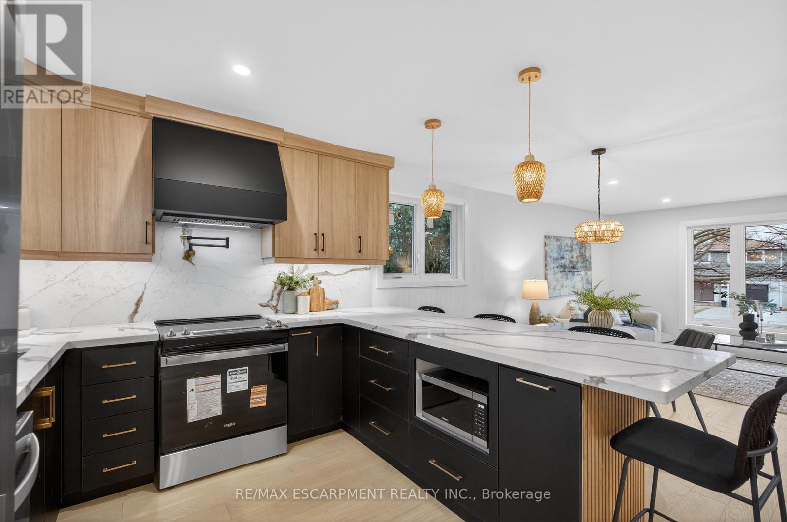 Welcome to 5375 Riverside Drive, a masterfully renovated 4-level side split that sets a new standard for style and craftsmanship. This home has undergone a comprehensive, fully permitted top-to-bottom transformation. The main level offers a sophisticated open-concept floor plan featuring a custom chef's kitchen with premium finishes, flowing seamlessly into the living and dining areas accented by elegant white oak flooring. The upper level serves as a private sanctuary, headlined by a primary suite with a spa-inspired 6-piece ensuite and a custom-organized walk-in closet. The ground floor provides excellent functionality with a spacious foyer, garage access, and a versatile office space that opens to an expansive rear yard via sliding glass doors. Downstairs, a light-filled recreation room-complete with a wet bar and feature fireplace-offers the perfect setting for hosting. Ideally situated on the Oakville border, this property is just minutes from the lake, Bronte Village, and the Appleby GO station. (41942040)