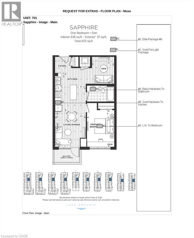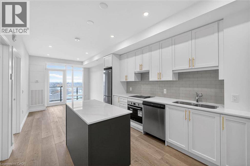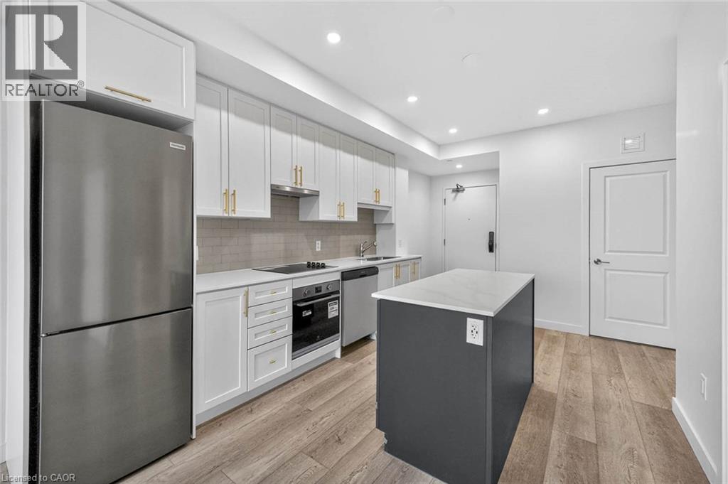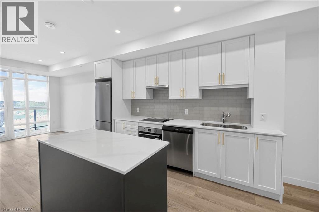 This Sapphire suite with lake views offers a thoughtfully designed one bedroom plus den, one underground parking space, and one storage locker, paired with the highest upgrade package available. Finishes include elegant luxury vinyl plank flooring throughout - including the bedroom, quartz countertops in both the kitchen and bathroom, an upgraded pot light package, and a premium 7-piece stainless steel appliance suite. The kitchen is further elevated with upgraded 100 cm upper cabinetry, while in-suite laundry adds everyday convenience. With 635 sq. ft. of interior living space plus a 37 sq. ft. balcony, the layout is efficient, bright, and designed to maximize both comfort and functionality - with tranquil lake views extending your living space outdoors. The building blends modern design with smart living, offering app-based climate control, digital access, energy monitoring, and enhanced security. Resident amenities include an art-inspired chef's kitchen lounge, BBQ terrace, media room, pet spa, and creative studio spaces. Located just 400 metres from the shores of Lake Ontario and steps to the future GO Train, this home offers seamless access to downtown Toronto while staying connected to the best of Hamilton - from its vibrant restaurant scene and local shops to nearby parks, trails, and weekend escapes to Niagara. A refined lake-view suite with premium upgrades, modern conveniences, and an exceptional location - this is elevated condo living done right. (70044535)