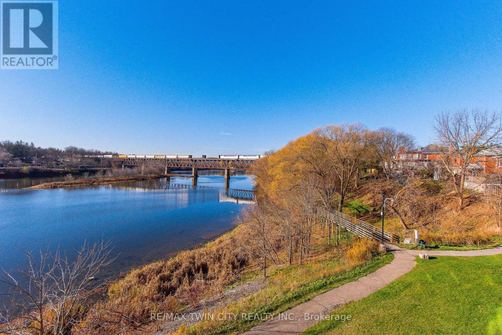Welcome to this beautiful 2-bedroom, 2-bathroom condo in the heart of Galt, offering stunning views of the Grand River. This spacious unit features a large balcony where you can enjoy peaceful river views, ideal for relaxing or entertaining. With two dedicated parking spots-one underground and one on the surface-you'll have both convenience and flexibility. Inside, enjoy an open layout with ample natural light, modern finishes, and comfortable living spaces. This condo perfectly blends scenic charm with urban convenience, making it an ideal home for those seeking a balance of comfort, style, and a picturesque location. The condo has many amenities including a roof top deck, gym, guest suites and social room! The condo fee also includes a locker, heat, air conditioning and water! Book your viewing today and be ready to call this condo Home! (41942034)