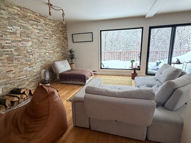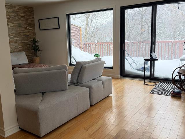 La grande salle à manger offre amplement d'espace pour recevoir, la cuisine, allie fonctionnalité et style véritable espace de créativité pour les passionnés de gastronomie. À l'étage, une salle de bain avec une grande douche vous offre un espace de détente. Un petit boudoir mène aux deux chambres spacieuse, baignées de lumière grâce aux puits de lumière.Le stationnement peut accueillir deux voitures avec des places supplémentaires réservées pour les invités.Condo exceptionnel, allian confort, modernité et vue imprenable sur les montagnes. *Enquête de crédit *Non fumeur (49723355)