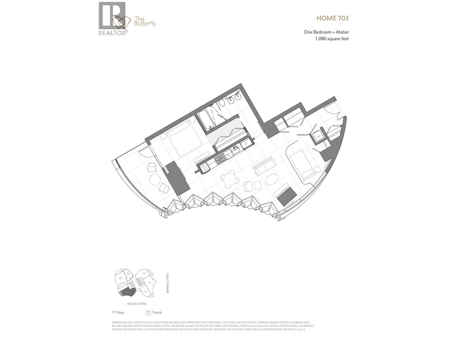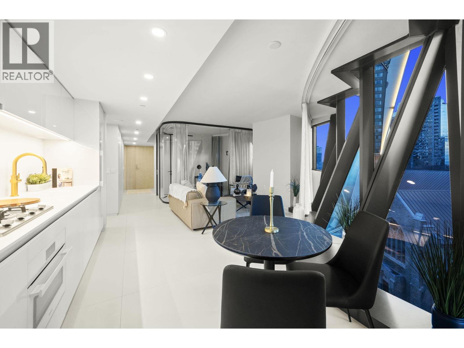 Welcome to The Butterfly by Bing Thom, one of Vancouver´s most architecturally significant landmarks. A rare opportunity to acquire an iconic downtown residence at exceptional value. At peak, comparable homes sold for up to $2,900 per sq ft. Now offered at approximately $1,196 per sq ft, over 50% below peak and below assessed value. This beautifully designed 2-bedroom home offers 1,086 square ft of airy living framed by sweeping curved glass and open city views. The layout flows effortlessly for both everyday living and entertaining, featuring a sleek Miele kitchen, spa-inspired bathroom, air conditioning, and thoughtful modern finishes throughout. Geothermal heating and world-class amenities including a 50m lap pool, gym, sauna, recreation centre, and 24-hour concierge elevate daily life. Just steps to English Bay, Stanley Park, Robson Street, cafés, dining, and transit, this is downtown living at its finest. (32327913)