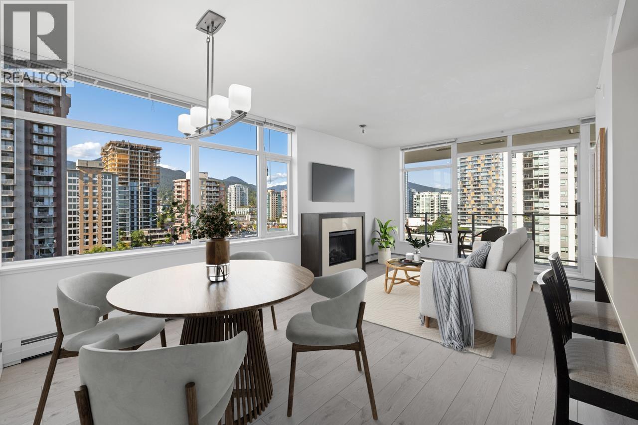 Bright + freshly painted 2-bedroom, 2-bath CORNER with 2 PARKING + large STORAGE locker, at sought after Vista Place. Great layout, private exposure, stunning mountain + city views. Featuring newer hard surface flooring, quartz counters, stainless appliances, cozy fireplace + in-suite laundry. Large windows fill the space with natural light throughout the day. Enjoy your morning coffee or yoga a sun-drenched, oversized balcony. Pet and rental friendly. Proactive strata, onsite building manager +~1.566m in CRF. The LEED Silver certified building offers top-tier amenities including fitness centre, guest suite, party room + bike storage. Best location in the heart of Central Lonsdale, just steps to WholeFoods, amazing restaurants, shops, parks, transit + top schools. OPEN SUN JAN 18, 2-4PM. (32328094)