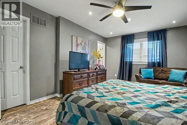 Bedroom with a ceiling fan, and recessed lighting