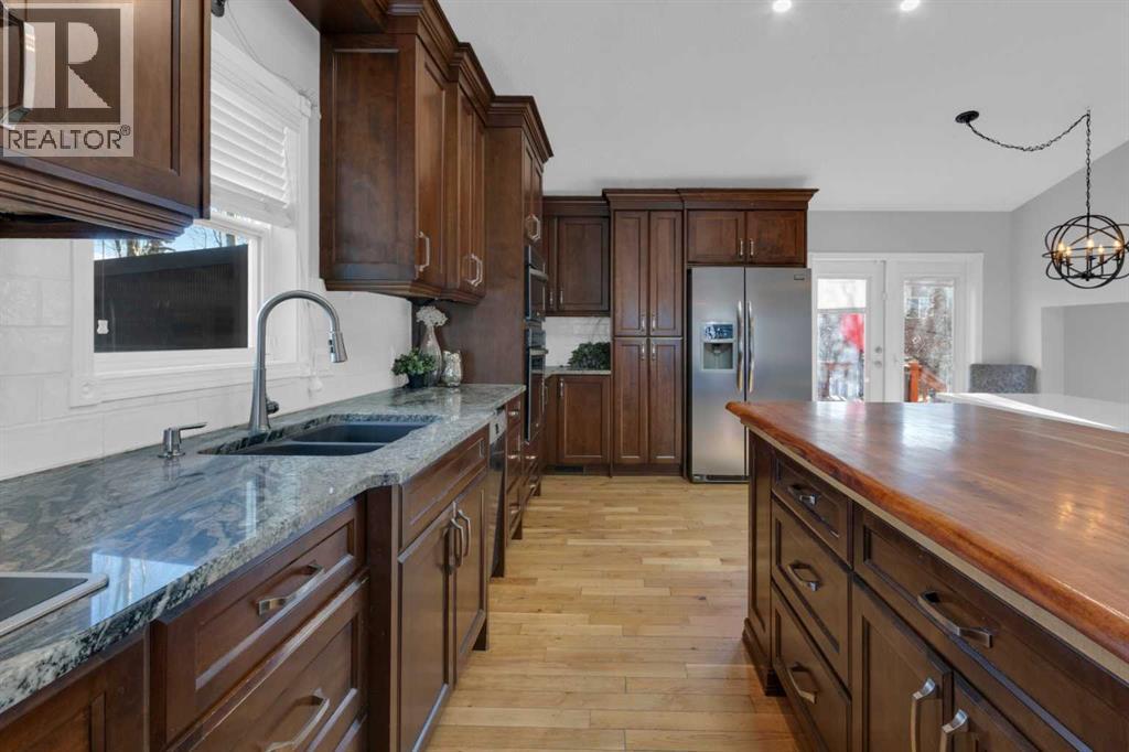 The appeal of this home begins the moment you arrive; a stamped concrete driveway leading to a heated double attached garage, HARDIE BOARD SIDING and a sprawling 0.16 acre, well-appointed lot complete with a separate BACKYARD WORKSHOP. The outdoor space is truly exceptional, featuring a large deck with gazebo, mature trees and landscaping, RV parking, a permitted chicken coop, and a beautiful new HOT TUB (2024) set on a stamped concrete patio—perfect for relaxing or entertaining.Step inside to a spacious and thoughtfully updated four-level split designed to comfortably accommodate family life. The main floor makes an immediate impression with a stunning custom kitchen by Layne Kitchens and Design. No expense was spared, with granite counters, built-in ovens, an induction cooktop, a massive island, and elegant cabinetry with convenient sliding storage features. A bright front living area with SOARING CEILINGS and a generous dining space complete this level.Just a few steps down, you’ll find a cozy living room centred around a feature GAS FIREPLACE with built-in shelving on both sides, along with a convenient half bath, laundry area, and direct access to the attached garage. The lower level offers a comfortable family room, a full bathroom, and a fourth bedroom, plus an impressive storage area that also houses the new furnace (2025).Upstairs, the home continues to impress with two bright secondary bedrooms, a recently renovated five-piece main bath, and a spacious primary retreat featuring a newly updated three-piece ensuite and walk-in closet.This home is also loaded with MODERN TECHNOLOGY including app-based lighting (with kid-friendly graphics in the secondary bedrooms), app-controlled thermostat and front blinds, a high-end Telus security system inside and out, and even an app to help keep the chickens happy.With exceptional indoor and outdoor spaces, thoughtful updates, and standout features throughout, this home truly must be seen to be appreciated. (31527844)