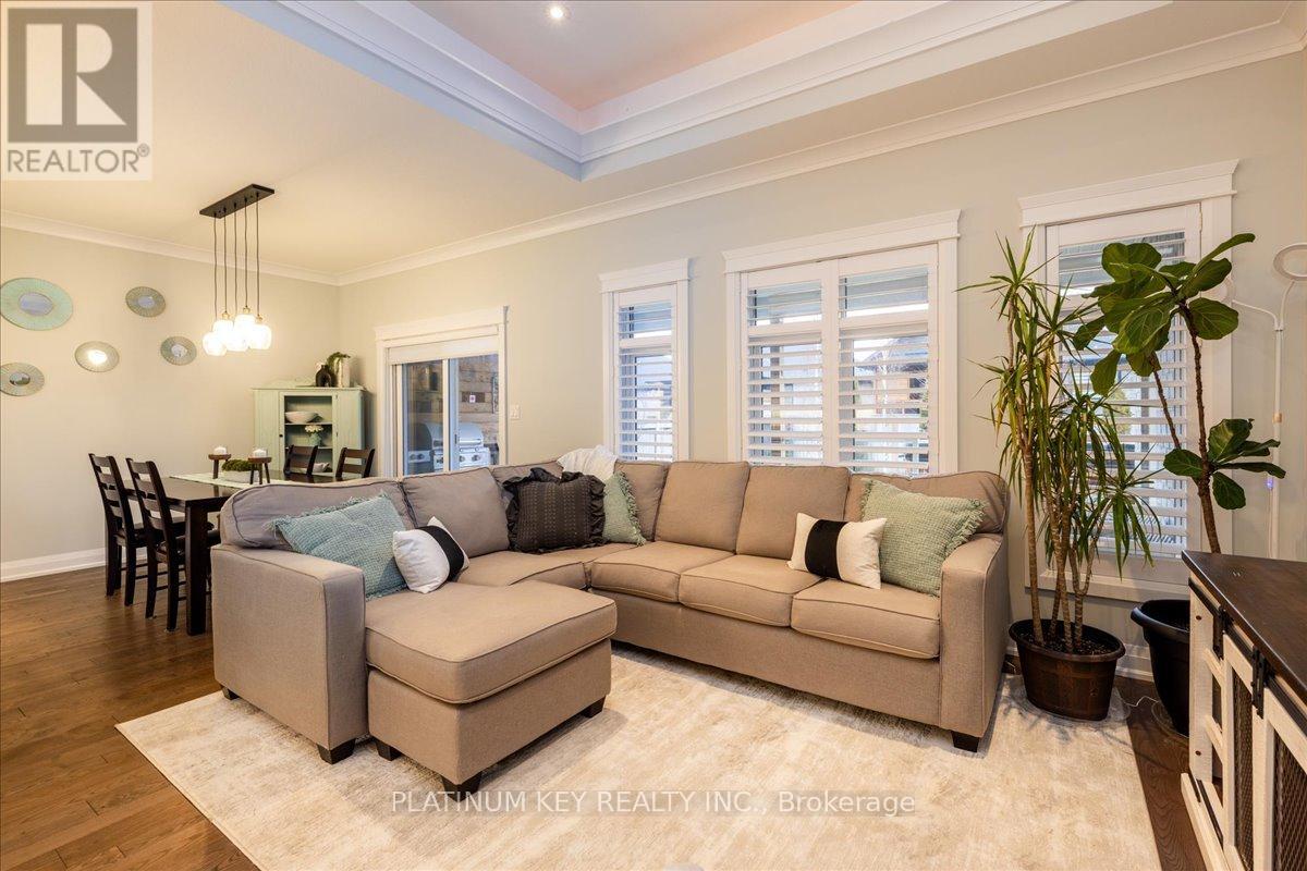 Located in the Southgrove Meadows subdivision in Strathroy, adjacent to Caradoc Sands Golf Club, this exceptional 2+1 bedroom Bungalow with 3 full bathrooms offers an ideal blend of luxury, space, and convenience. The open-concept main floor features a bright living room with tray ceiling, a spacious dining area with patio door access to the covered 24' x 12' deck, and a beautiful kitchen with large centre island and tile backsplash. The extended primary bedroom is a true retreat, showcasing a tray ceiling, gas fireplace, private access to the covered deck and swim spa, a stunning 5-piece ensuite with soaker tub and glass-enclosed tiled shower, and a walk-in closet accessed through the ensuite. A bright second bedroom, 3-piece main bath, and laundry room with garage access complete the main level. The fully renovated lower level (2023) offers an impressive rec room with wet bar, dedicated gym, additional bedroom, 3-piece bath, bedroom, and abundant storage throughout. Outside, enjoy a fully landscaped, private, and fenced yard with mature trees, gas hookups for a fire table and natural gas BBQ, and a peaceful setting perfect for entertaining or relaxing. Built by Dwyer Homes in 2018, this home is ideally located close to schools, shopping, and amenities, with easy access to Highway 402 and an easy commute to London. (41943595)