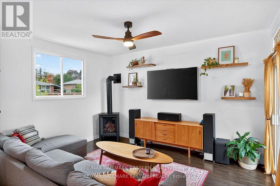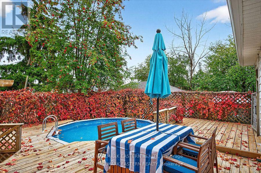 Experience the ultimate in urban convenience in this impeccably renovated 3-bedroom, 2-bath residence, perfectly positioned on a quiet cul-de-sac just steps from the Peterborough Regional Health Centre. This move-in-ready gem offers an unrivaled central location with seamless access to the entire city, placing shopping, the Kinsmen Centre, and local water parks within easy walking distance. The heart of the home is an expansive, sun-drenched main floor family and dining room addition, featuring a cozy Friendly Fires gas fireplace and a seamless walkout to a massive private deck. Your fully fenced backyard oasis is lined with mature trees for ultimate privacy and comes complete with an above-ground pool and a soothing hot tub designed for effortless entertaining. Exceptional pride of ownership is evident in the recent premium upgrades, including stunning hardwood flooring, energy-efficient spray foam insulation, and a newly paved oversized driveway with parking for five-plus vehicles. Complemented by a versatile detached shed/workshop, this sophisticated property represents a rare opportunity for discerning buyers seeking a high-demand hospital-area hub with total connectivity to all amenities. (41943663)