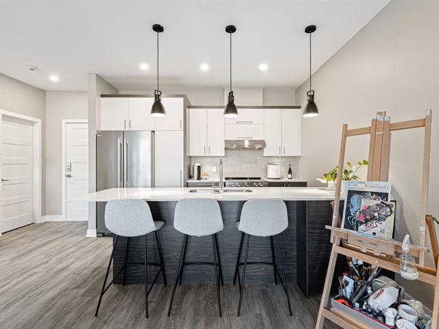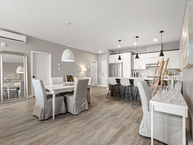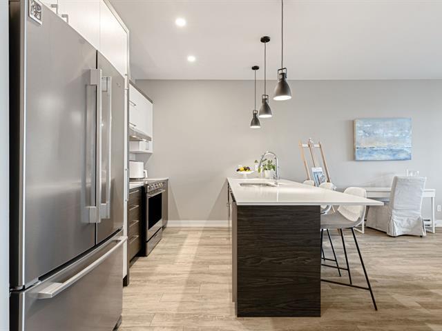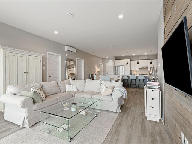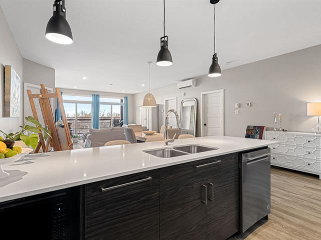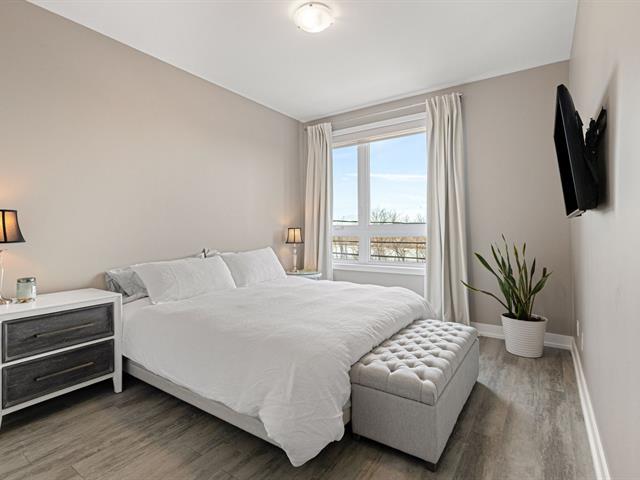 À qui la chance ! Superbe copropriété offrant une vue spectaculaire sur le fleuve et la ville de Montréal. D'une superficie de 1 190 pi² (plafond de 9 pieds), cette unité se distingue par sa construction de qualité supérieure et sa vaste aire ouverte baignée de lumière naturelle. Porte-patio à double largeur menant à un grand balcon vitré. Deux grandes chambres, dont la principale avec walk-in, salle de lavage indépendante. Aspirateur central, thermopompe murale, électroménagers inclus. Ascenseur, rangement privé et un espace de stationnement au garage. Propriété rare et très recherchée à Ville Sainte-Catherine. Une visite s'impose ! (40573500)
