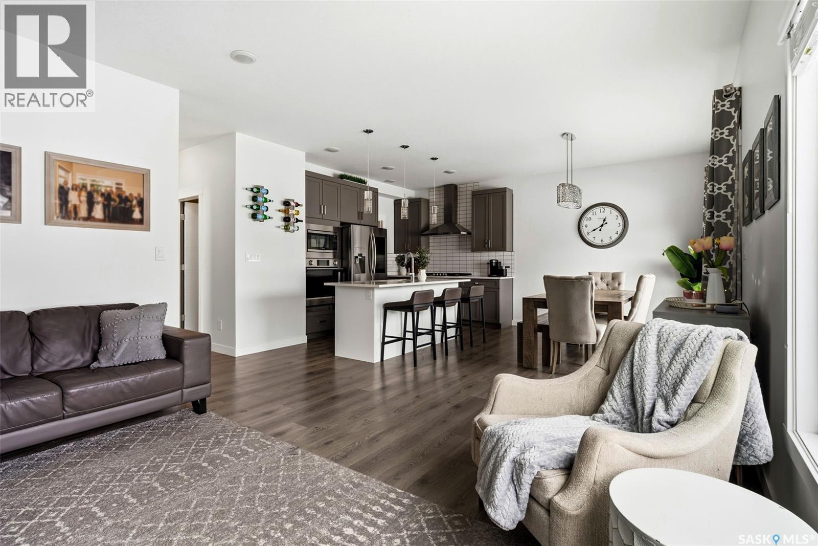 Welcome to 5424 Boyer Bay, a beautifully maintained, move in ready home tucked away on a quiet bay in the highly desirable Greens on Gardiner neighbourhood. From the moment you enter, you are welcomed by a spacious foyer and mudroom offering exceptional storage and functionality, perfectly designed for busy households and Saskatchewan seasons. The main floor opens to a stunning kitchen featuring stainless steel appliances, built in oven, gas stove, abundant cabinetry, and a large pantry for optimal storage. The adjacent living room features natural light from oversized windows and showcases a cozy electric fireplace, creating an inviting space for relaxing or entertaining. A convenient two piece powder room completes this level. Upstairs, you will find four well appointed bedrooms and two full bathrooms. The spacious primary suite is a true retreat, featuring a generous walk in closet and a four piece ensuite complete with double sinks. A dedicated second floor laundry room adds everyday convenience and thoughtful design. The fully finished basement provides excellent additional living space, including a beautiful recreation room complete with built-in speakers, a charming child’s playhouse, and a three piece bathroom with a stunning tiled shower. A stylish bar area makes this basement space ideal for entertaining. (kegerator negotiable) The fully insulated and heated double attached garage offers year round comfort and practicality. Outside, enjoy a large, meticulously manicured yard complete with underground sprinklers and a spacious maintenance free composite deck, perfect for outdoor gatherings and relaxation! Ideally located on a quiet bay in Greens on Gardiner, this home is close to parks, schools, walking paths, and all amenities. With its thoughtful layout, quality finishes, and prime location, 5424 Boyer Bay is sure to impress. Form 917 in effect. Offers to be reviewed January 18th at 5pm. As per the Seller’s direction, all offers will be presented on 01/18/2026 5:00PM. (29276393)