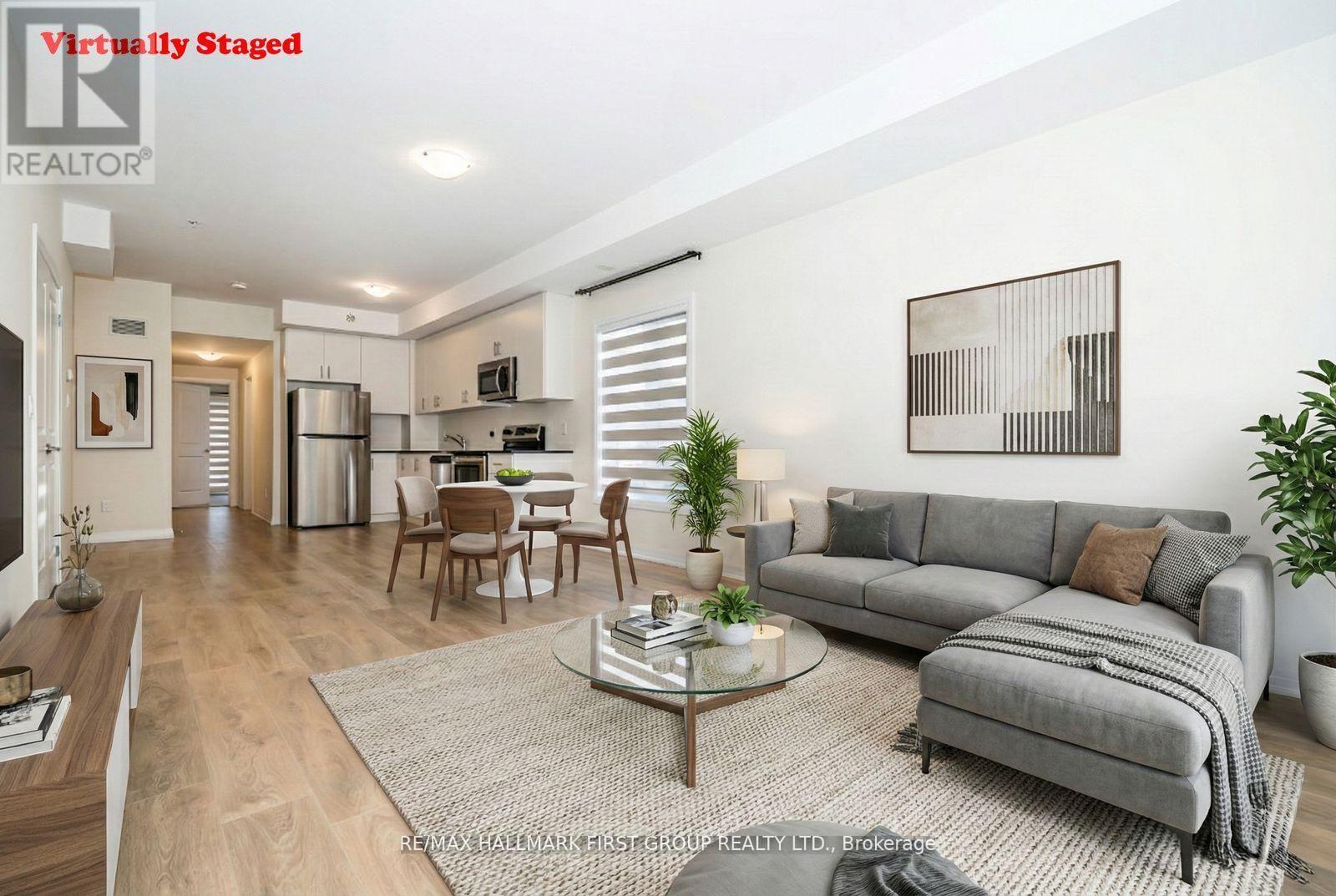 Welcome to this beautifully upgraded 2-bed, + Den, 2-bath ground-floor unit stacked townhouse offering the perfect blend of comfort and convenience! Enjoy a bright open-concept layout, 9ft ceilings, and large windows that fill the home with natural light. The modern kitchen features granite counter tops, stainless steel appliances, breakfast bar & ample cabinetry - perect for entertaining. The spacious primary bedroom includes a 4-piece ensuite, while the second bedroom offers walk-out access to a private back yard patio-ideal for summer relaxation. Laminate flooring throughout the kitcxhen and dining makes maintenance easy. This home includes dedicated parking, ensuite laundry, and energy-efficient systems. Located in a highly desirable family-friendly community - Steps from parks, golf course, top-rated schools, transit, places of worship, sports facilities, and community centres. Minutes to Hwy 407/401, Durham Transit, GO Station. Main Plaza shops on Brock Rd., dining, medical services & more. (41945015)