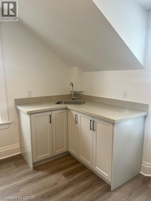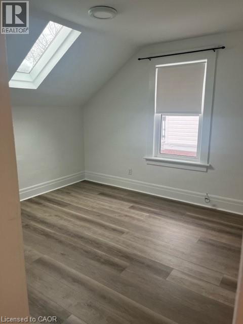 Beautifully renovated 2 bedroom upper unit in this legal non-conforming duplex, conveniently located in Downtown Kitchener! Completely updated with bright tasteful kitchen featuring granite counters and newer appliances, in suite laundry, new luxury vinyl plank flooring throughout (carpet free!), 2 bedrooms and living room with skylight. Updated 4 piece bathroom! Large covered front porch (exclusive use). 2 parking spots! Unfinished attic is great for additional storage space. Tenant pays hydro. Very conveniently located within walking distance to LRT and shopping. March 15 possession date available. Great for single young professional! Safe neighbourhood. (70047808)
