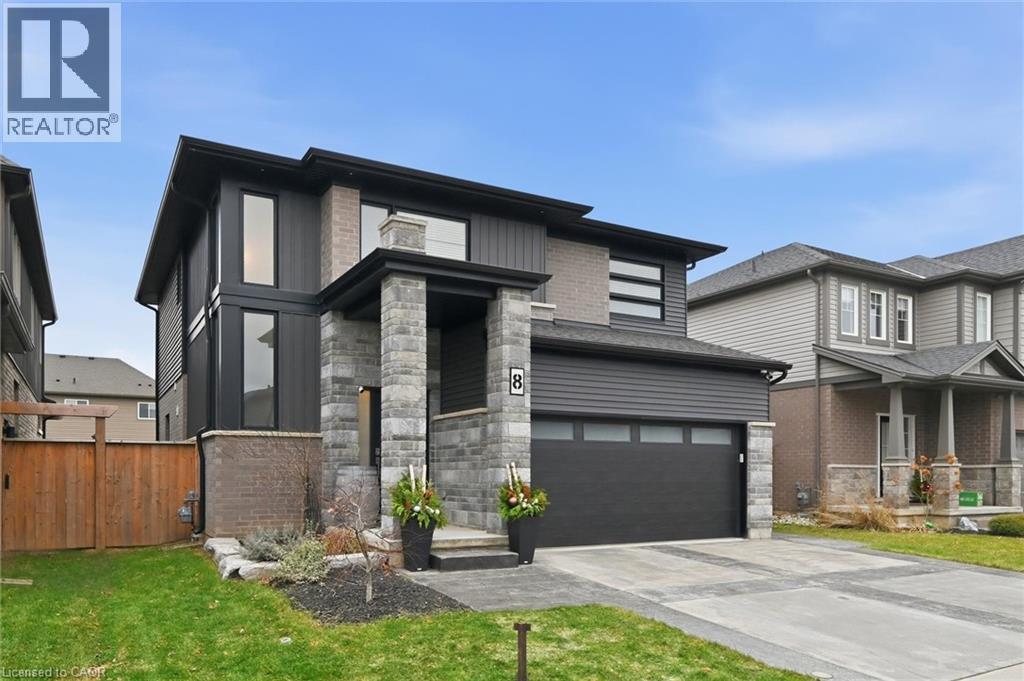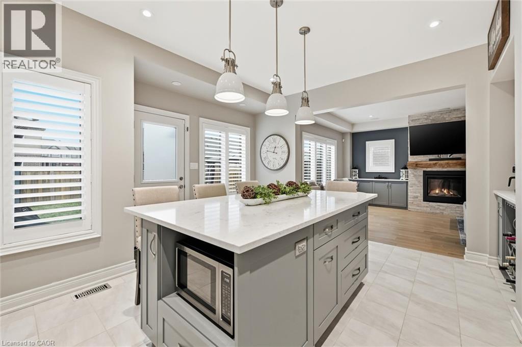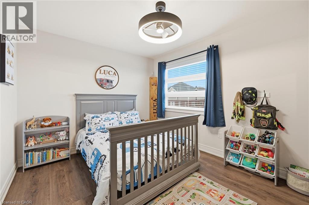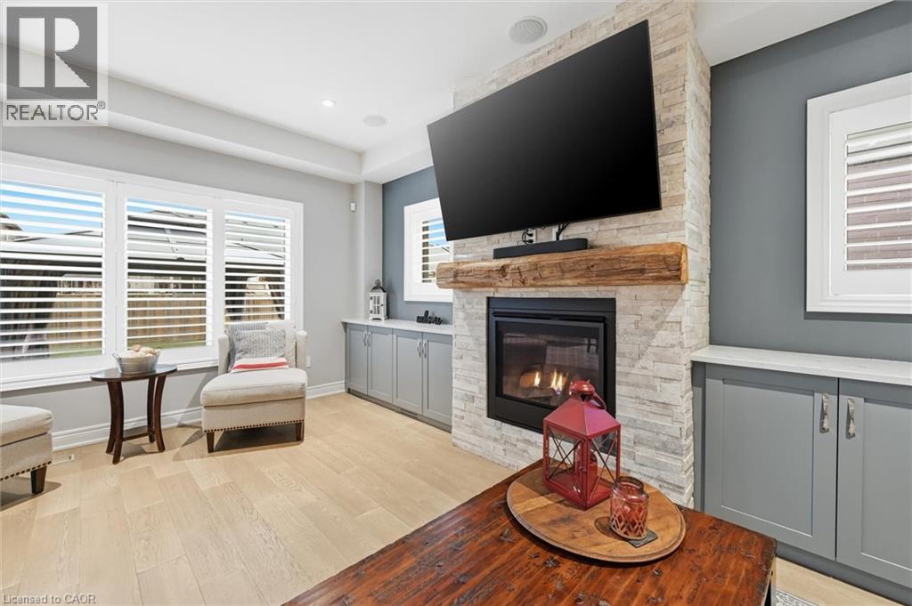 Exquisitely built in 2020 by Mountainview Homes, this beautifully upgraded residence is nestled in the prestigious, family-oriented Saffron Estates community of Fonthill. Offering approx. 1,869 sq. ft. of elegant above-grade living space plus an approx. 782 sq. ft. unfinished basement, this 4-bedroom, 3-bath home showcases thoughtful design and exceptional craftsmanship throughout. The open-concept main floor features 9’ ceilings, engineered hardwood flooring, integrated ceiling speakers, and a stunning stone-clad natural gas fireplace with a custom hearth and antique wood mantel insert, framed by bespoke cabinetry with quartz countertops. The refined kitchen is highlighted by an oversized quartz island, custom coffee and wine bar, tile flooring, and seamless access to the backyard. The primary suite is a true retreat with his and hers walk-in closets and a spa-inspired 5-piece ensuite featuring double sinks, a glass shower, and a freestanding soaker tub. A rare second-floor laundry adds everyday convenience. Fully wired for Google Home, the home includes an alarm system, surge-protected electrical panel, sump pump tied to the alarm, gas hookups for BBQ and garage, and a 40-amp garage sub-panel. Exterior features include soffit pot lights, stamped concrete driveway, walkways and patio (reinforced for hot tub), gazebo, fully fenced yard, and shed on a concrete pad. Ideally located near parks, trails, Meridian Community Centre, and the charm of downtown Fonthill, this is refined Niagara living at its finest. (70047645)