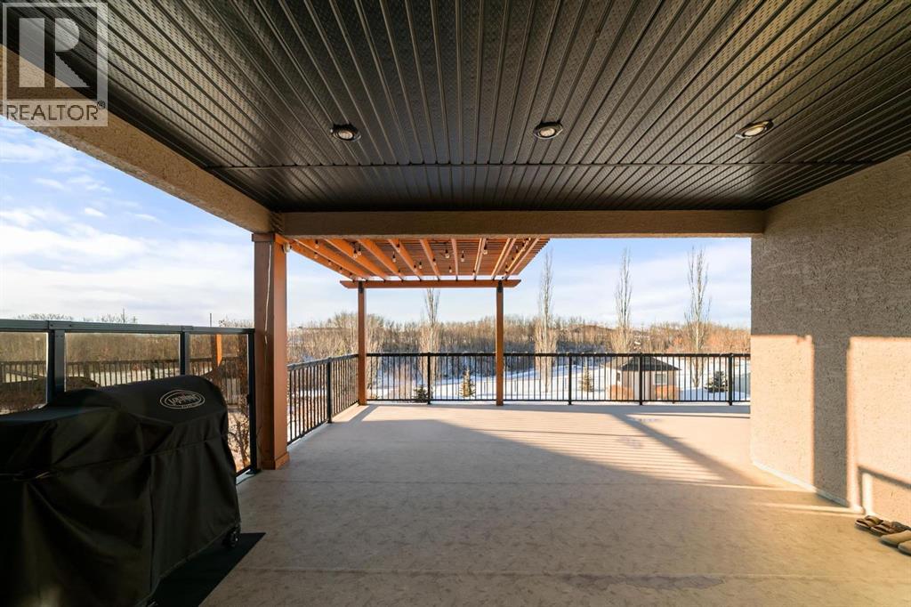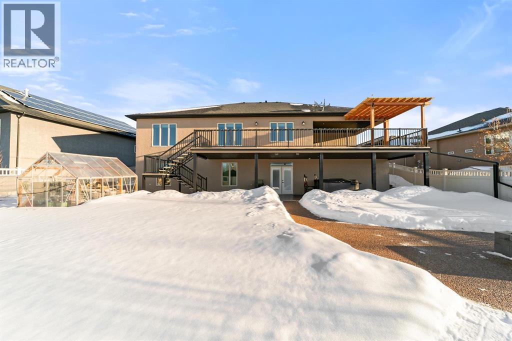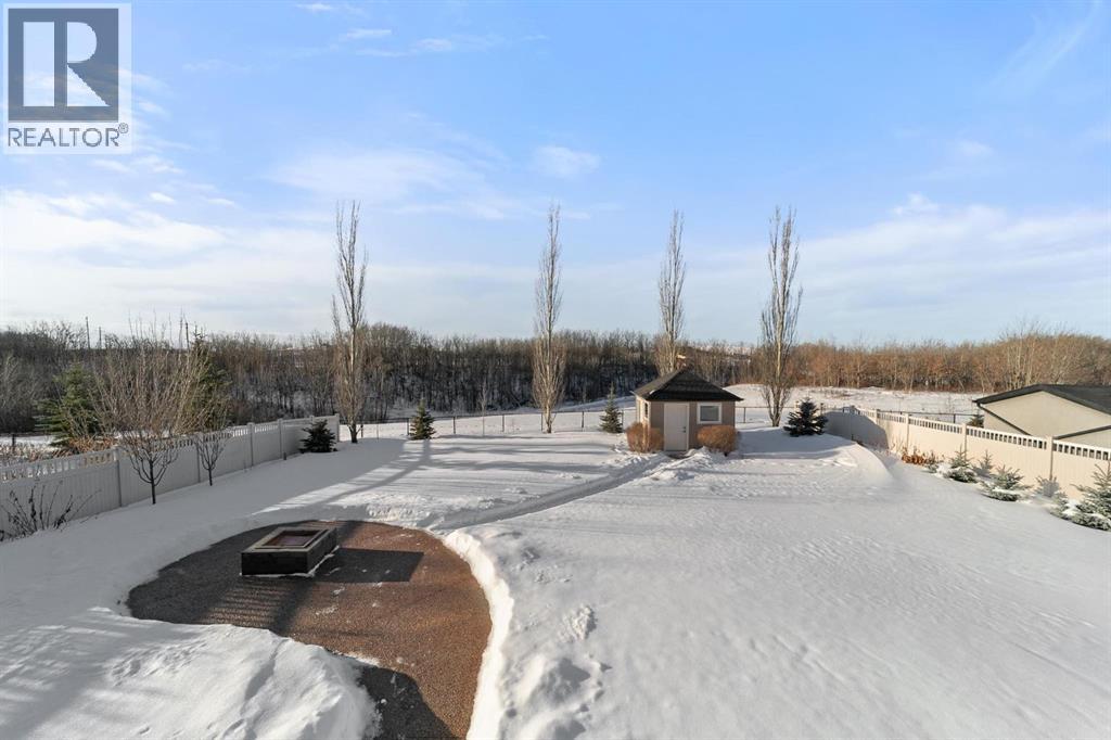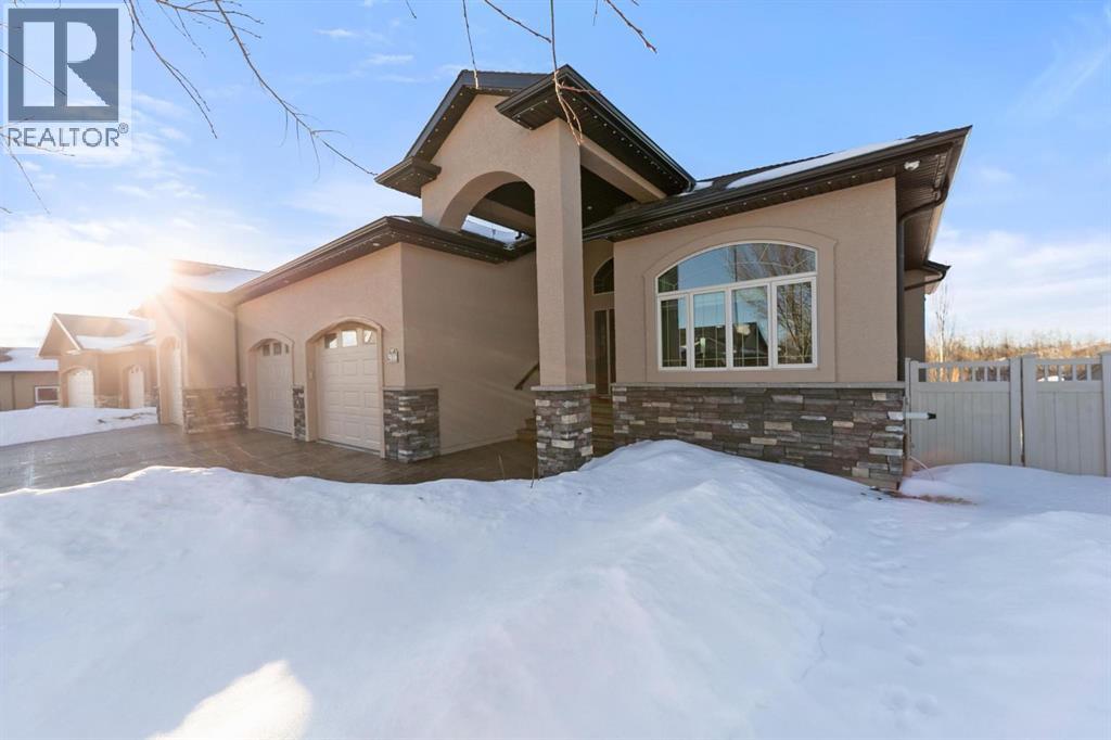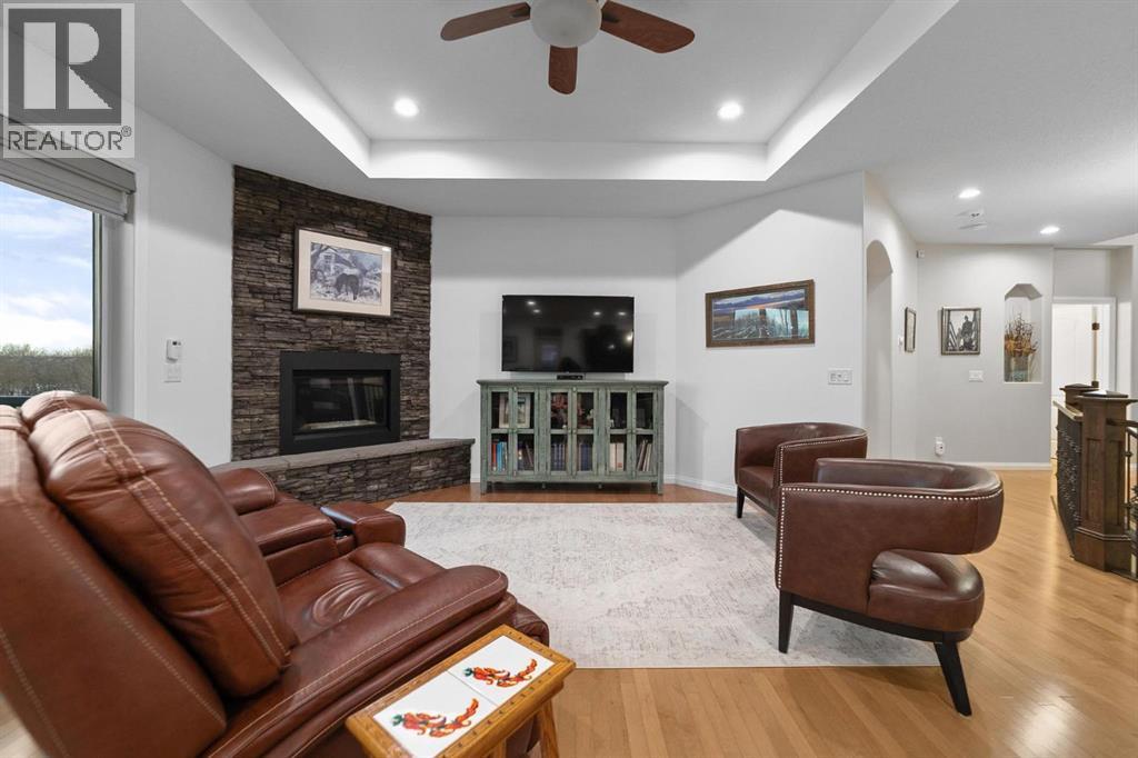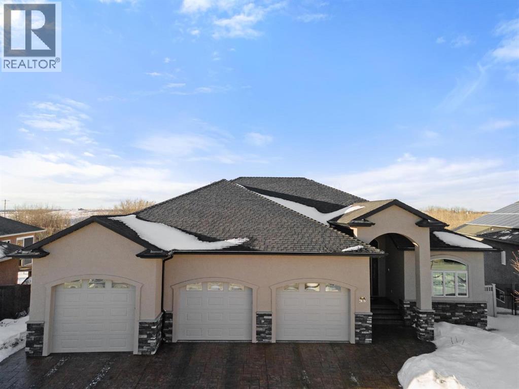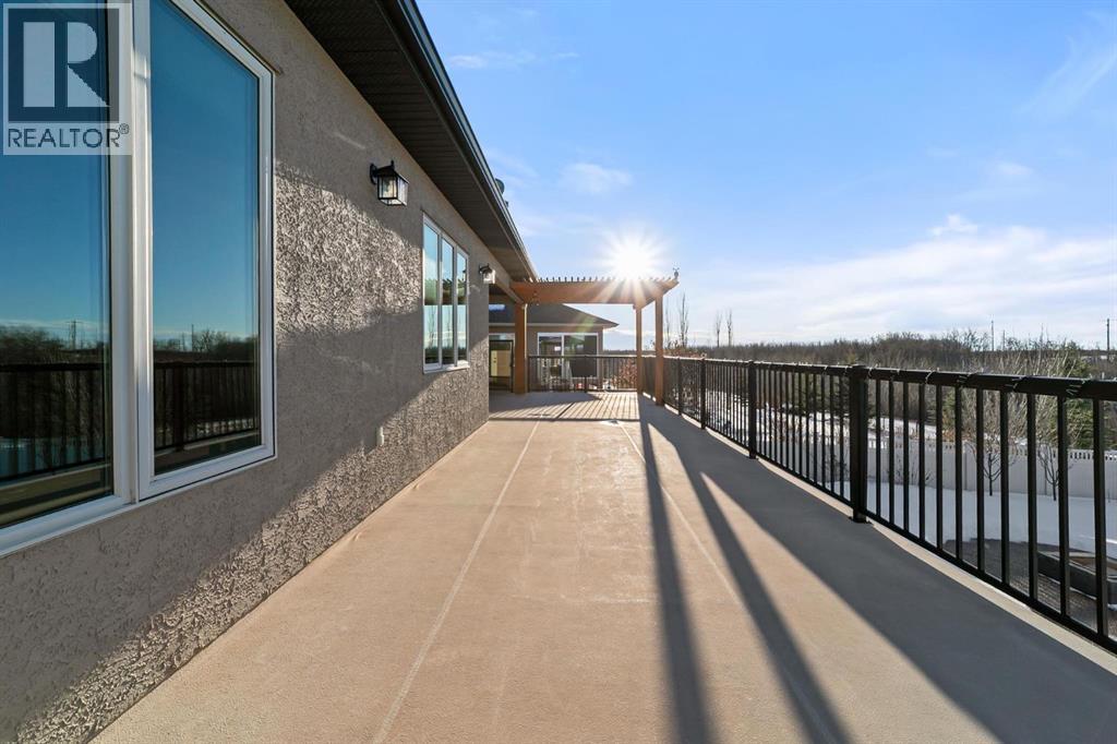 Experience unmatched views and exceptional craftsmanship in this stunning custom-built walkout bungalow, perfectly positioned in Valleyview overlooking the breathtaking valley landscape. Offering 3 bedrooms, 3 bathrooms, this home blends elegance, comfort, and thoughtful design across a bright, open-concept floor plan. Expansive windows flood the space with natural light—complemented by coffered ceilings, motorized blinds, and rich hardwood flooring. The impressive great room showcases a striking stone fireplace and open staircase framing panoramic views. The chef-inspired kitchen features granite countertops, a large entertaining island, 36” gas cooktop, built-in oven and microwave, and a spacious walk-in pantry. The adjoining dining space extends to a wrap-around covered deck, offering year-round enjoyment and remarkable valley scenery. The luxurious primary suite is a private retreat complete with spa-style ensuite and walk-in closet, with main-floor laundry and air conditioning adding everyday convenience. The fully finished walkout basement is designed for living and entertaining—featuring in-floor heat, a generous media/games area, additional bedroom and den, and a second stone fireplace. Step outside onto the covered patio with hot tub and firepit, perfect for unwinding or hosting guests. Sitting on a beautifully landscaped oversized lot with full irrigation, greenhouse, and storage shed, this home also includes an oversized heated 4-car garage with epoxy flooring. Exterior CHIC Permanent Stucco Protection offers lasting peace of mind with warranty. A rare opportunity to own a premier walkout bungalow with incredible views, premium finishes, and every detail considered—welcome home. (31527479)