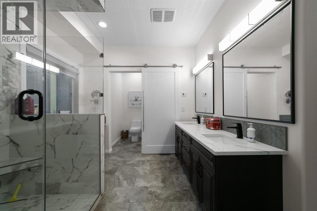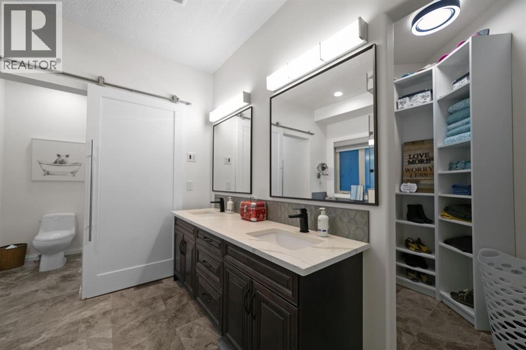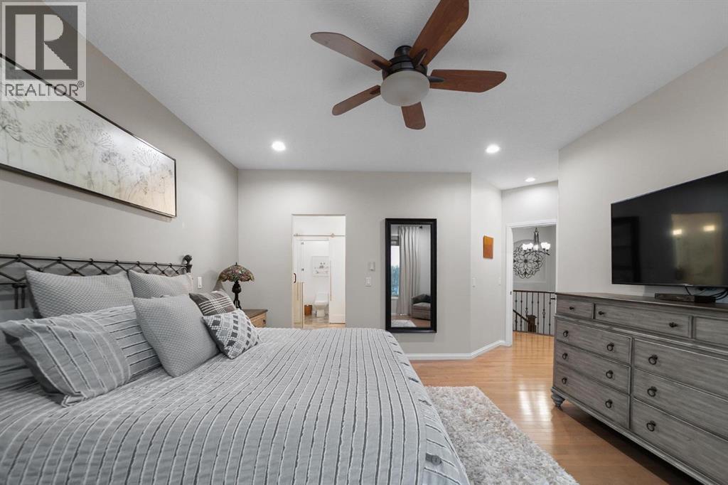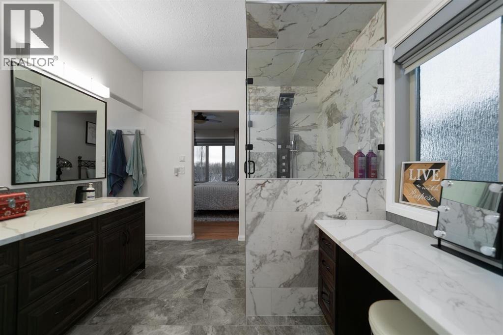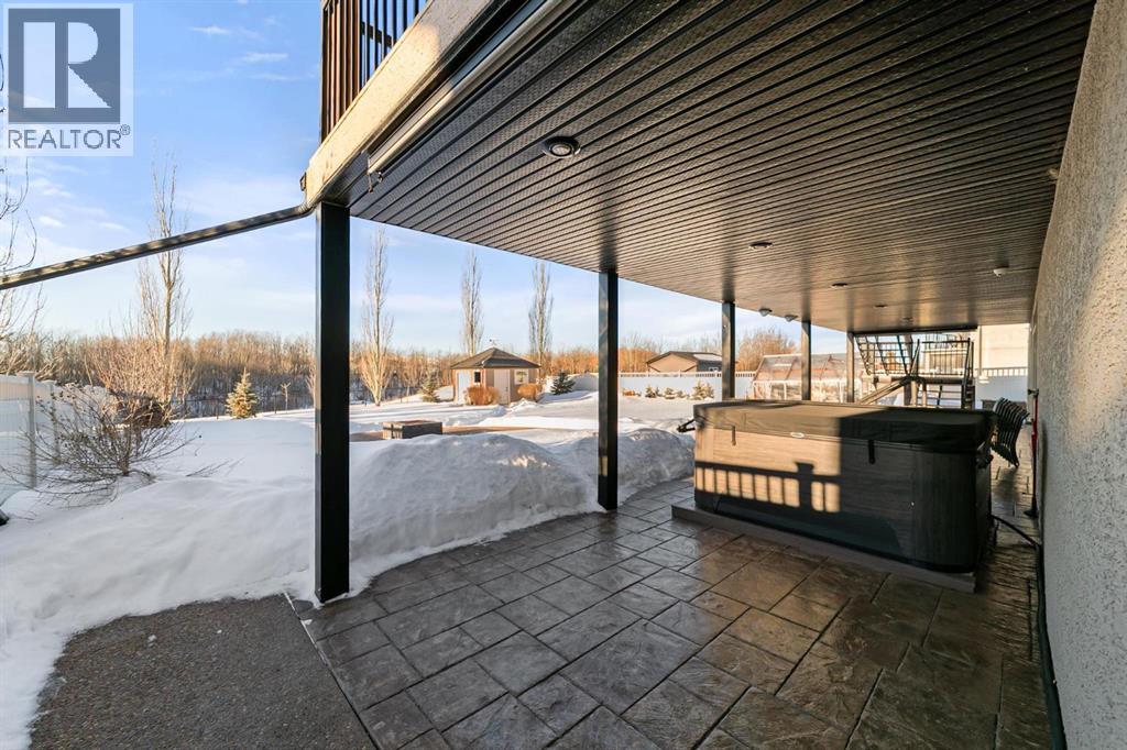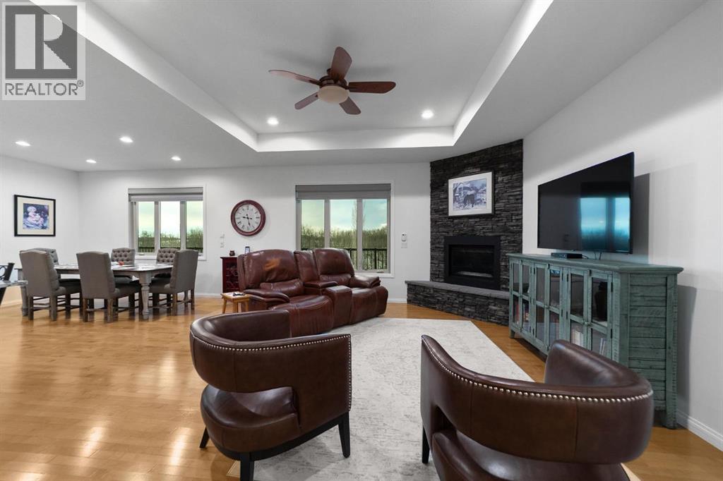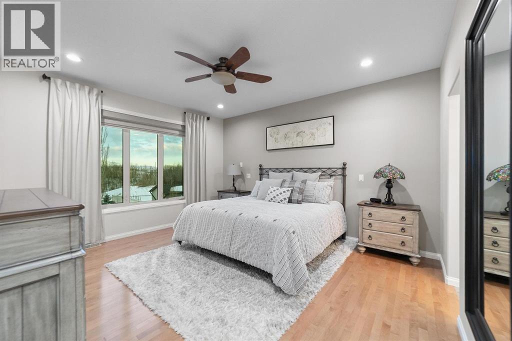 Experience unmatched views and exceptional craftsmanship in this stunning custom-built walkout bungalow, perfectly positioned in Valleyview overlooking the breathtaking valley landscape. Offering 3 bedrooms, 3 bathrooms, this home blends elegance, comfort, and thoughtful design across a bright, open-concept floor plan. Expansive windows flood the space with natural light—complemented by coffered ceilings, motorized blinds, and rich hardwood flooring. The impressive great room showcases a striking stone fireplace and open staircase framing panoramic views. The chef-inspired kitchen features granite countertops, a large entertaining island, 36” gas cooktop, built-in oven and microwave, and a spacious walk-in pantry. The adjoining dining space extends to a wrap-around covered deck, offering year-round enjoyment and remarkable valley scenery. The luxurious primary suite is a private retreat complete with spa-style ensuite and walk-in closet, with main-floor laundry and air conditioning adding everyday convenience. The fully finished walkout basement is designed for living and entertaining—featuring in-floor heat, a generous media/games area, additional bedroom and den, and a second stone fireplace. Step outside onto the covered patio with hot tub and firepit, perfect for unwinding or hosting guests. Sitting on a beautifully landscaped oversized lot with full irrigation, greenhouse, and storage shed, this home also includes an oversized heated 4-car garage with epoxy flooring. Exterior CHIC Permanent Stucco Protection offers lasting peace of mind with warranty. A rare opportunity to own a premier walkout bungalow with incredible views, premium finishes, and every detail considered—welcome home. (31527479)