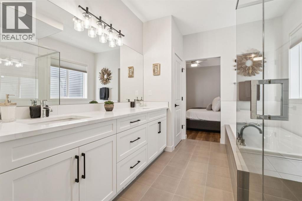 **OPEN HOUSE Saturday 12PM-3PM**Welcome to this stunning, FULLY FINISHED BUNGALOW built in 2024, offering QUALITY UPGRADES and a modern, functional layout designed for effortless living.The main floor features LUXURY VINYL PLANK FLOORING, a spacious foyer, and a generous PRIMARY RETREAT with a 5-PIECE ENSUITE. This spa-inspired space includes IN-FLOOR HEATING, QUARTZ COUNTERTOPS, DOUBLE UNDER-MOUNT SINKS, a TILED WALK-IN SHOWER with bench with glass surround, and a relaxing SOAKER TUB. The walk-in closet offers mdf shelving and a WASHER & DRYER making it convenient for everyday living. The OPEN-CONCEPT living area is perfect for entertaining, highlighted by a GAS FIREPLACE WITH MANTLE and a stylish kitchen featuring QUARTZ COUNTERTOPS, FULL-HEIGHT CABINETRY, SOFT-CLOSE DOORS & DRAWERS, and PULL-OUT GARBAGE & RECYCLING.The FULLY DEVELOPED BASEMENT offers HIGH CEILINGS, plush carpet, TWO ADDITIONAL BEDROOMS, a LARGE STORAGE AREA, and a beautifully finished bathroom with QUARTZ COUNTERTOP, UNDER-MOUNT SINK, TILE FLOORING, and a TUB/SHOWER COMBO.Additional upgrades include a 200-AMP ELECTRICAL PANEL and HOT WATER ON DEMAND.Step outside to enjoy the UPGRADED BACKYARD, featuring a FULL-WIDTH DECK, plus a PRIVATE HOT TUB and GAZEBO set on a CONCRETE PAD with PATIO STONES—perfect for relaxing or entertaining. Located in the desirable community of FIRESIDE, this home offers a PEACEFUL, LOW-MAINTENANCE LIFESTYLE ideal for COUPLES, DOWNSIZERS, and those seeking a more RELAXED PACE. With WALKABLE PATHWAYS, PARKS, nearby SHOPS & AMENITIES, and EASY ACCESS to major routes, Fireside blends comfort, convenience, and community, making it a wonderful place to call home. (31525720)
