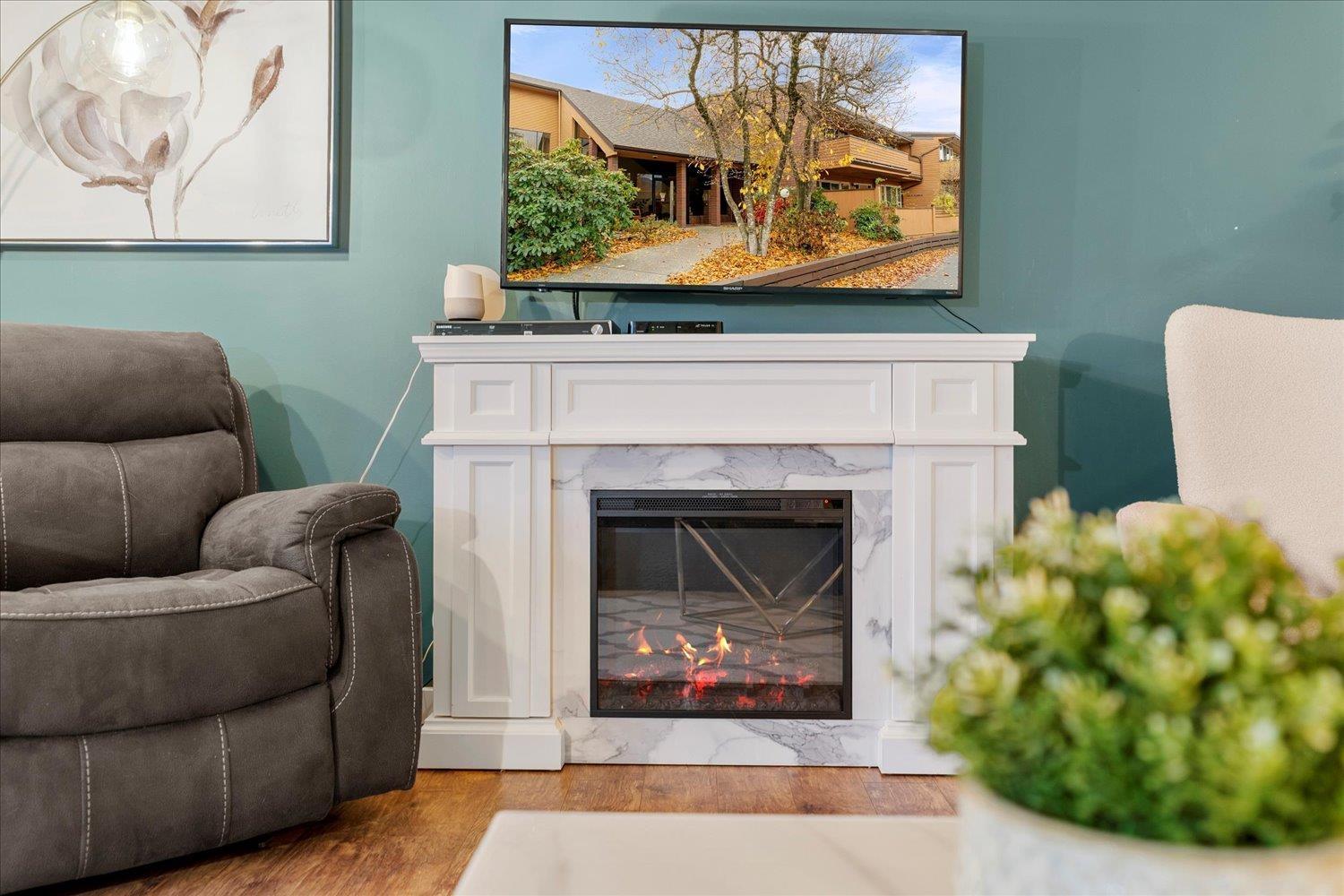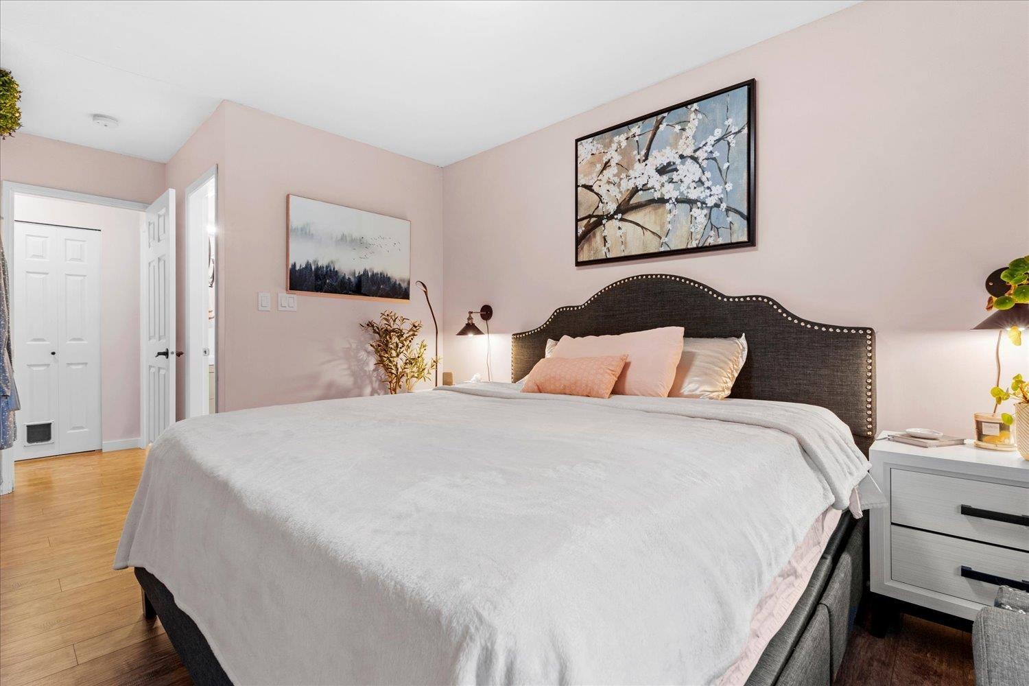 Move-in ready TOP FLOOR 2 bed, 2 bath condo with EXTENSIVE PROFESSIONAL UPDATES throughout. This bright & spacious home offers vaulted ceilings, a renovated kitchen with quartz countertops & stainless steel appliances, updated spa like bathrooms, and a BUILT IN AIR CONDITIONING UNIT system for year-round comfort. The primary bedroom features MOUNT CHEAM VIEWS with a 2-piece ensuite, while the second bedroom is ideal for guests or a home office. Step onto your private balcony overlooking the peaceful STRATA GREENSPACE for gardening & great for pets! Conveniently located close to parks, shopping, and transit. A great opportunity for first-time buyers looking for a stylish, low-maintenance home in a fantastic location. This one is a MUST VIEW TODAY! * PREC - Personal Real Estate Corporation (32329839)