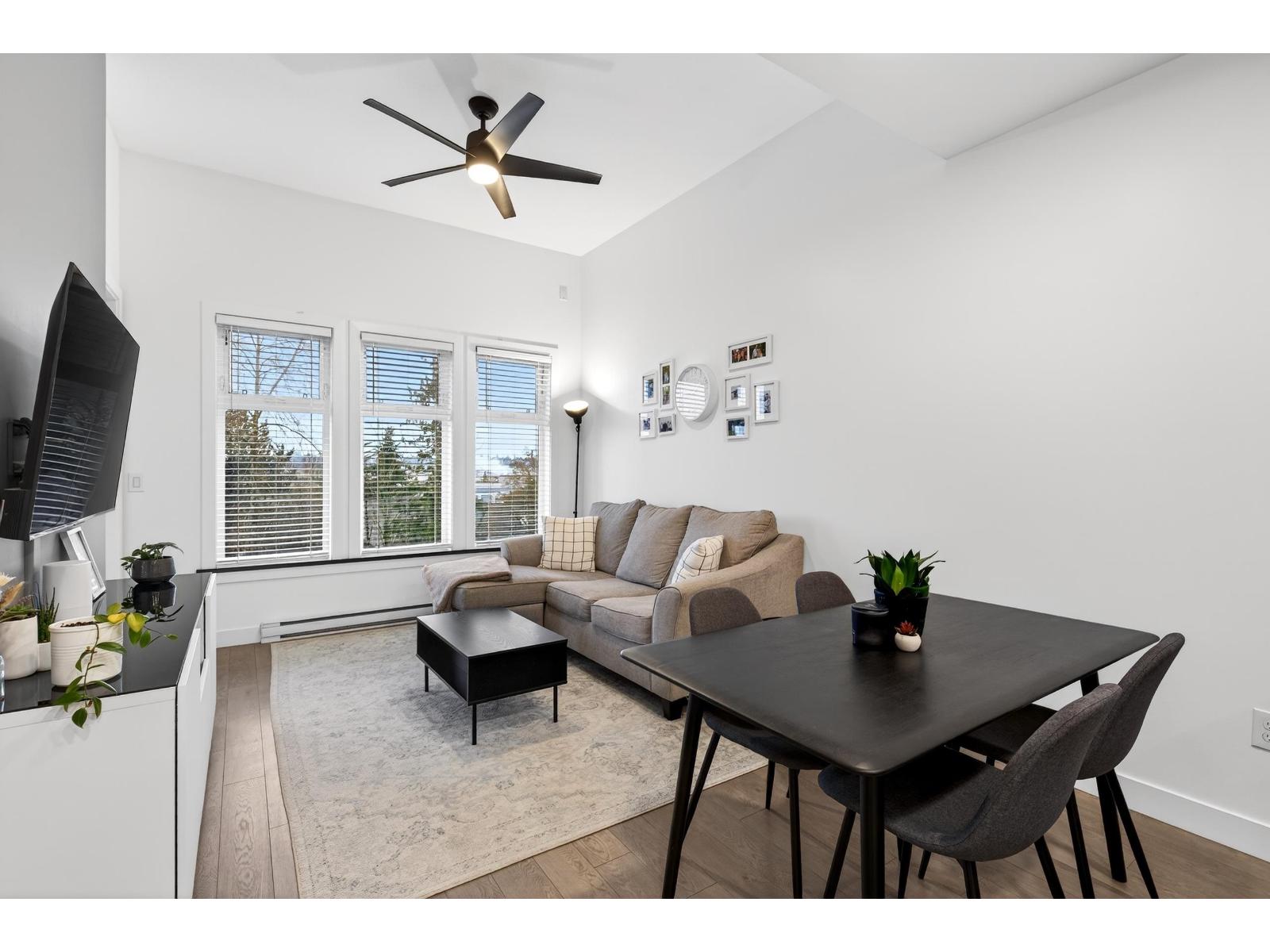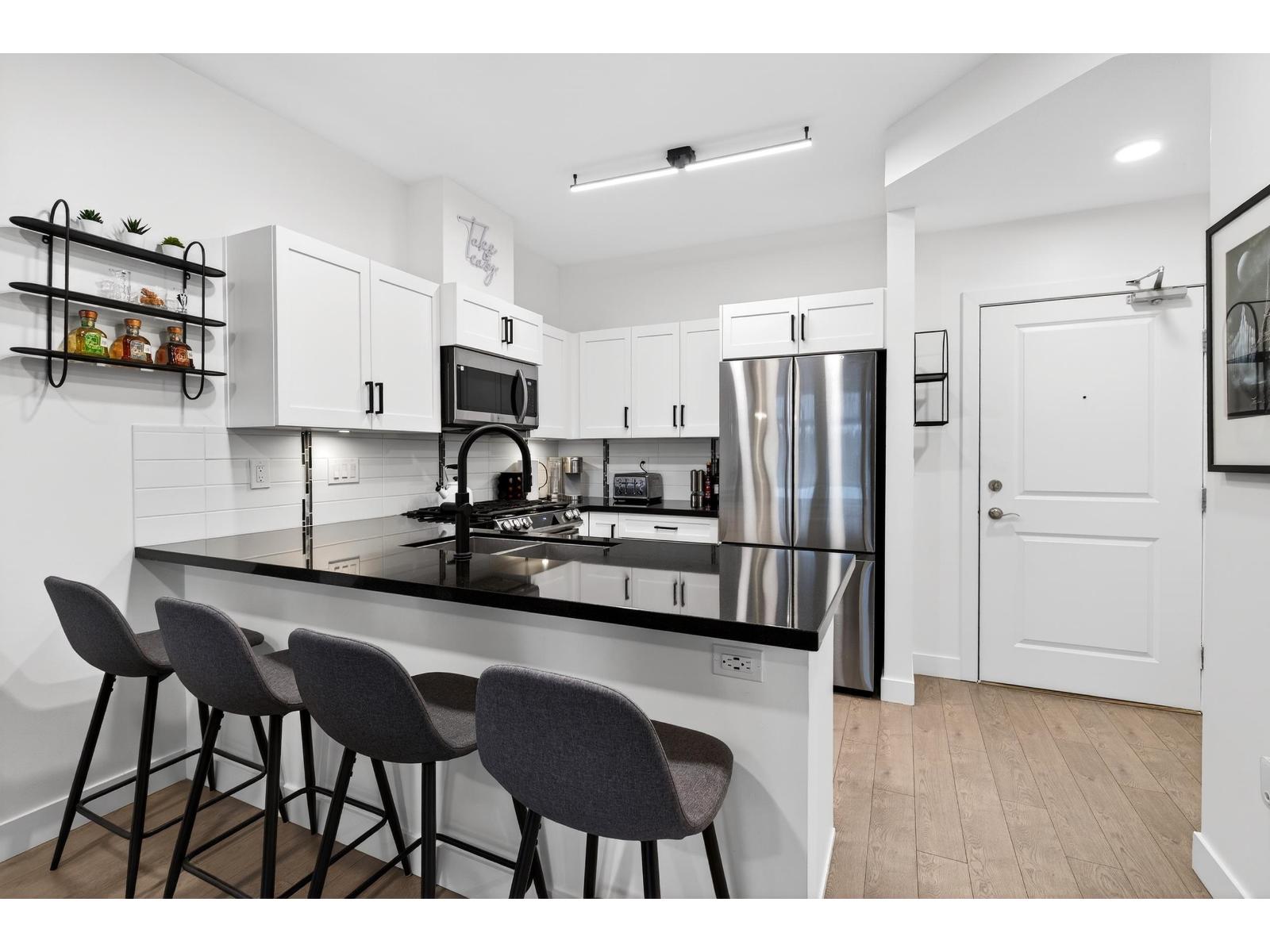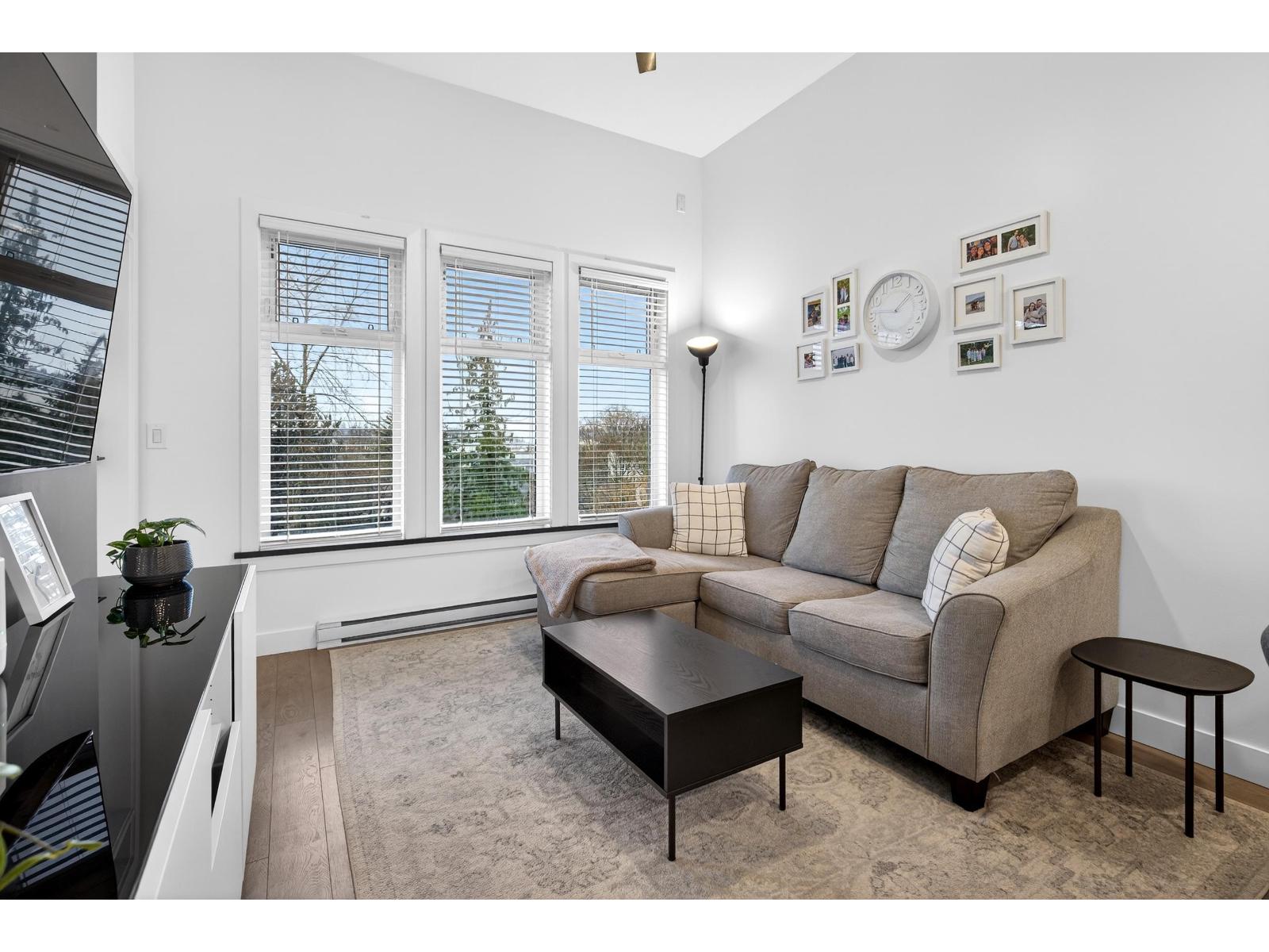 Stunning TOP FLOOR home in the highly sought-after Varsity, overlooking greenery and the North Shore mountains with beautiful sunset VIEWS. This bright, open-concept unit features vaulted ceilings, oversized windows, an updated kitchen, brand-new washer & dryer, plus all new interior doors throughout. The spacious bedroom offers a walk-through closet and cheater ensuite, an ideal one-bedroom layout. Enjoy your private balcony with gas hookup, perfect for year-round use. Unbeatable location near the future Surrey-Langley SkyTrain extension, and just steps to Willowbrook Shopping Centre, transit, restaurants, schools, and daily conveniences. Pet-friendly (2 dogs or cats, no size restriction). Includes 1 underground parking stall and 1 storage locker. Call now to view! (32329885)