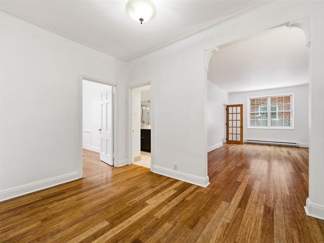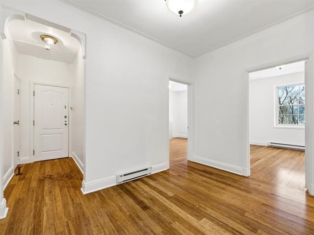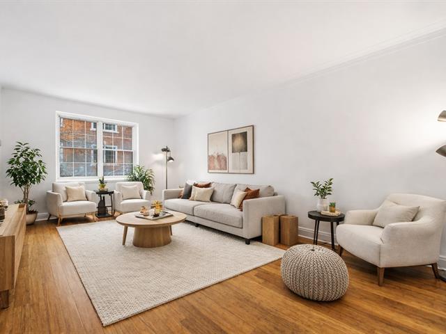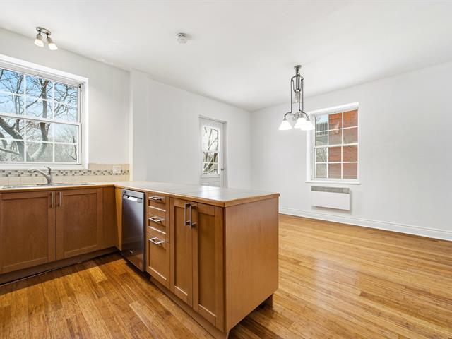 Bright corner unit offering views of Mount Royal. This two-bedroom apartment features generous living spaces with multiple layout possibilities, abundant natural light, and hardwood flooring. Prime location - at the edge of Westmount, at the foot of Mount Royal, and within close proximity to downtown, major universities, shops, renowned hospitals, and public transit. A private balcony off the kitchen and a storage space complete the offering. An enviable address where every convenience is within walking distance, ensuring an exceptional urban lifestyle. (41507114)