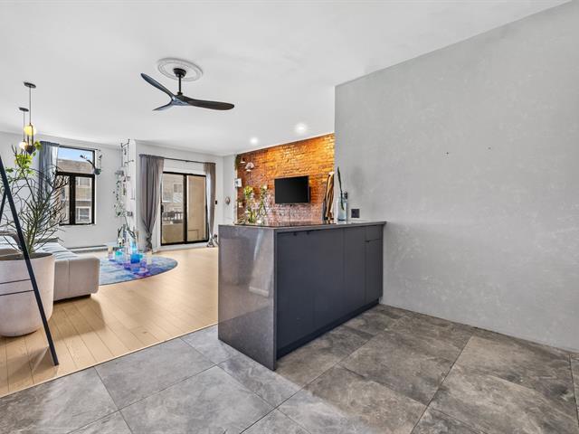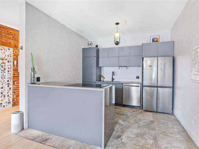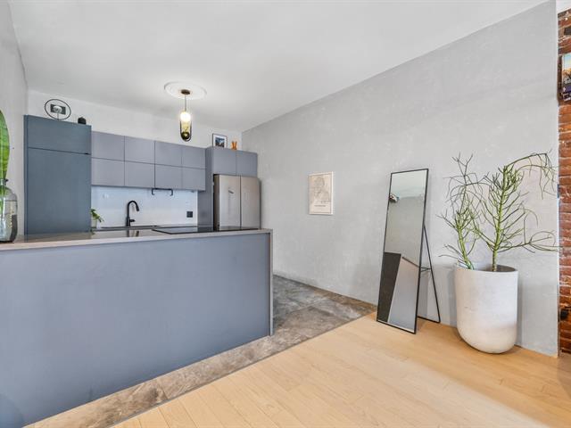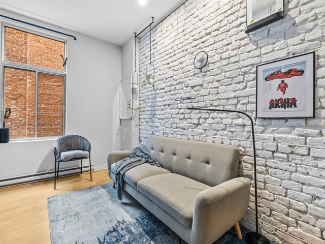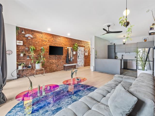 A guaranteed favorite! Rare find on the market, this superb 870 sq ft divided condo is located in the heart of Hochelaga-Maisonneuve (HOMA). This spacious and bright, fully furnished unit showcases beautiful original brick walls and offers a large bedroom with a sitting area, a completely renovated bathroom, a modern kitchen with an island--perfect for entertaining--and a large living and dining room. A sought-after location just steps from Ontario Street, the Olympic Stadium, parks, cafes, restaurants, and the Joliette metro station. A must-see gem! (47890727)