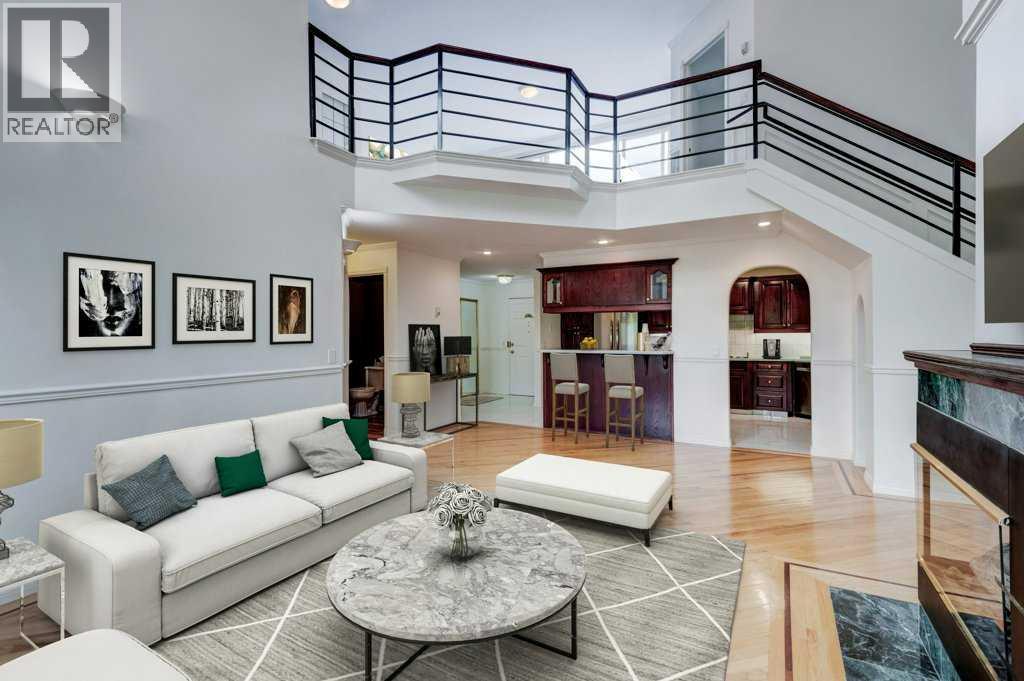 Welcome to a truly one-of-a-kind, New York-style walk-up penthouse located in the highly desirable inner-city community of Windsor Park—just steps from Chinook Mall, transit, and minutes from downtown Calgary. Boasting over 2,000 sq ft of luxurious living space across two stunning levels, this updated home combines architectural elegance, thoughtful design, and unmatched outdoor space. Inside, you're greeted by soaring vaulted ceilings, expansive windows, and an open-concept layout drenched in natural light. The gourmet kitchen is a chef’s dream, featuring custom oak cabinetry, newer stainless steel appliances, a built-in gas range, and an eat-up breakfast bar—perfect for casual dining or entertaining. Rich hardwood floors with intricate Purple Heart inlay add a sophisticated touch. The spacious living room includes a built-in entertainment unit and a three-sided gas fireplace that seamlessly connects to the formal dining area. Your primary retreat offers custom built-ins, a large walk-in closet connected to the laundry room, and a spa-inspired 5-piece ensuite with a jetted tub and oversized shower. From both the living room and primary suite, step out onto a private, north-facing balcony tucked into the treetops—your own peaceful, treehouse-like escapeUpstairs, an elegant staircase leads to a bright lofted family room overlooking the main floor, a spacious second bedroom, a modern 3-piece bathroom with in-floor heating and a massive steam shower, a den, and a bonus room—ideal for a home office or creative studio. And here's the showstopper: a private 1,500 sq ft rooftop terrace, unlike anything else in the area. Whether you're hosting summer soirées or enjoying peaceful evenings under the stars, this rooftop is pure magic. Additional features include: heated underground parking, oversized storage locker, quiet, professionally managed building with strong financials. Perfect for professionals, creatives, or investors seeking luxury and lifestyle in a premier locati on. (31529440)