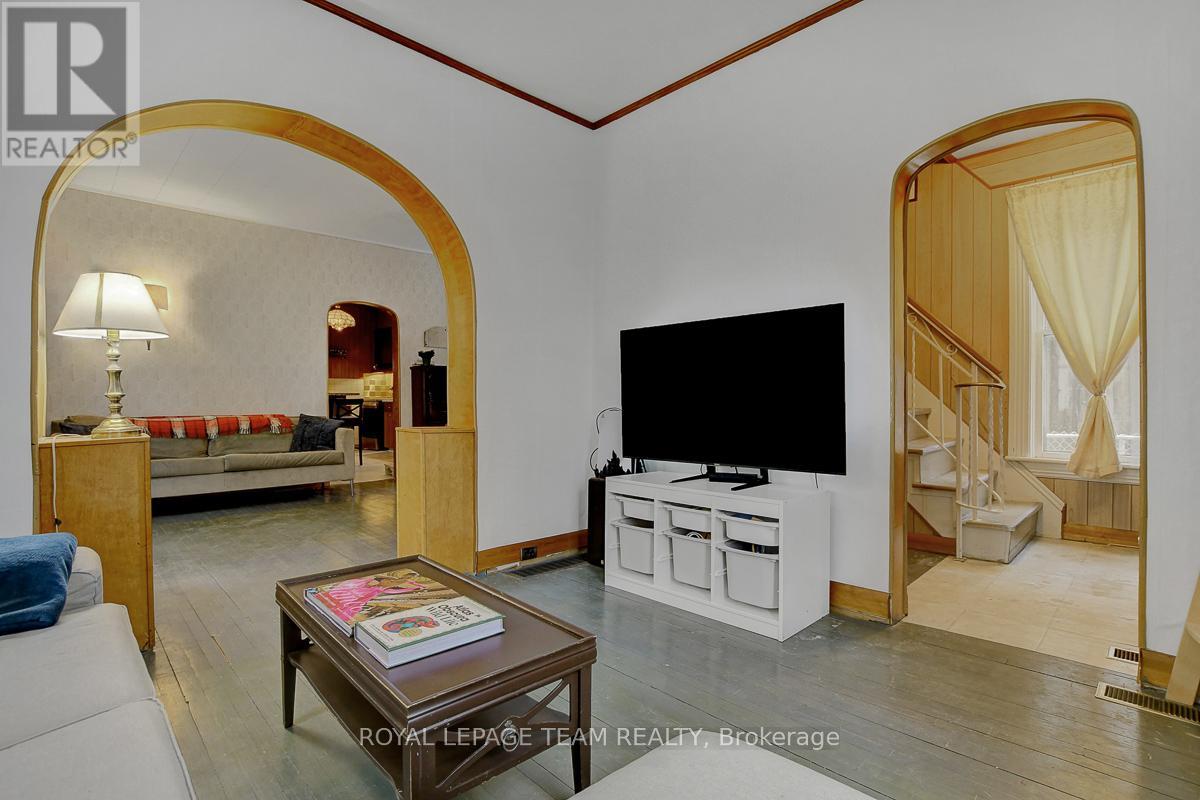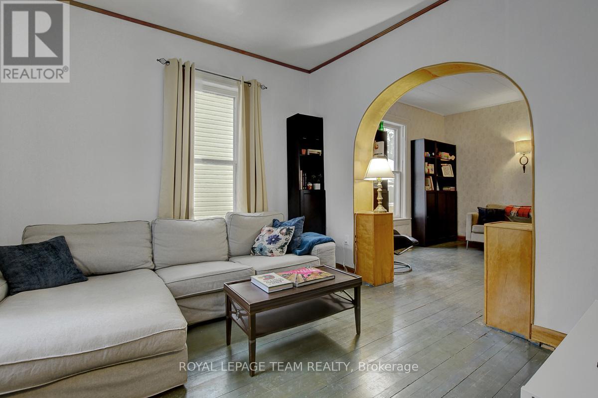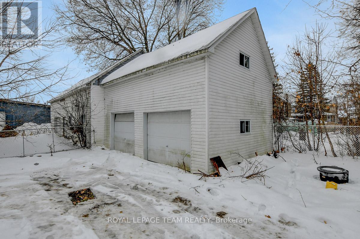 Timeless charm in the heart of historic Smiths Falls - a truly heritage-rich home with classic character and remarkable potential! Upon arrival, the white exterior with striking black accents and enclosed porches make a lasting impression, perfect for relaxing and extending your seasonal living space. Stepping inside offers the warmth and character of another era, original architectural details, arched doorways, rich wood accents, decorative wall paneling and tall ceilings work together as hallmarks of a classic home. The welcoming foyer is set beside a front living room bathed in light through tall windows. Moving back into a second living and dining area spanning the width of the home - an ideal layout for everyday living and entertaining. Well-sized kitchen boasts ample storage, lots of prep space and a centre island. It also boasts direct access to the mudroom/side porch with a separate entrance. At the rear of the home, a large seasonal flex space awaits, complete with a wet bar/summer kitchen and patio doors to a covered deck overlooking a spacious, partially fenced backyard. Primary bedroom suite features cheater access to a tastefully renovated full bathroom, while the additional two bedrooms have been thoughtfully updated with a modern feel. Basement features both interior and exterior access, adding versatility for storage, hobby space, or future finishing potential. Extra-deep L-shaped lot accommodating not one, but TWO detached double-car garages! Ideal for car enthusiasts, big toys, or workshop space, this flexible yard truly sets the home apart. Enjoy a walkable location just minutes from downtown shops, restaurants, cafés, and everyday services, all set within a vibrant heritage main street atmosphere. Conveniently close to the community center/rink and hospital. Nearby parks, trails and outdoor recreation including the scenic Rideau Canal and Cataraqui Trail. Easy commuting to Ottawa and the beautiful Rideau Lakes area. (41947244)