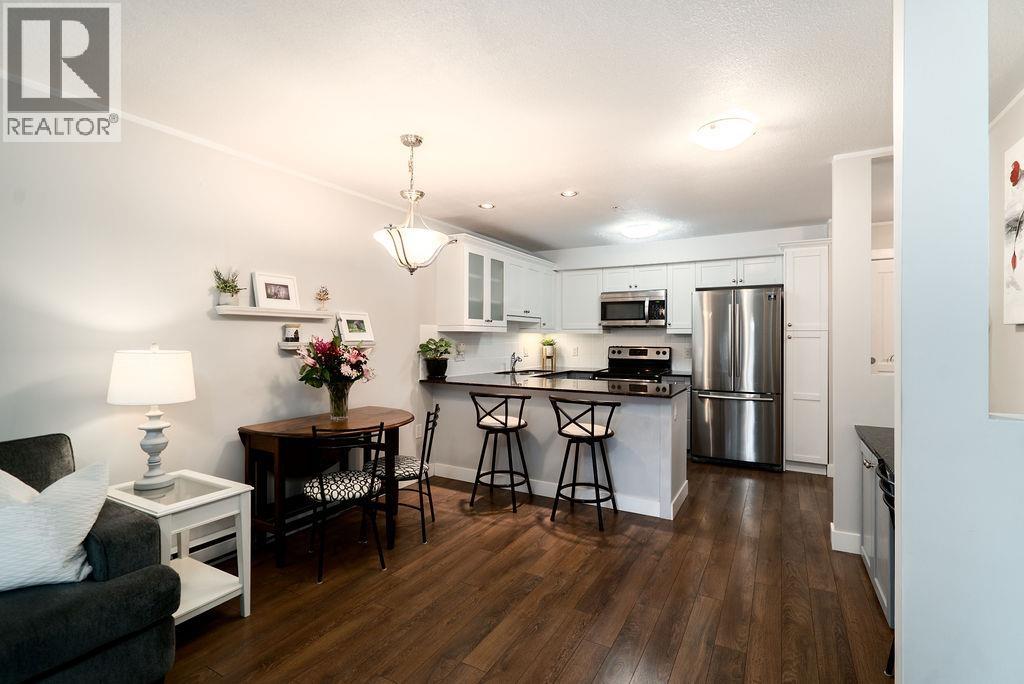 Spacious south-facing 1 bedroom, 1 bathroom ground-floor beautifully updated home! Ideally located in Port Coquitlam´s Oxford neighbourhood. This home has been meticulously maintained and thoughtfully updated with new flooring, refreshed bathroom, and freshly painted kitchen cabinets, making it completely move-in ready. The open kitchen features granite countertops and stainless steel appliances, with durable laminate throughout. Enjoy a generous private patio overlooking quiet garden beds, perfect for relaxing or entertaining. The building is well managed, proactive, and exceptionally well maintained, offering a pet-friendly environment, rooftop terrace, in-suite laundry, one parking stall, and a storage locker. Just steps to shopping, cafés, parks, and everyday amenities. A few blocks from the West Coast Express and close to trails, the Coquitlam River, and major commuter routes. A fantastic opportunity in a highly walkable, central location. Open House Jan 17th 1p-3p (32330791)