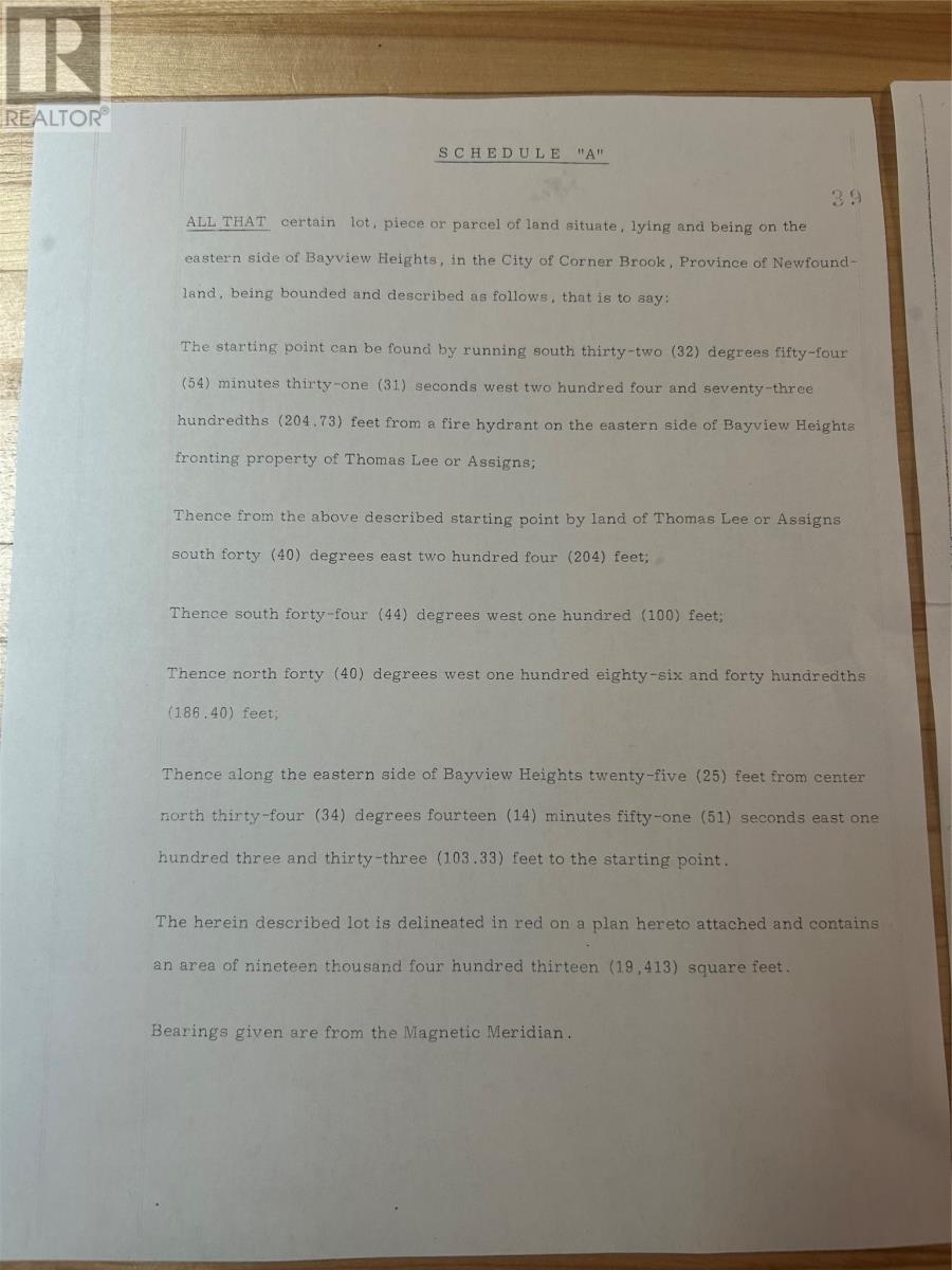 A rare find in the City of Corner Brook: a 19,413 square foot lot located in a quiet area on Bayview Heights. This property boasts beautiful mature birch trees, offering a natural and serene setting that you can incorporate into the design of your new home. The lot is also conveniently located just minutes from a trail that connects to a groomed snowmobile trail when conditions permit. This makes it an ideal spot for snowmobiling enthusiasts or those who enjoy snowshoeing in the winter months. For builders looking for an investment opportunity, this lot presents the potential to be subdivided. With a 103-foot frontage, it could accommodate two homes. Approixmate cost for lateral for water and sewer is $19,000 (30545085)