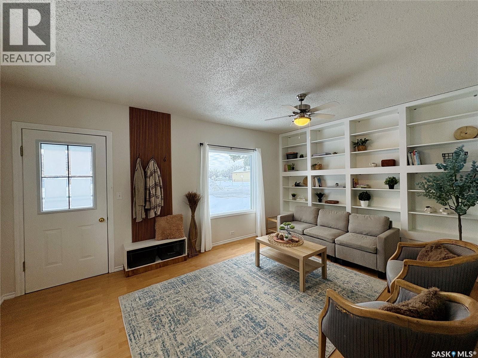 This charming 632 sq. ft. home offers a warm, cozy tiny-house vibe while still providing plenty of space to host family and friends. Large windows throughout fill the home with natural light, enhancing the inviting atmosphere. The thoughtfully designed layout includes two bedrooms, with an exceptional second bedroom that’s perfect for kids. Clever storage nooks are tucked throughout the home, maximizing functionality without sacrificing style. The beautiful kitchen features quartz countertops and a matching quartz backsplash, complete with built-in wireless charging ports and a stylish coffee bar with a mini fridge. The bathroom has been beautifully renovated, and there is ample additional storage in the basement. Outside, you’ll find a spacious 22 x 24 garage ideal for parking, or projects. The property sits on a corner lot with a mature, grassed yard, directly across from a park—an ideal setting for a starter home, families, or even downsizing. Come see what Rosthern has to offer, including a newer school, hospital, arena, golf course, cafe's and restaurants. (29278194)